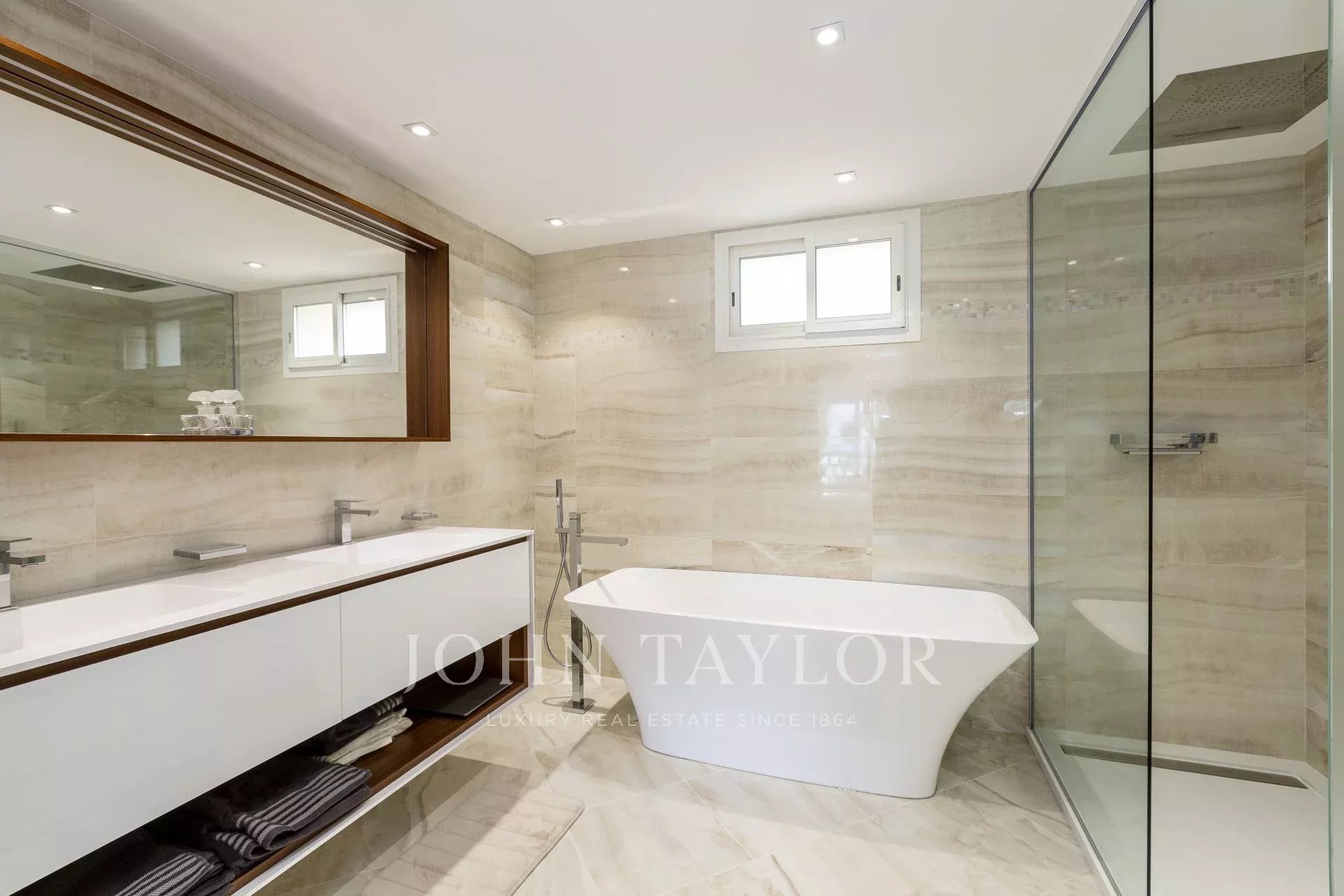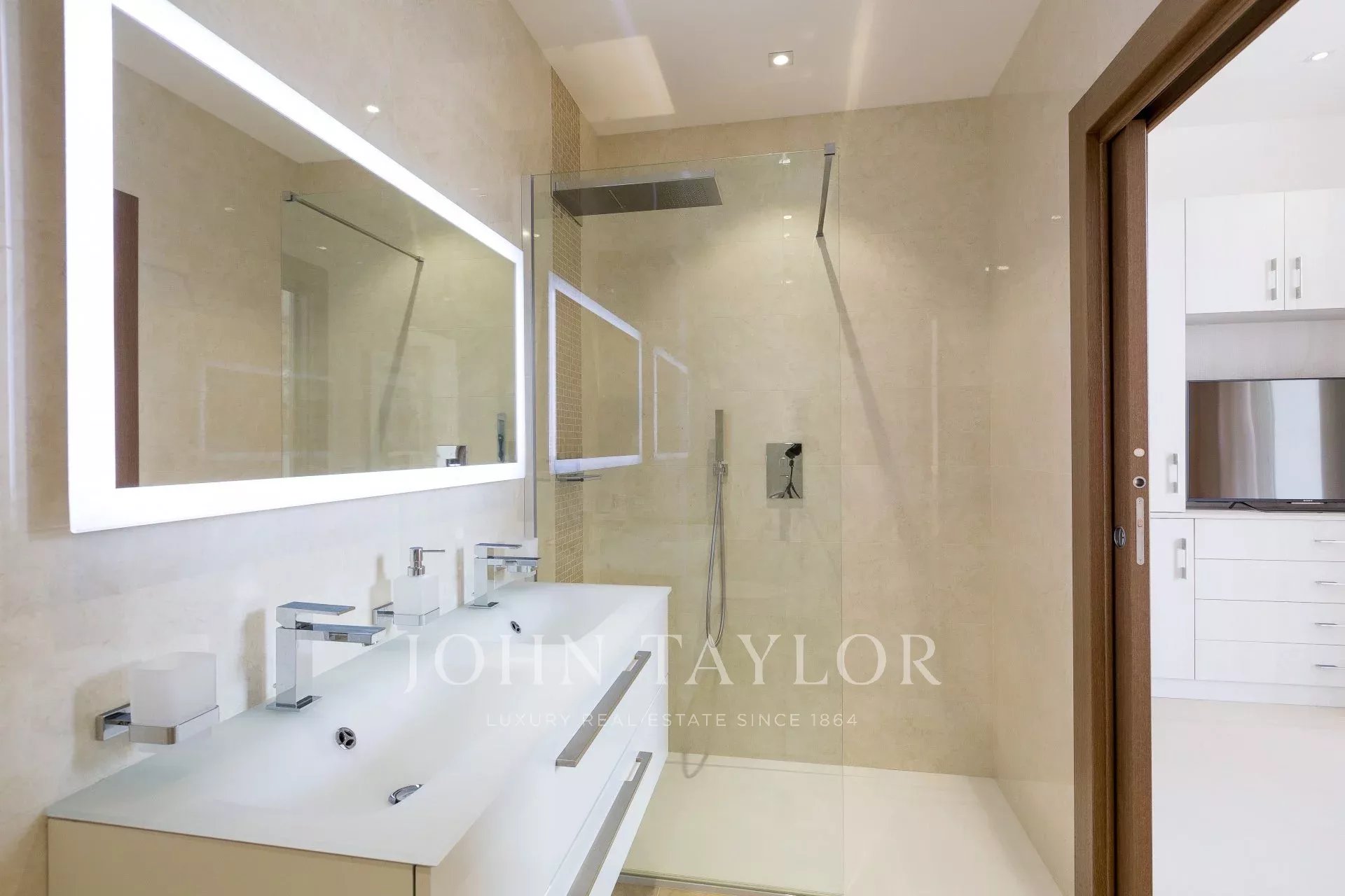 Completely air-conditioned, the apartment impresses with its refined decoration and its large terrace of approximately 110m2 equipped with summer lounge and dining table.