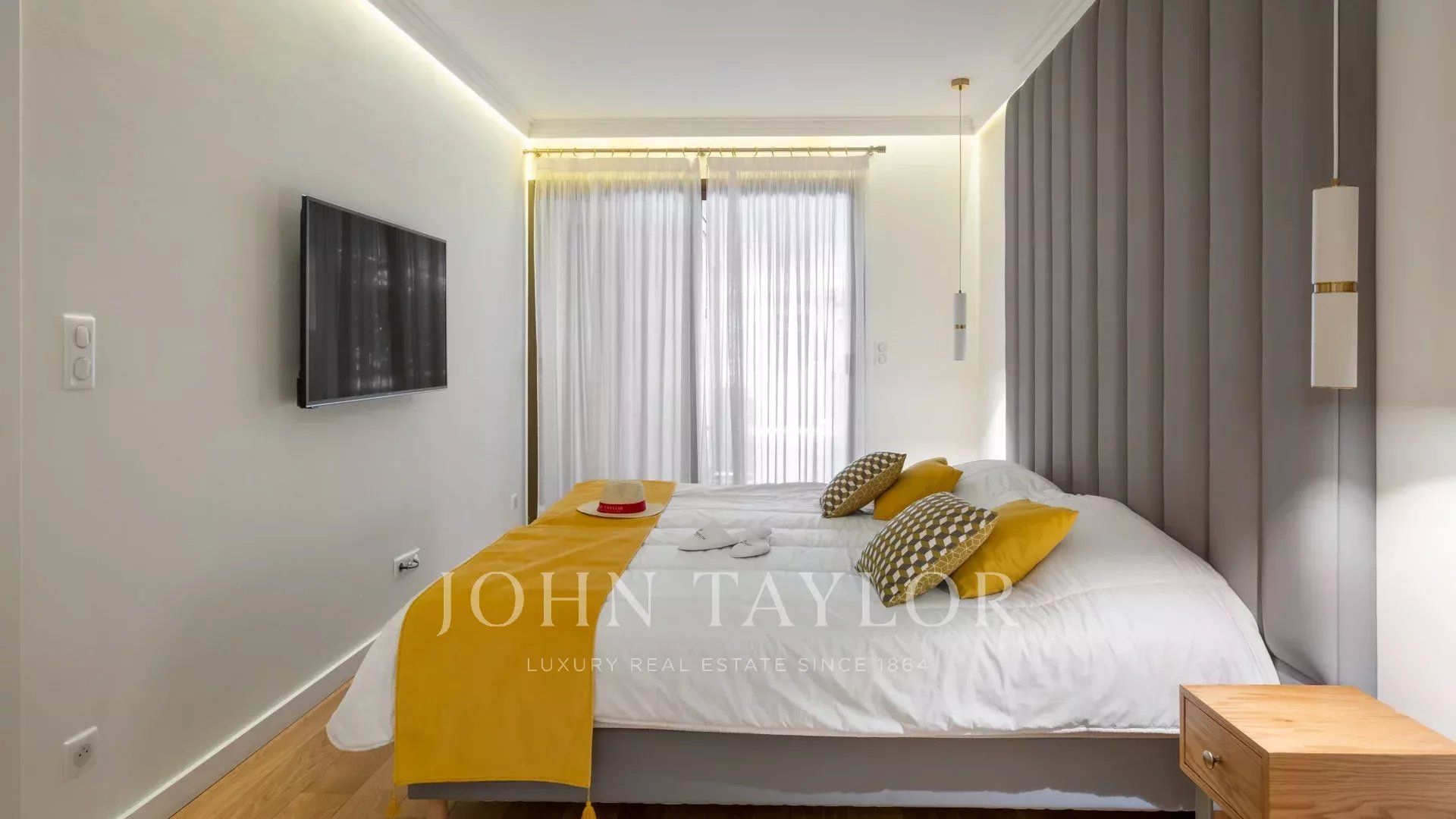 In the heart of Cannes in the prestigious Gray d'Albion residence, a 5-minute walk from the Palais des Festivals, the Croisette and the Majestic Hotel , attractive 87m² apartment with large 27m² corner terrace facing south-west, offering beautiful views over the town and the Bay of Cannes and the Croisette.
