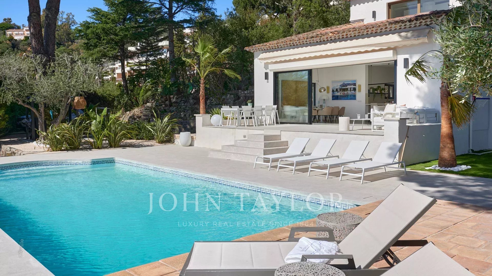 Neighborhood " Croix des Gardes ", south-western exposure, beautiful neo-provençal villa, entirely renovated and air-conditioned, enjoying a magnificent panorama on the sea and the Massif of Estérel.