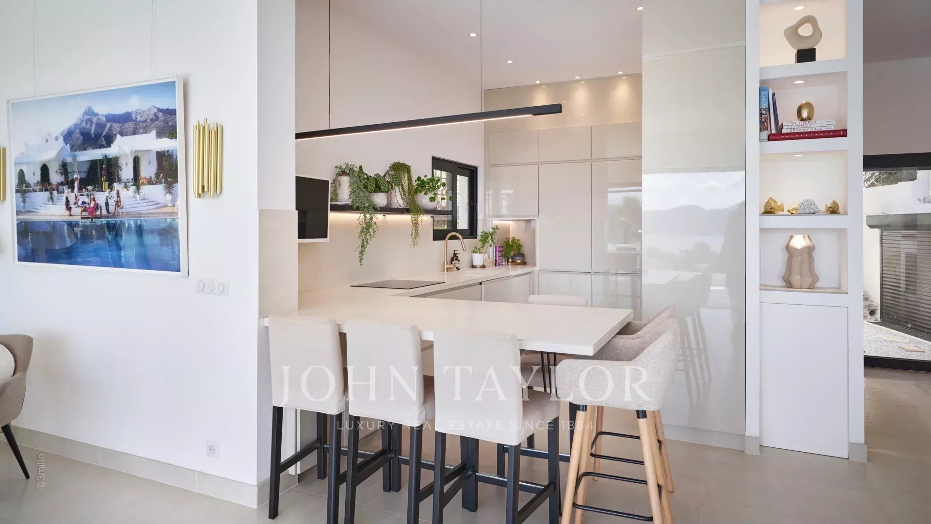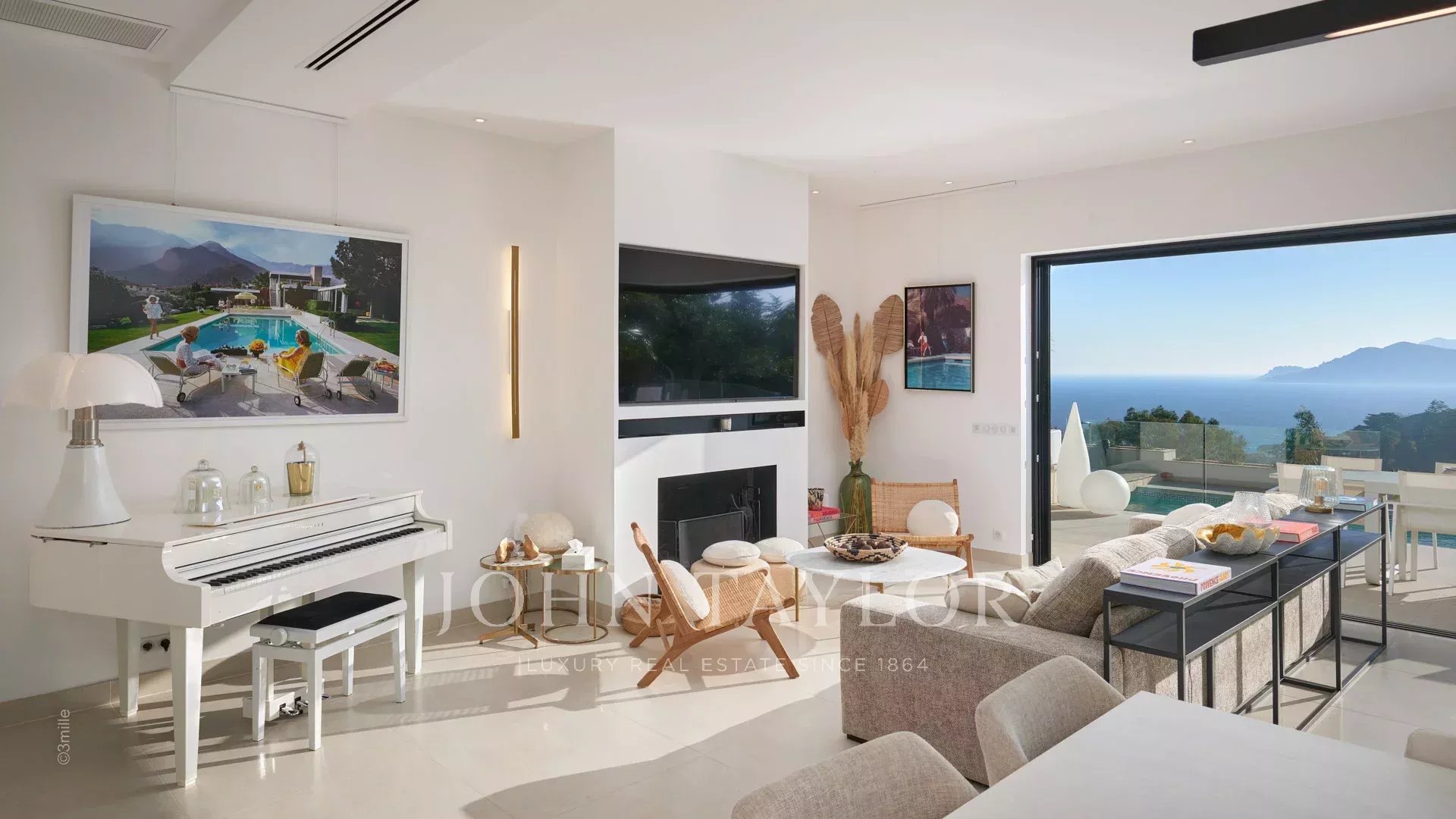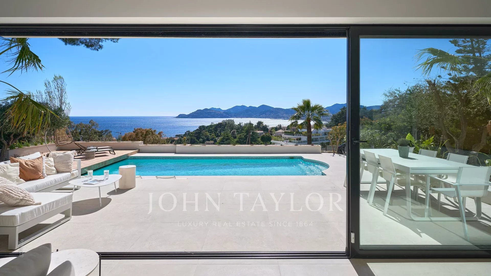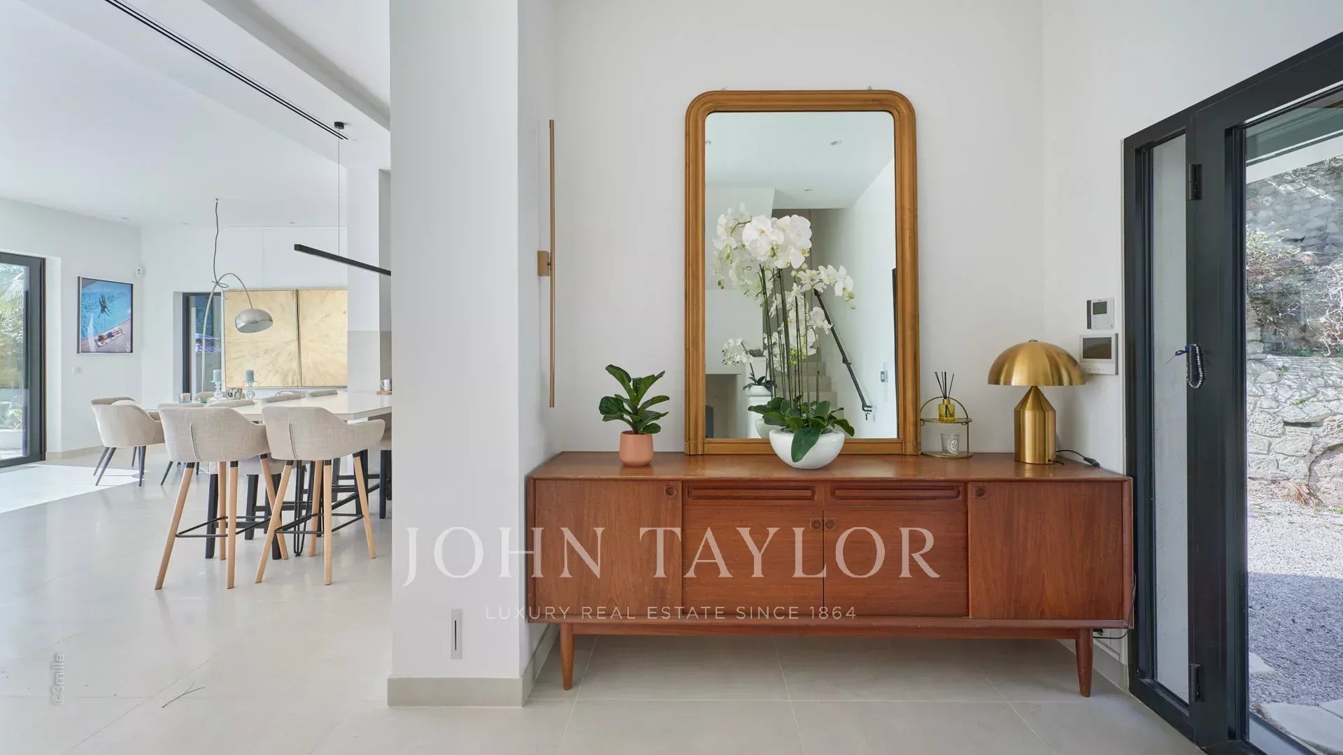Entrance leading to the reception room including, living room, dining room and american kitchen, the whole opening on the terrace and the swimming pool, sea view