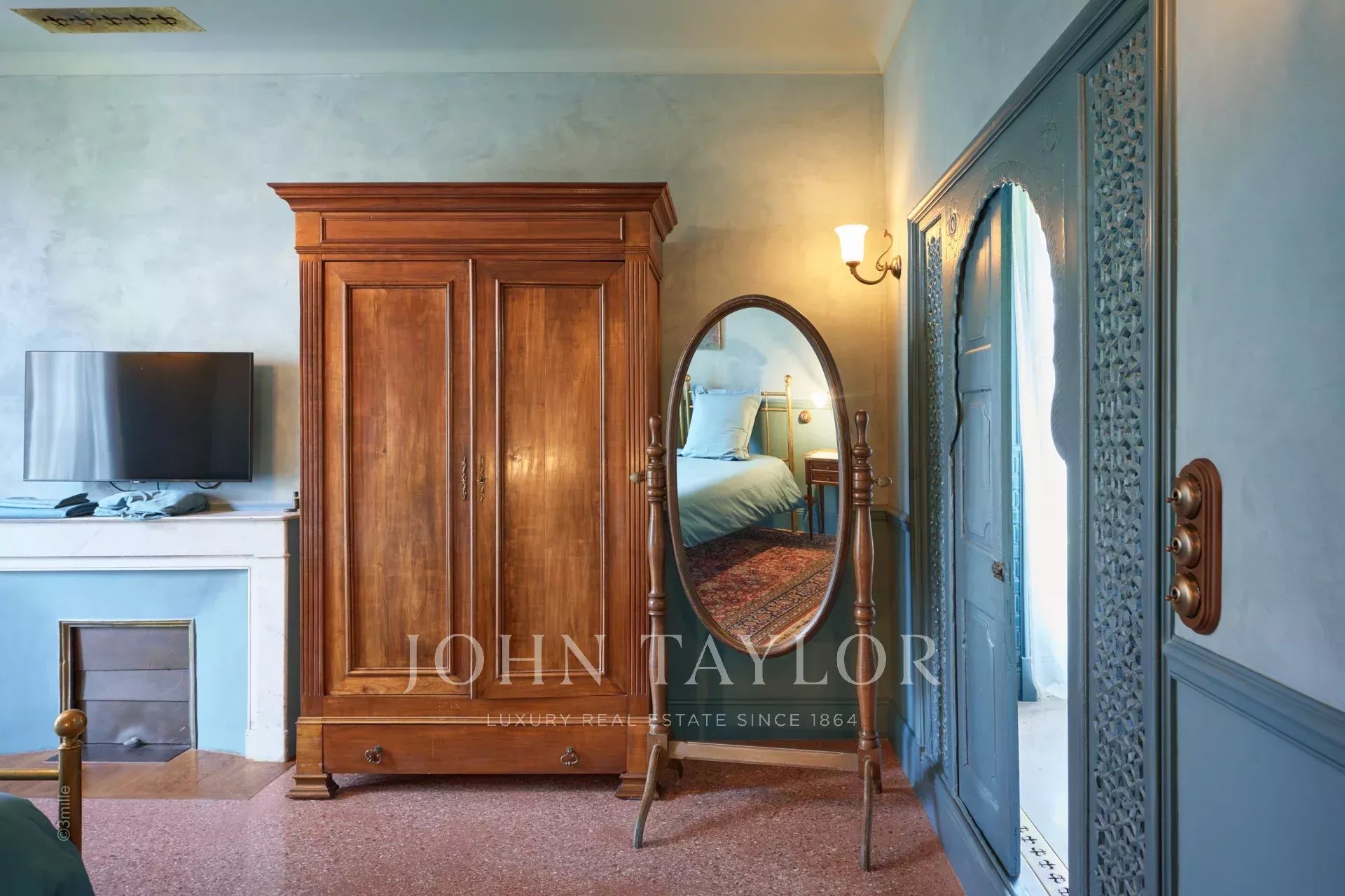 Air-conditioned Master bedroom (bed 200 cm x 200 cm), TV, opening onto a terrace with view of the swimming pool - Dressing room - Bathroom ensuite