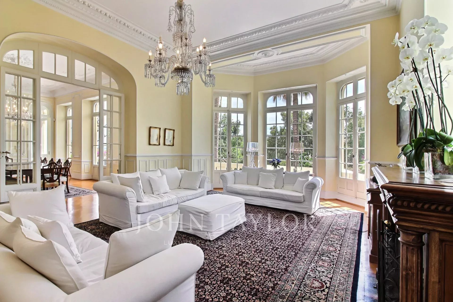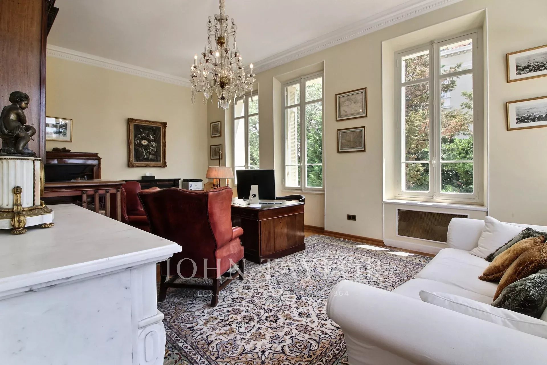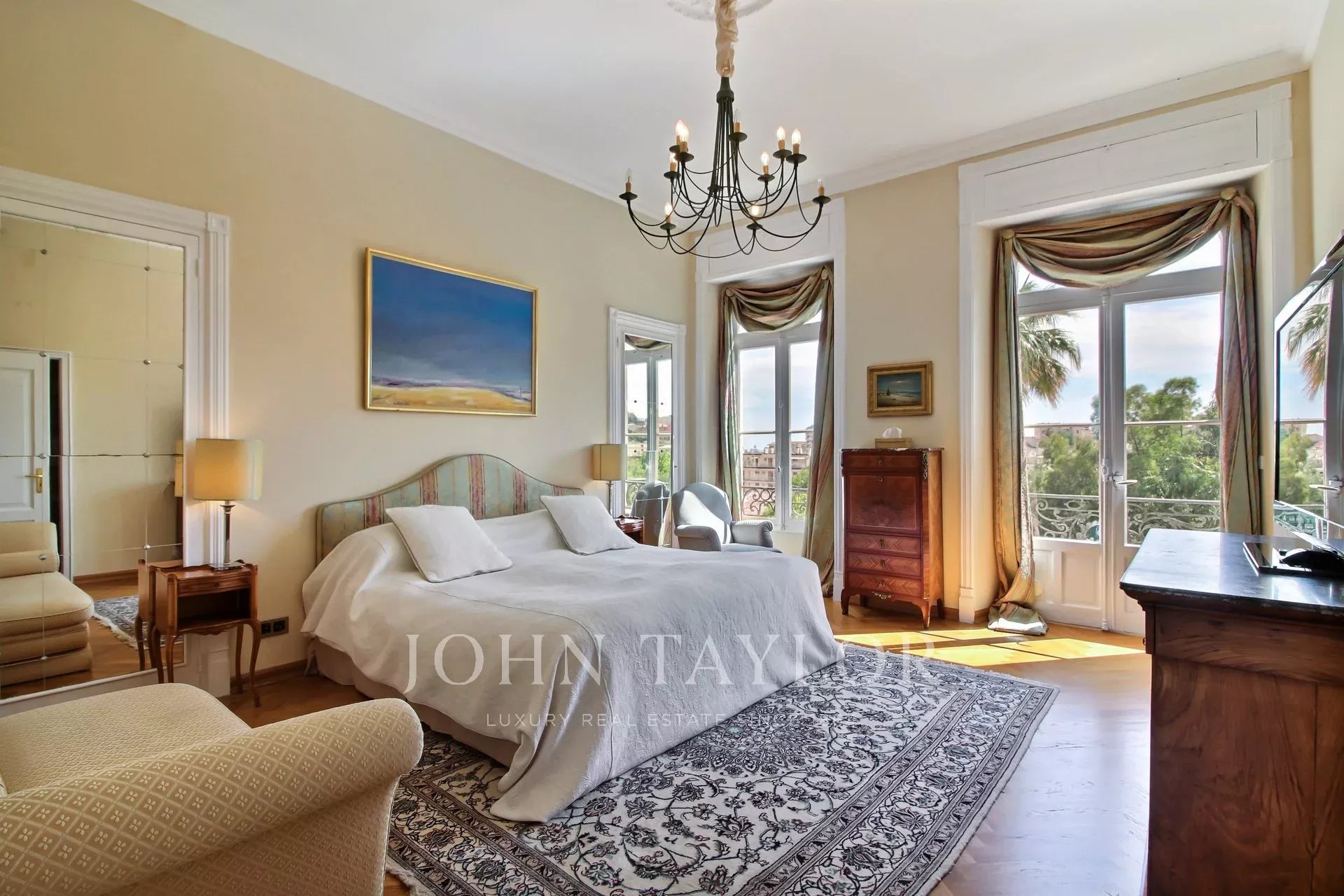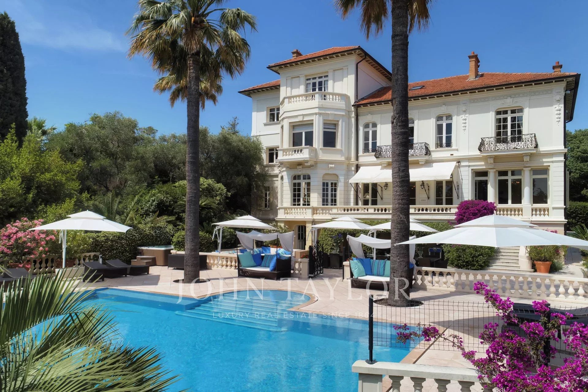 Superbly located just few minutes drive to the beaches of Cannes, the Croisette and the Palais des Festivals, this historic property was built in 1910 by an award winning Italian architect commissioned by a prominent family from Cannes. Entirely restored to its full splendor with the addition of the amenities essential for the 21st century, the rooms are beautifully furnished with antique furniture, original paintings and antique rugs.