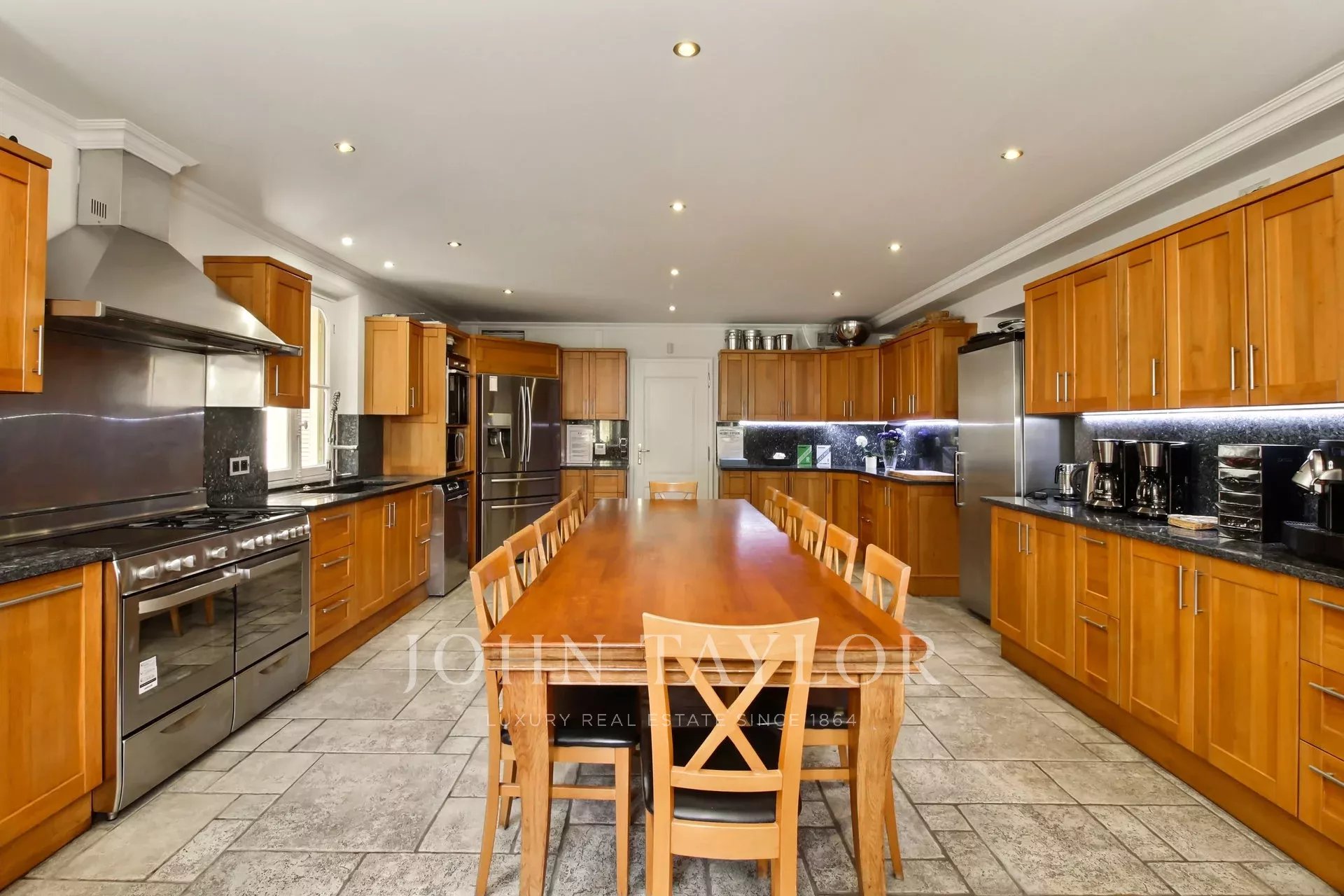 Professional kitchen opening onto the terrace, swimming-pool