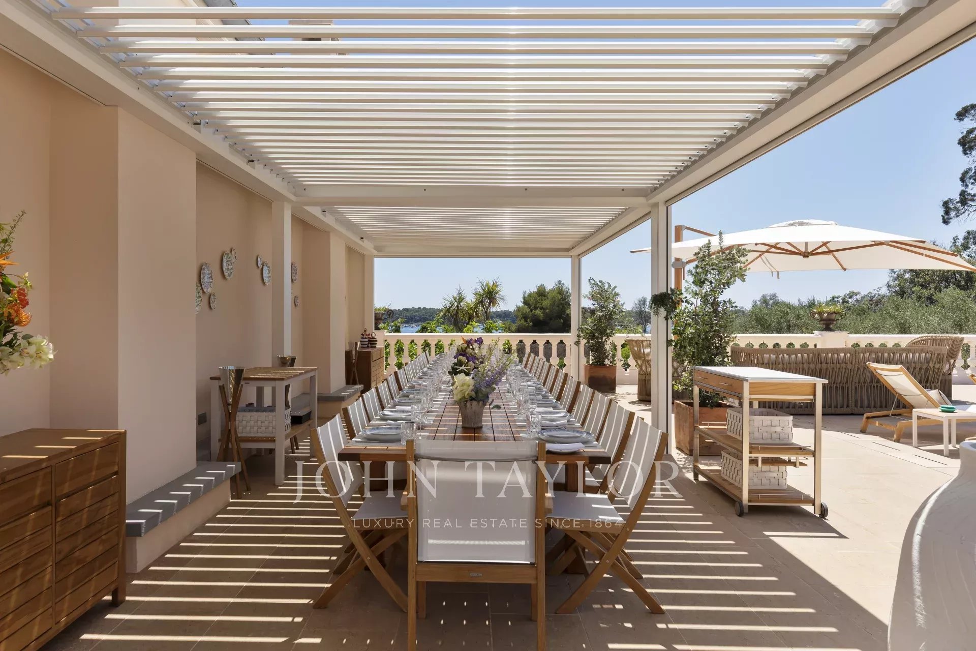 There is also a wellness area with a hammam, sauna and two massage rooms, as well as a large swimming pool with a kitchen and summer dining room for up to 26 guests.