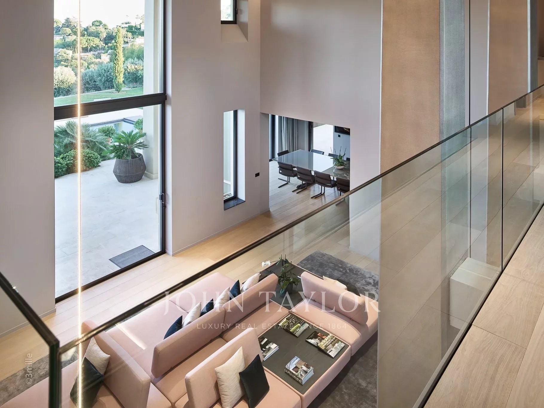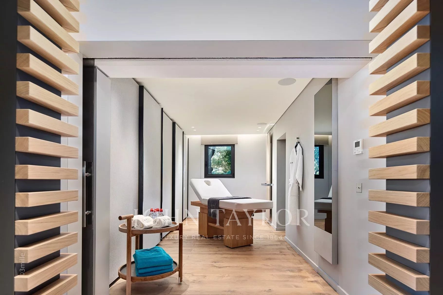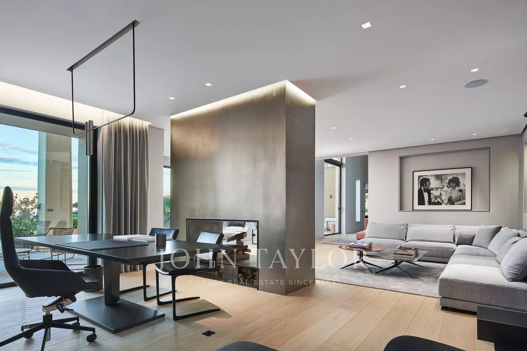 At the heart of the very residential area of Super Cannes, this splendid contemporary property of 850 m2 impresses with its refined decoration, the top of the range appointments throughout, its magnificent panoramic sea-view, surrounded with a beautiful park of approx. 5 ha fully landscaped.