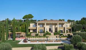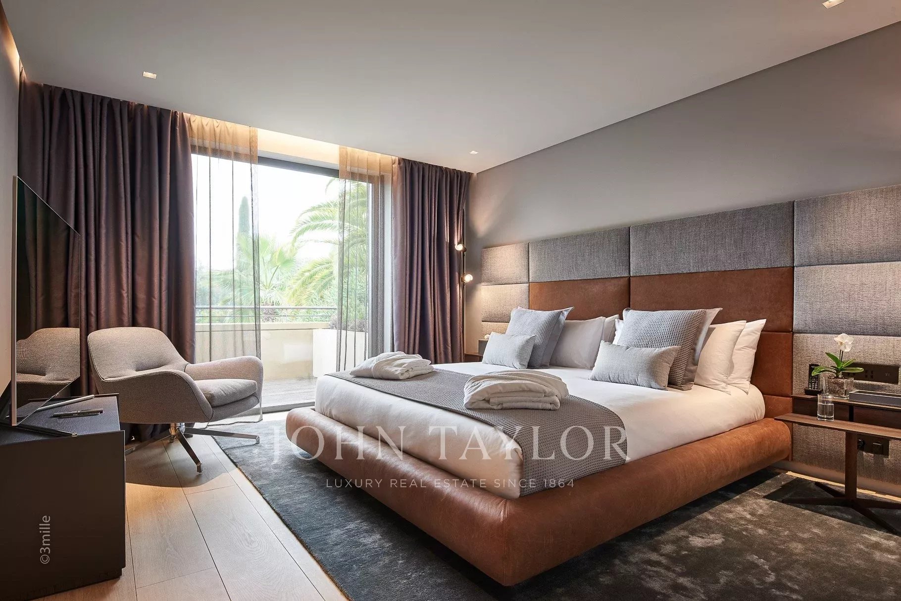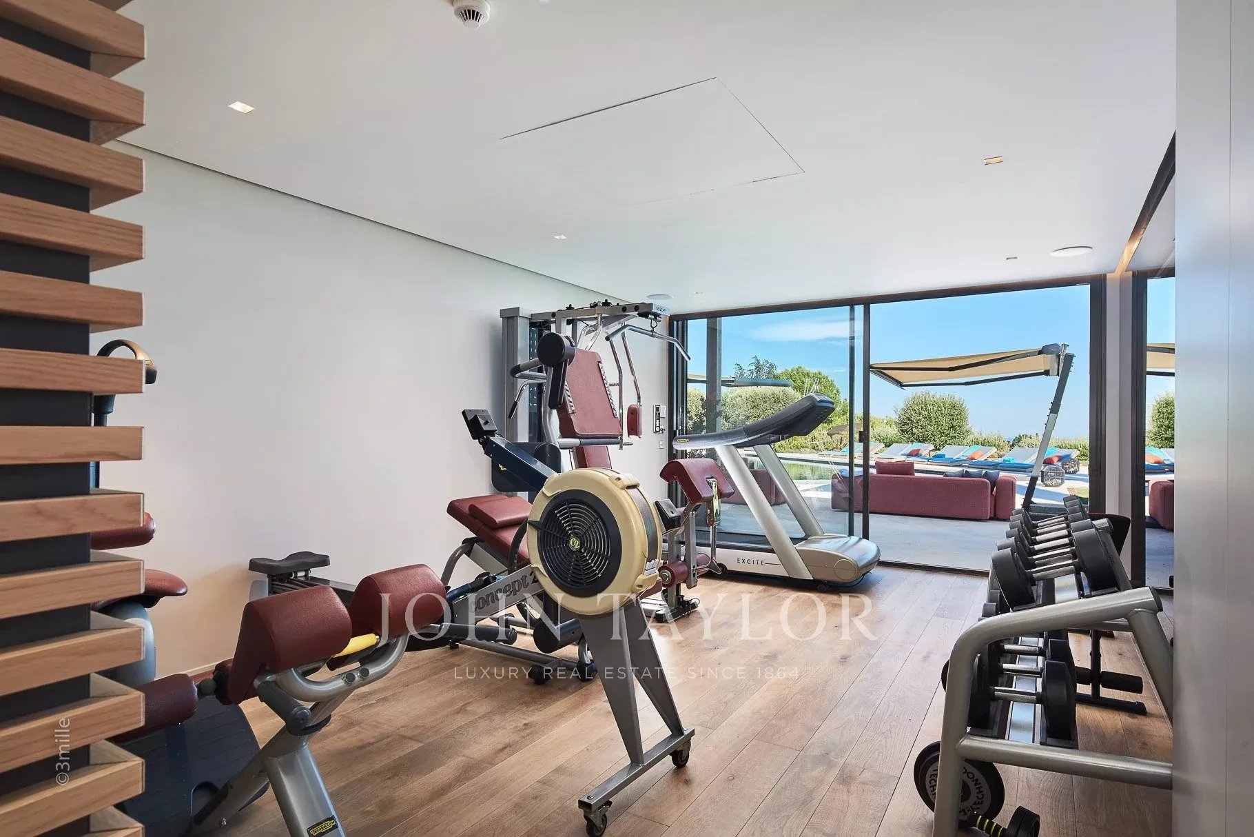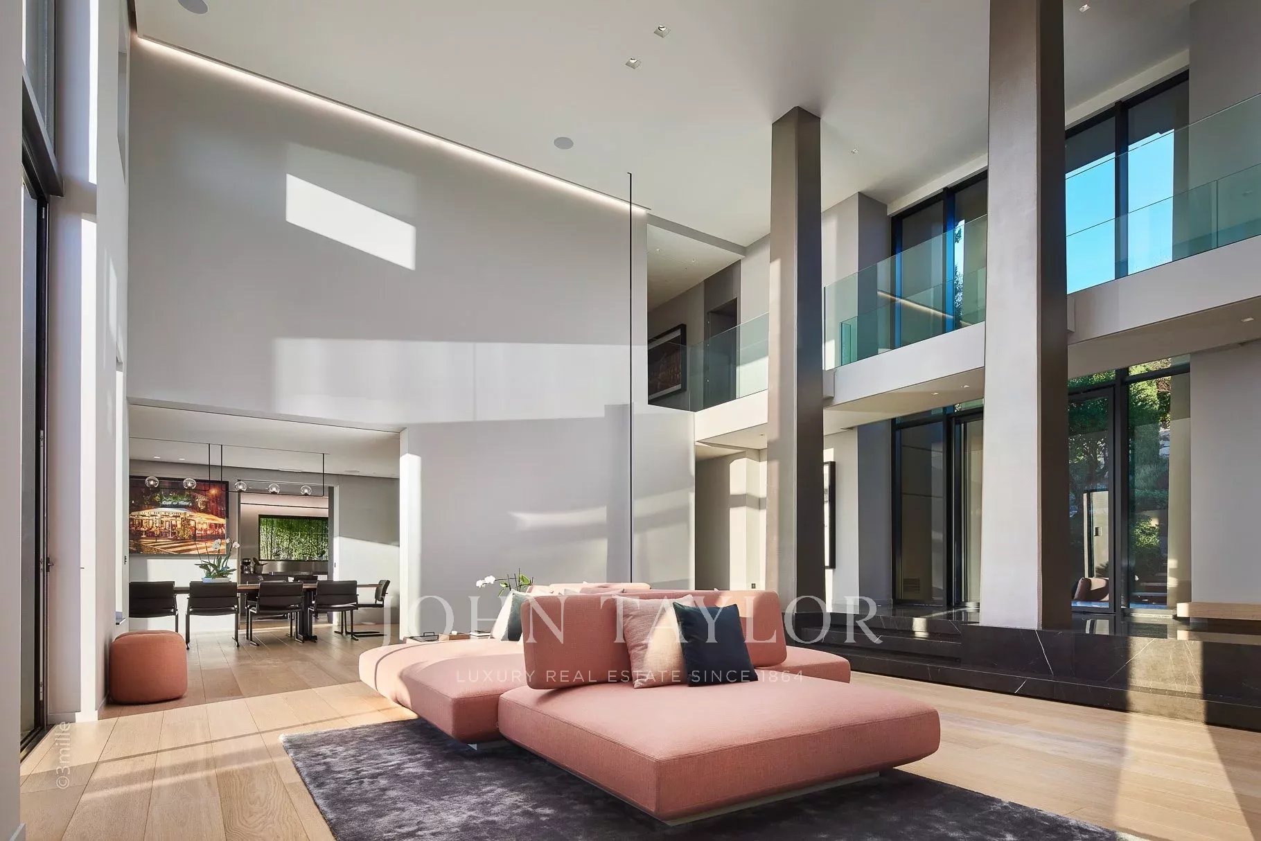 At the heart of the very residential area of Super Cannes, this splendid contemporary property of 850 m2 impresses with its refined decoration, the top of the range appointments throughout, its magnificent panoramic sea-view, surrounded with a beautiful park of approx. 5 ha fully landscaped.