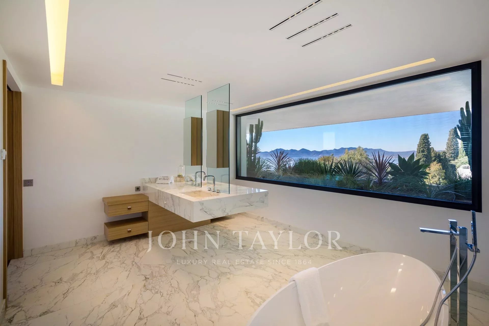 Situated in the most prestigious area of California, this new outstanding property of about 1 400 sqm on a plot of about 4 050 sqm, enjoys fabulous views on the Bay of Cannes and the Lerins Islands.