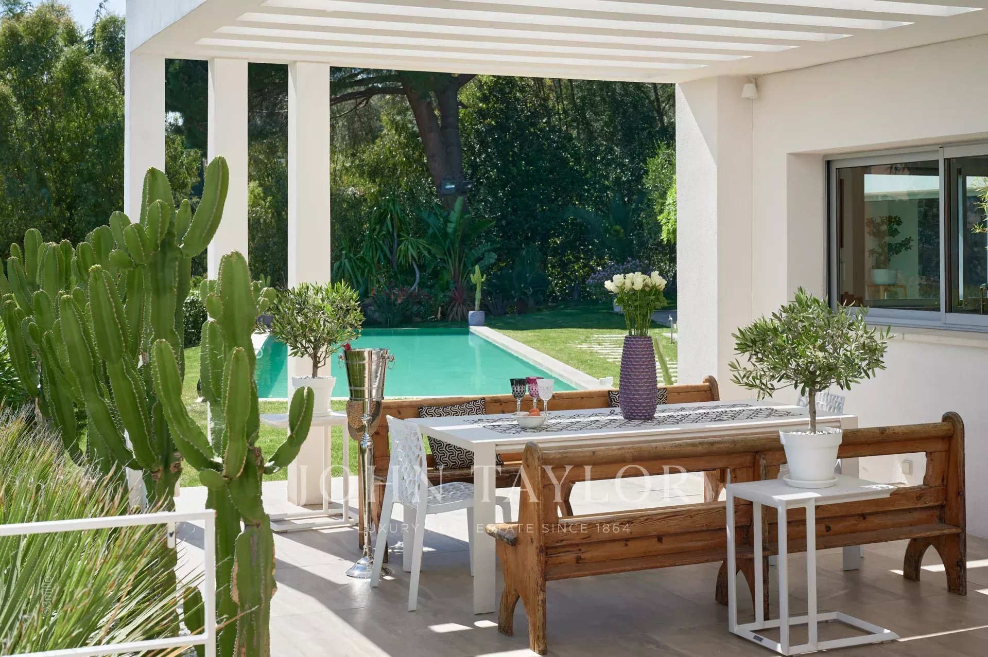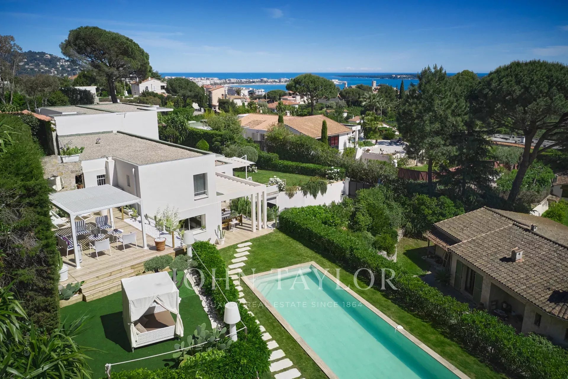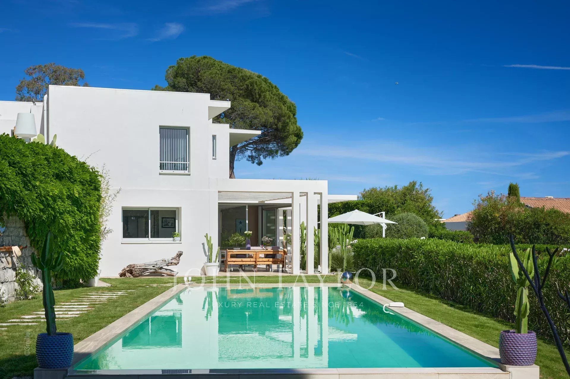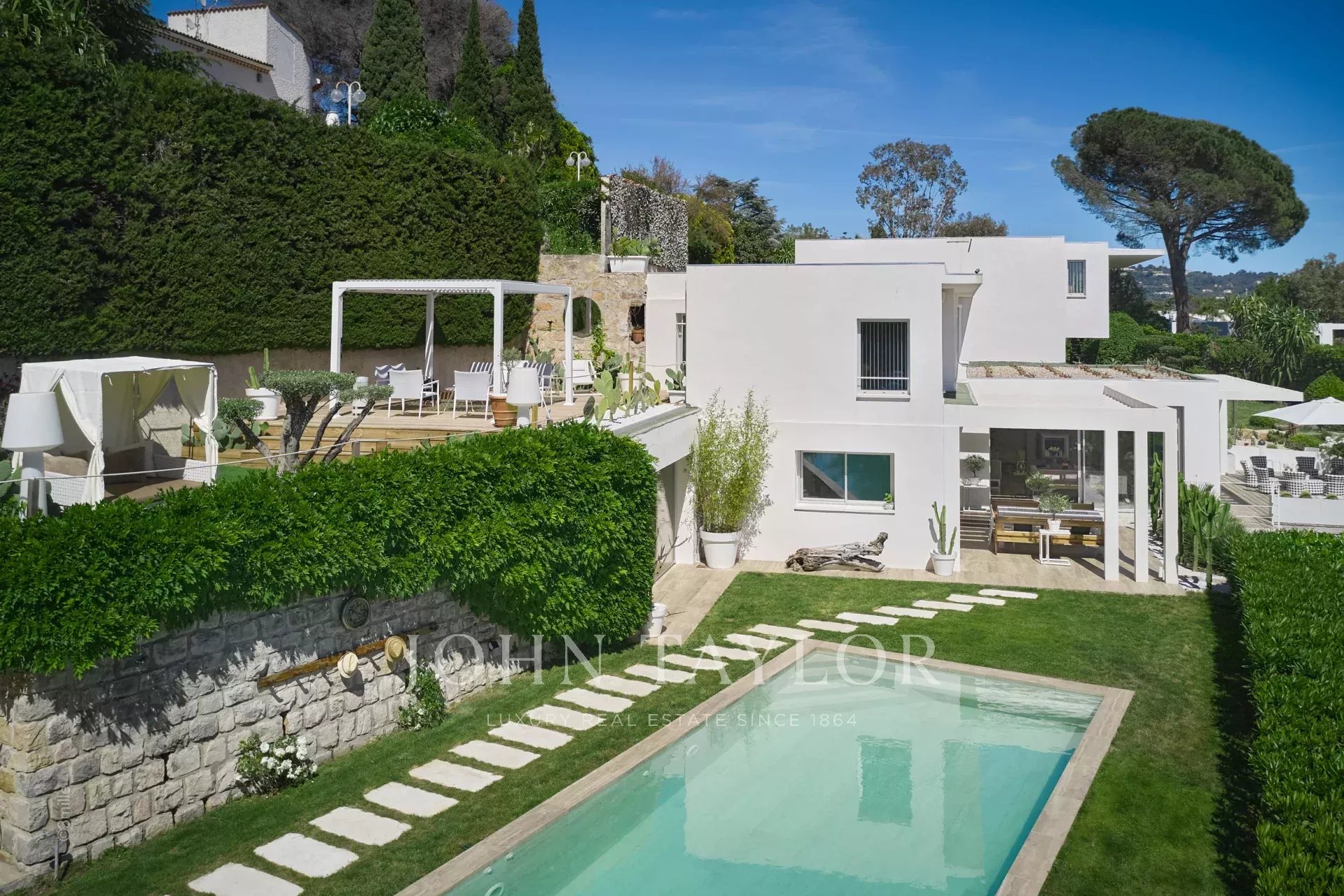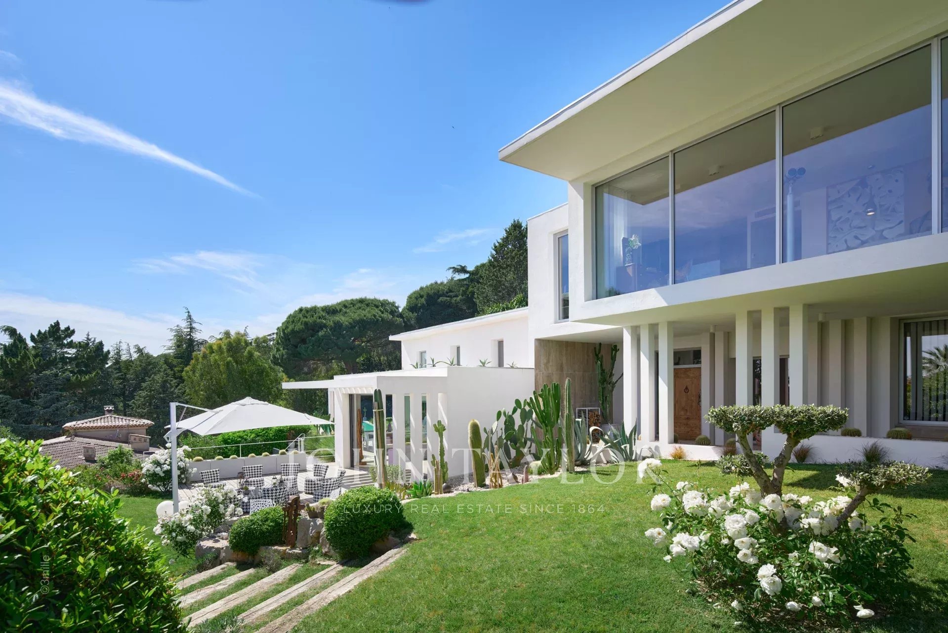 In a quiet and residential area of the Croix des Gardes, close to the city center, attractive contemporary villa of 500 sqm living area, fully air conditioned and renovated with high quality amenities, surrounded with 3 000 sqm of gardens.