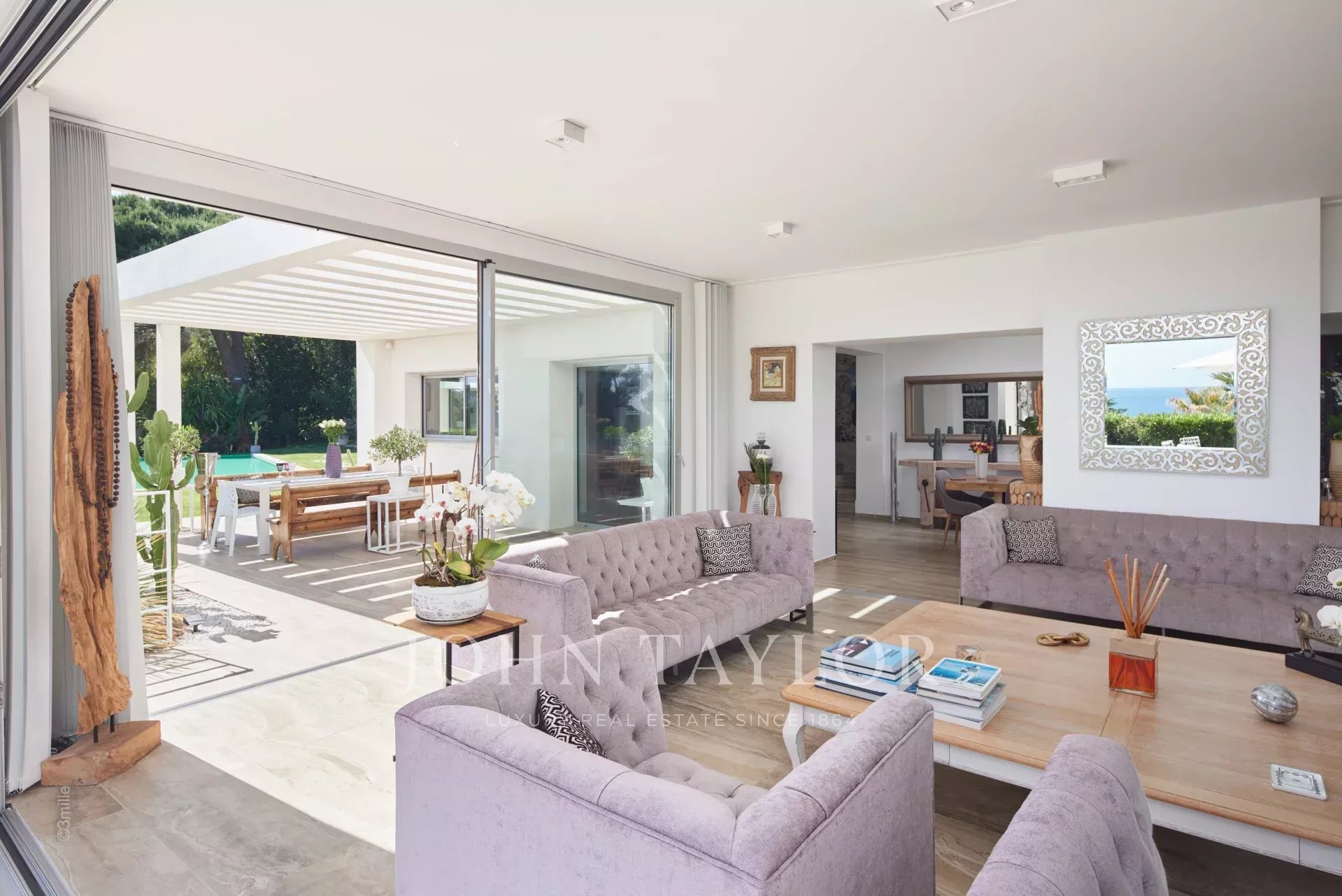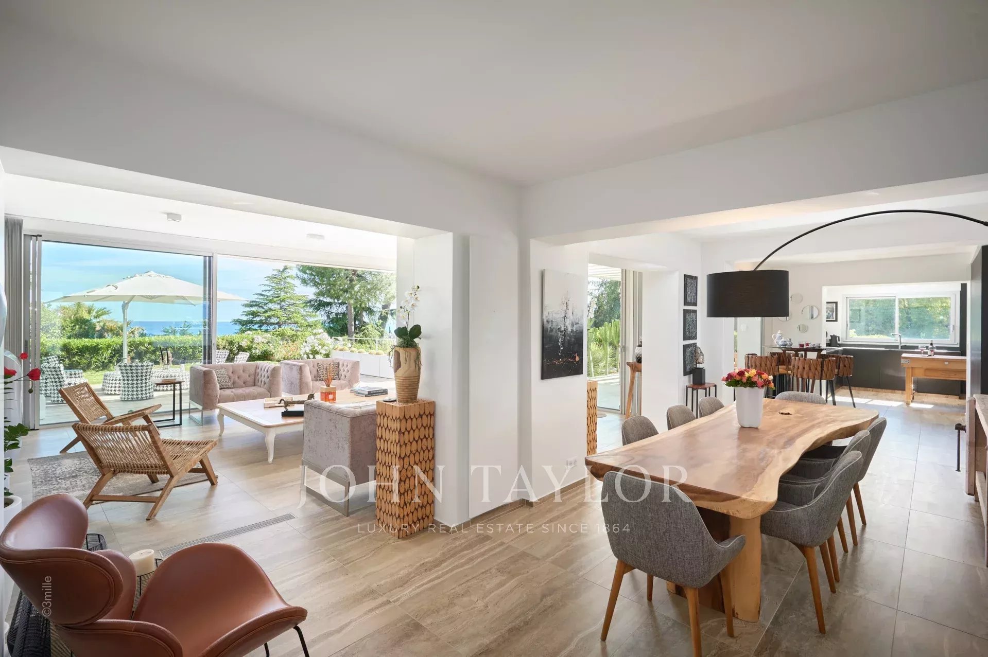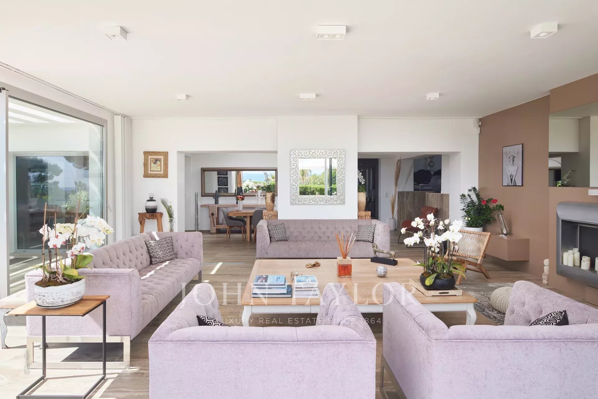 Reception room with living room and dining room, opening onto the terraces - sea view