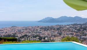 On the hills of Cannes, in a private domain, the villa enjoys a nice view over the Bay of Cannes and the "massif de l'Estérel".