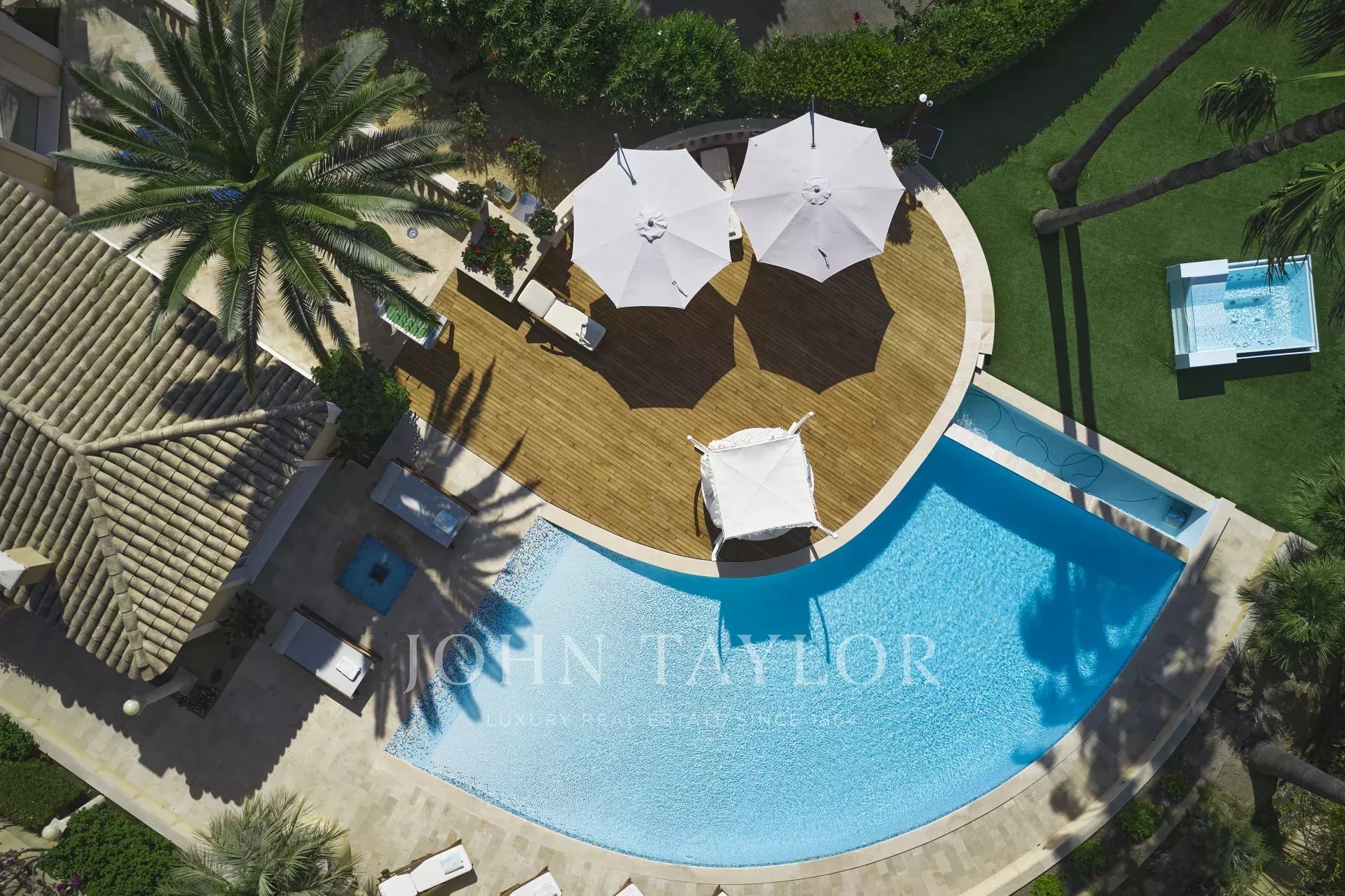 New Neo-provençale villa, contemporary decorated and fully air-conditioned. In the area called "Super Cannes", this villa with its 400 sqm living space enjoys magnificent views over the Bay.