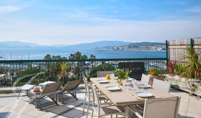 Facing the port and enjoying panoramic sea views over the bay of Cannes to the Estérel ...