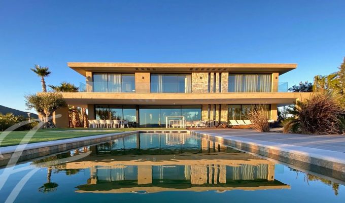 Nestled in a peaceful setting in Grimaud, this new villa with a sea view over the Gulf of ...