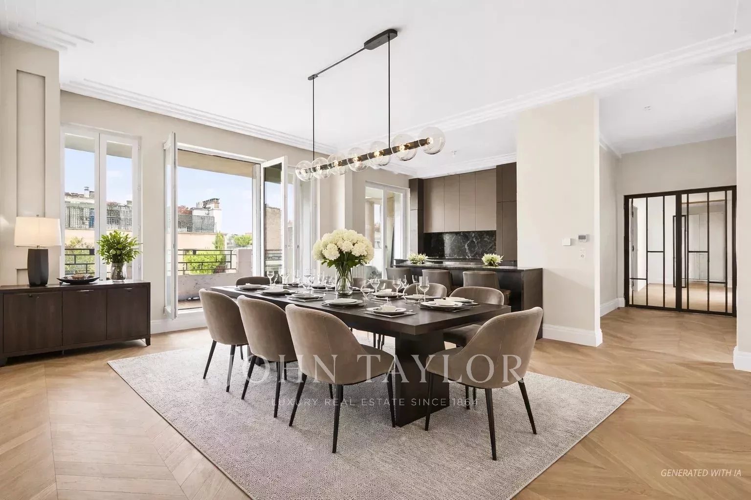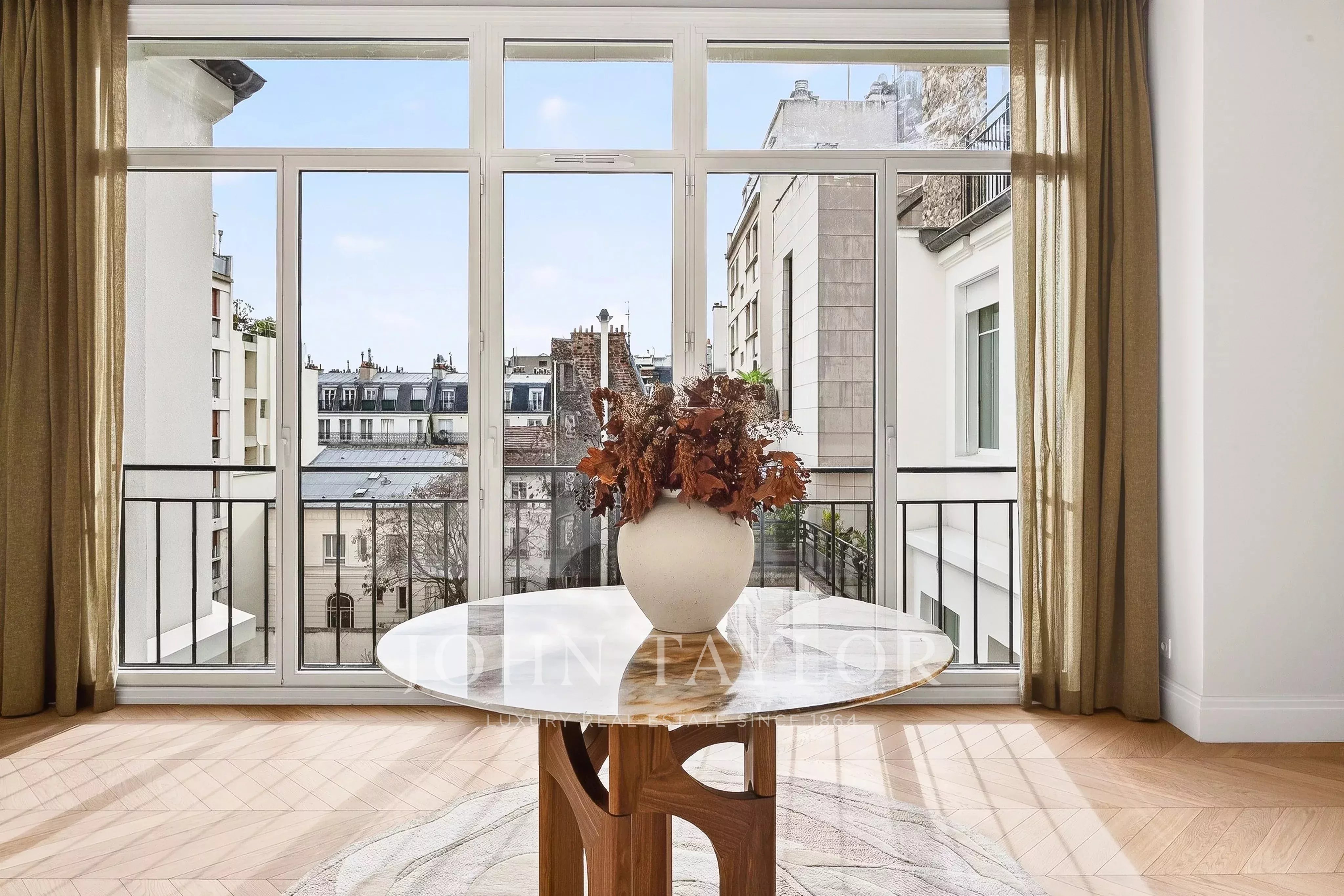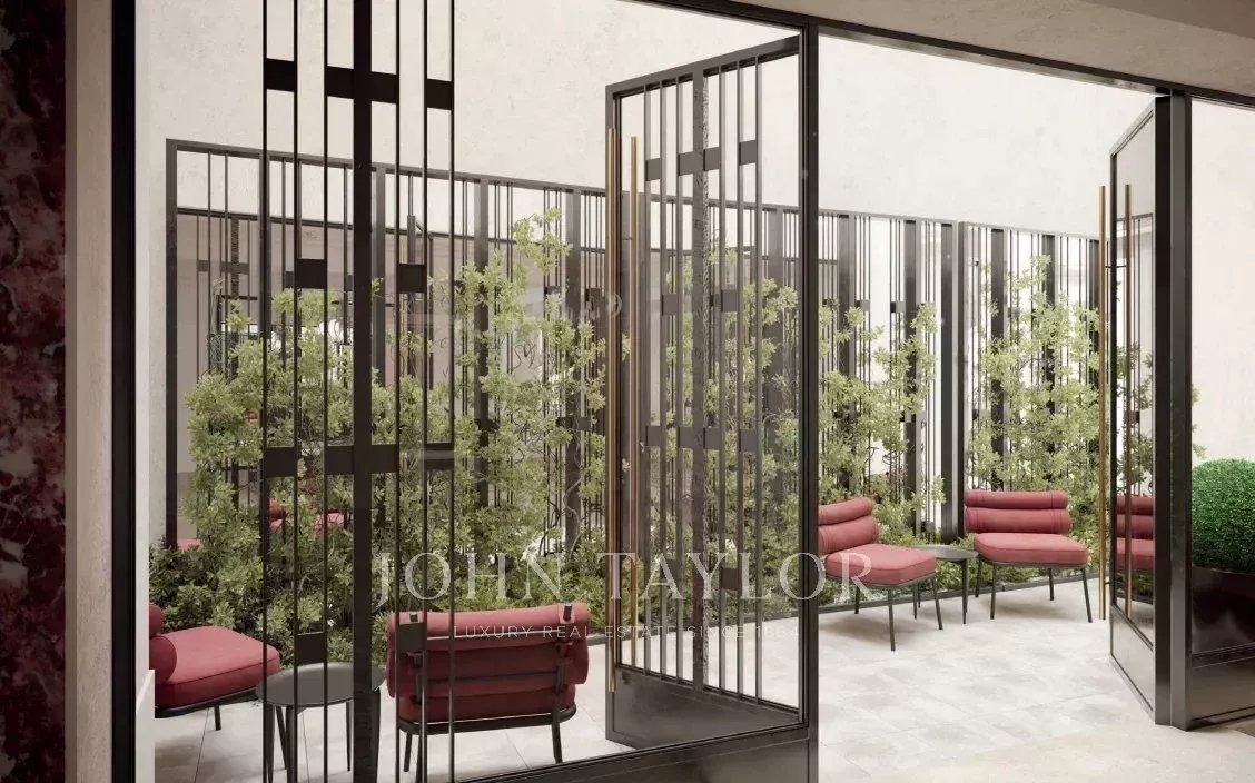 The building, fully rehabilitated, masterfully blends luxury and security. From the secured lobby, the concierge service welcomes residents into a harmonious decor where wrought iron, marble marquetry, crimson carpets, and bespoke lighting and mirrors harmonize with sophistication. The apartments, renovated with impeccable taste, are fully air-conditioned and feature chevron parquet flooring and high ceilings adorned with exquisite cornices.