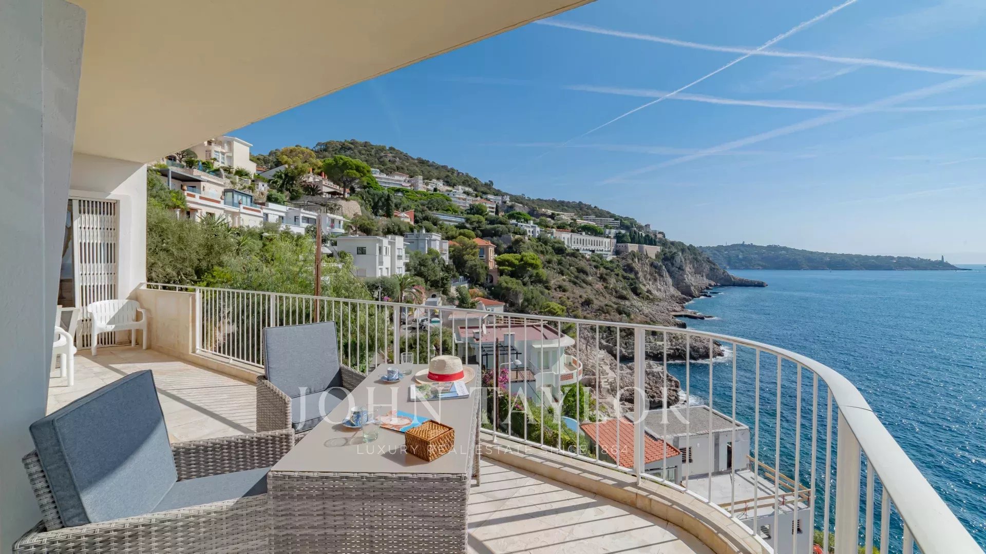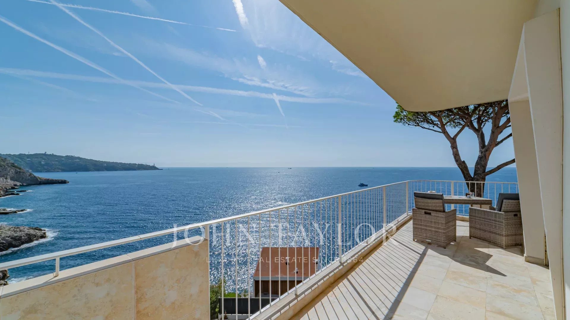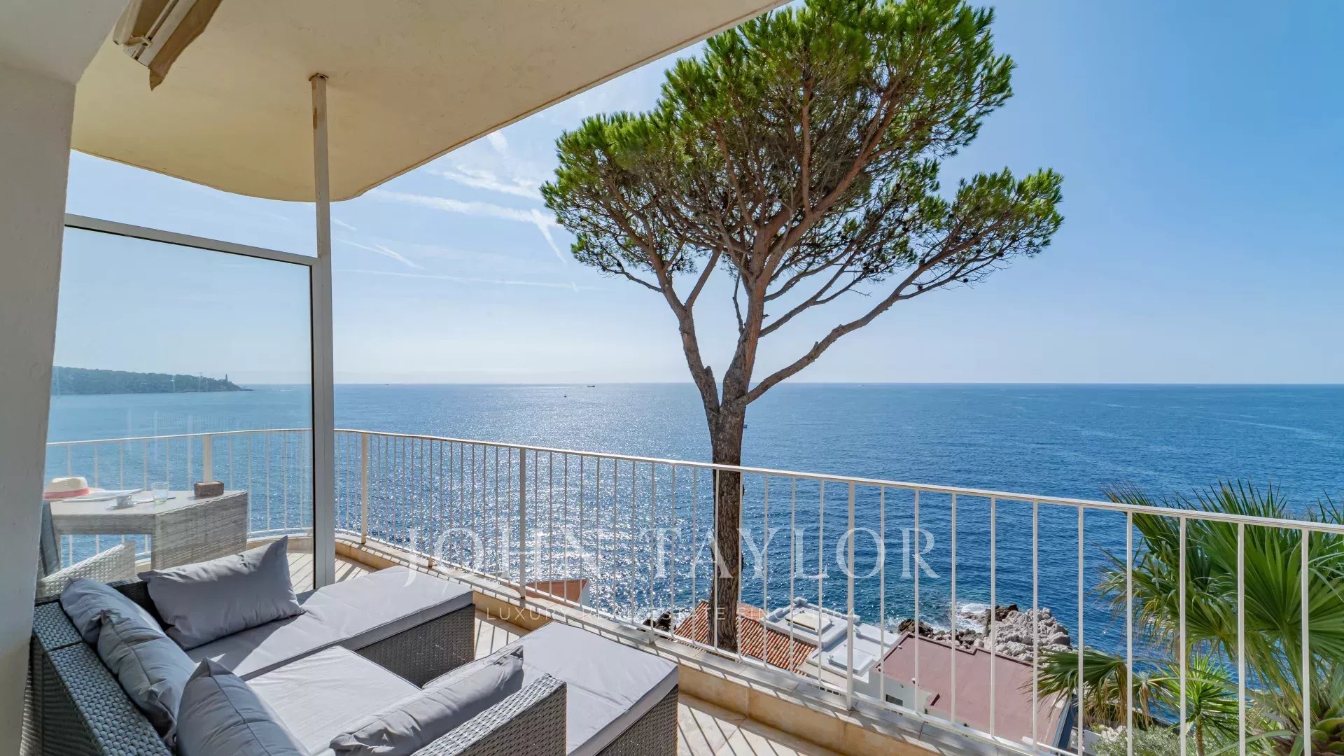 Bright and spacious living room with dining area, opening onto a terrace with a 180° sea view, 2 comfortable bedrooms, 1 bathroom, 1 shower room, guest toilet, and laundry room.