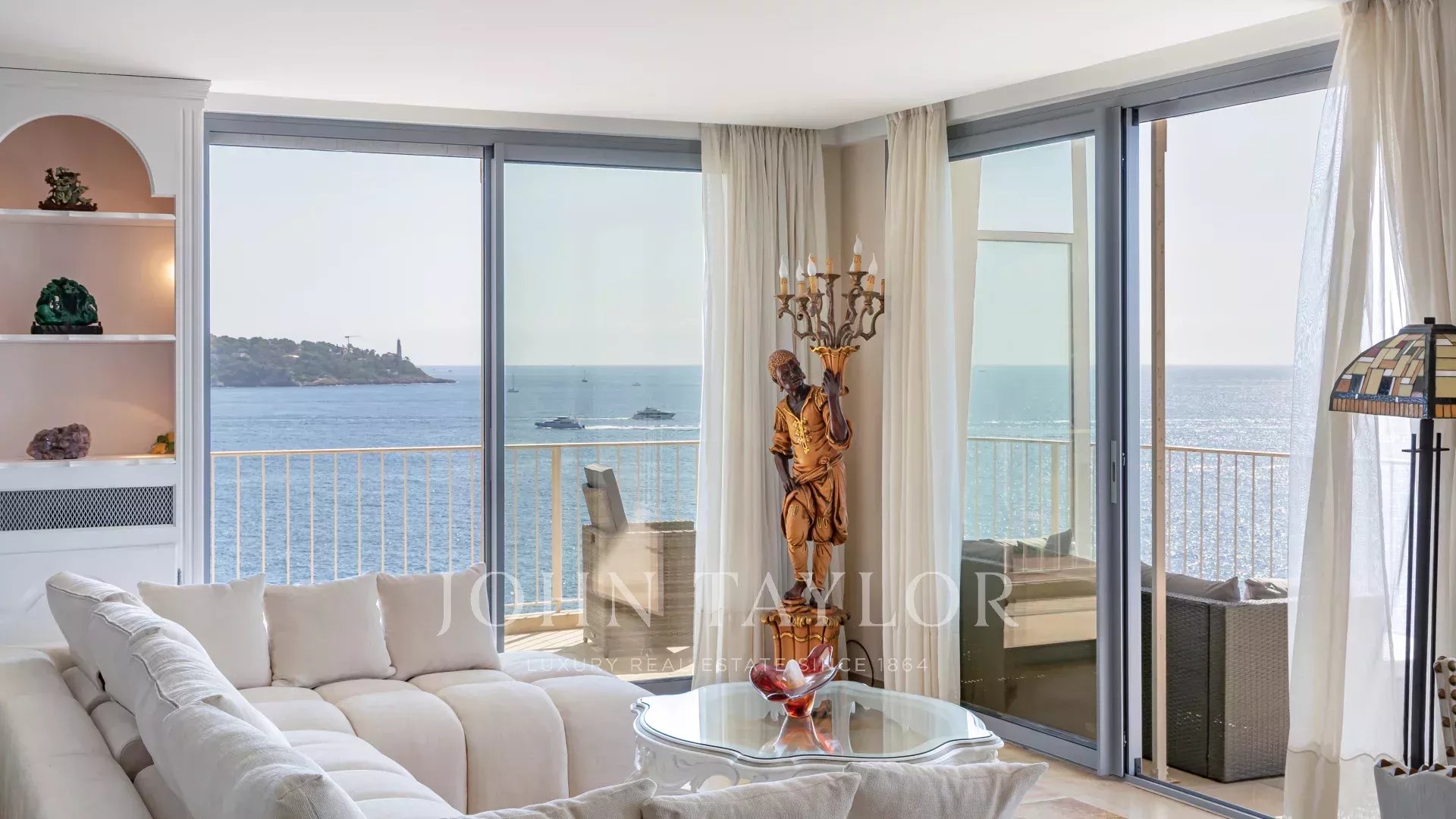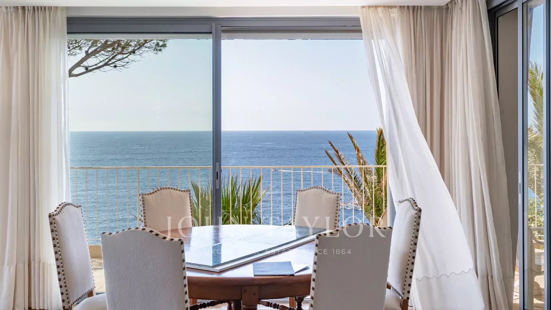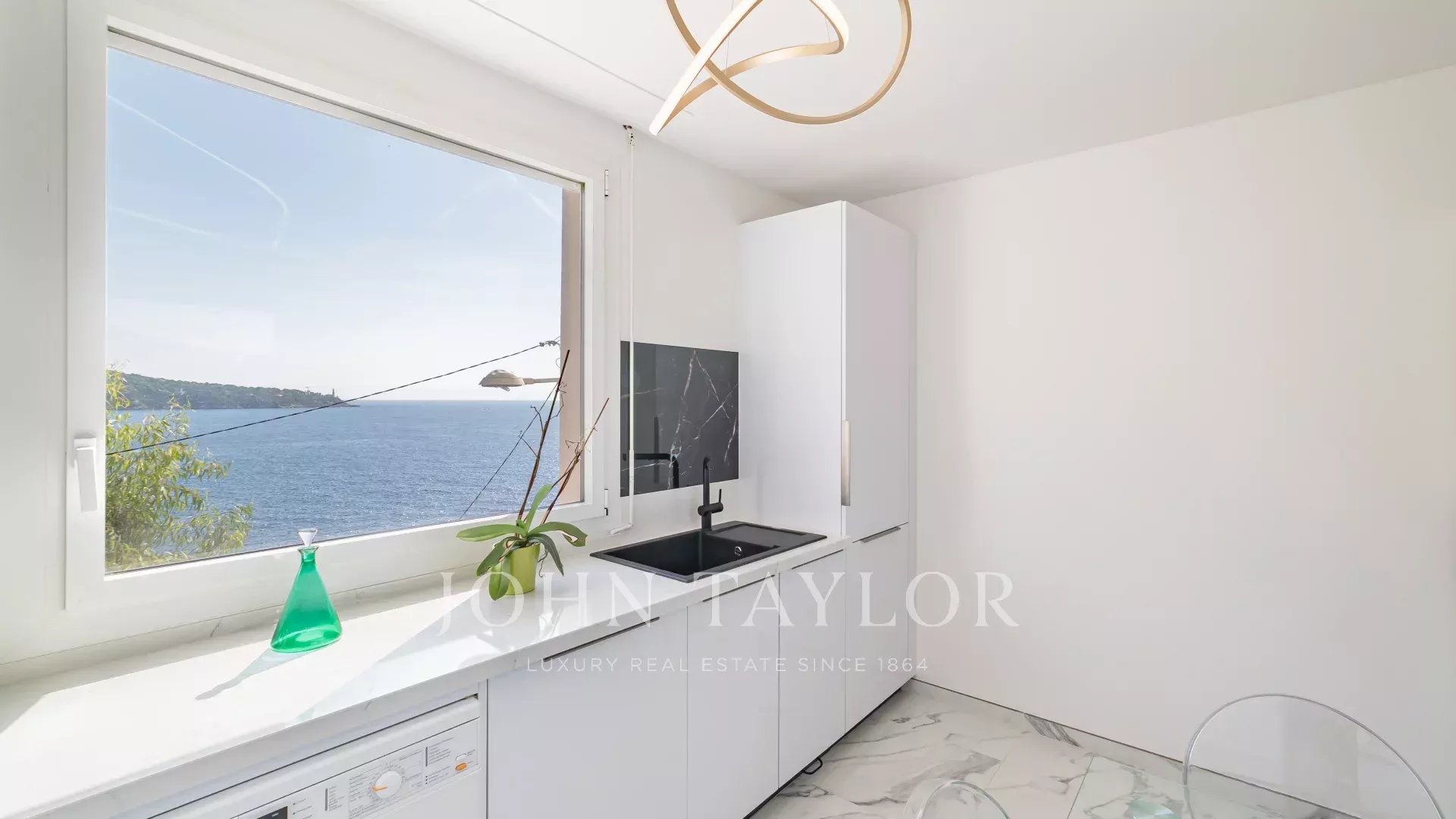Bright and spacious living room with dining area, opening onto a terrace with a 180° sea view, 2 comfortable bedrooms, 1 bathroom, 1 shower room, guest toilet, and laundry room.