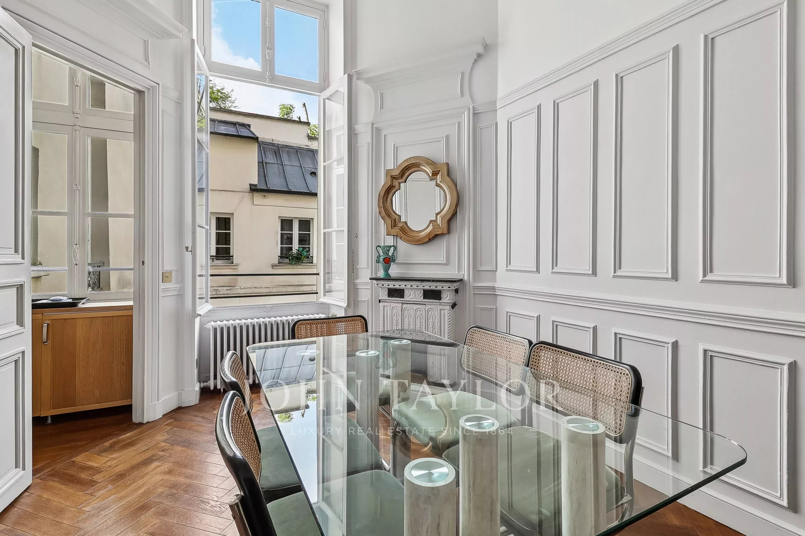 Rue Jacob, a two-minute walk from Place Furstemberg, in the heart of Saint-Germain-des-Prés, one of the most emblematic and sought-after neighborhoods on the Left Bank.
