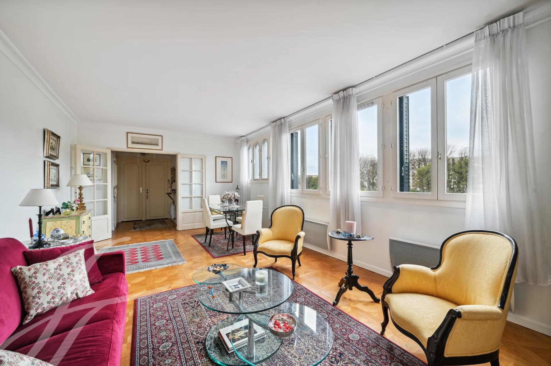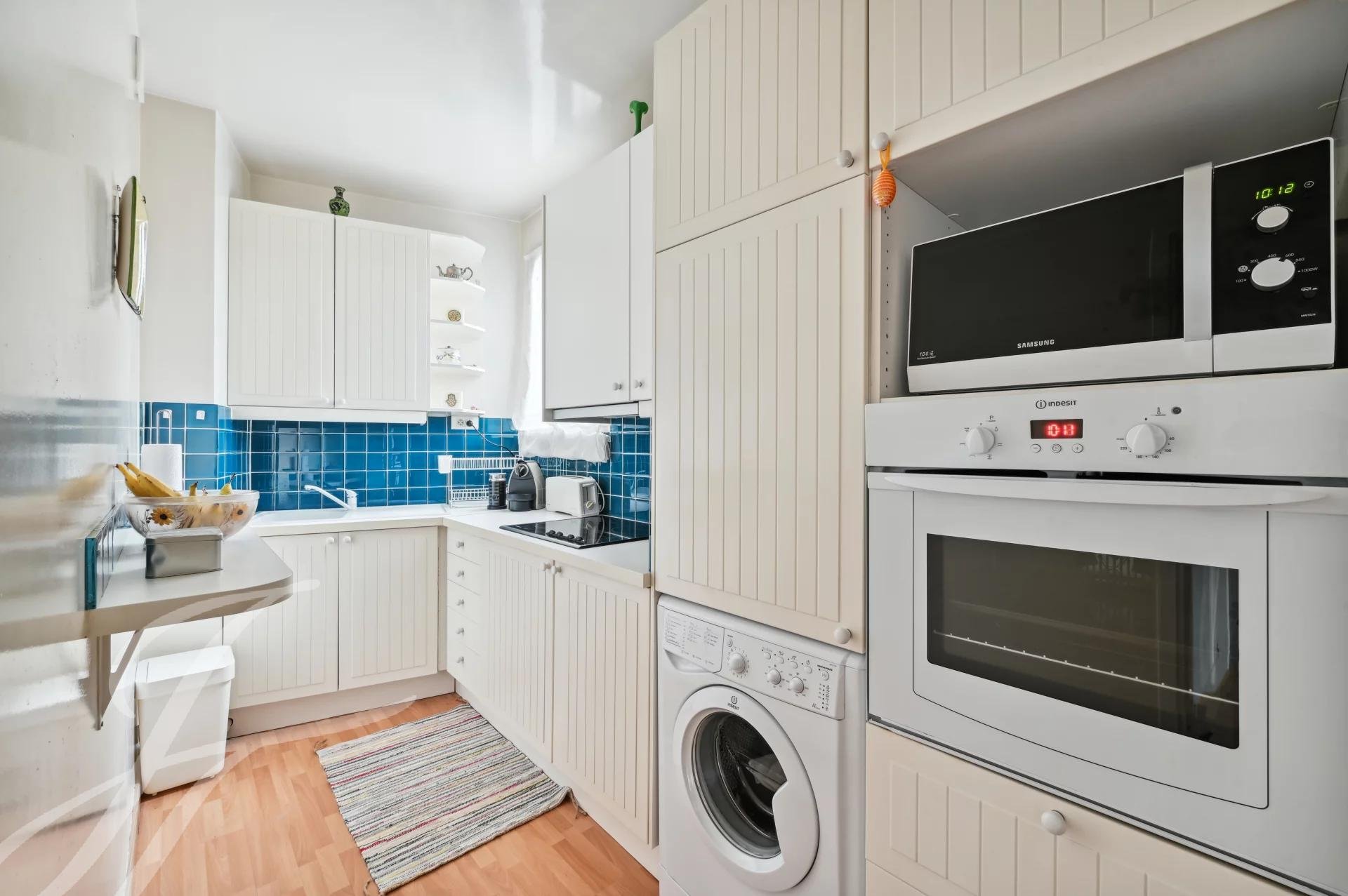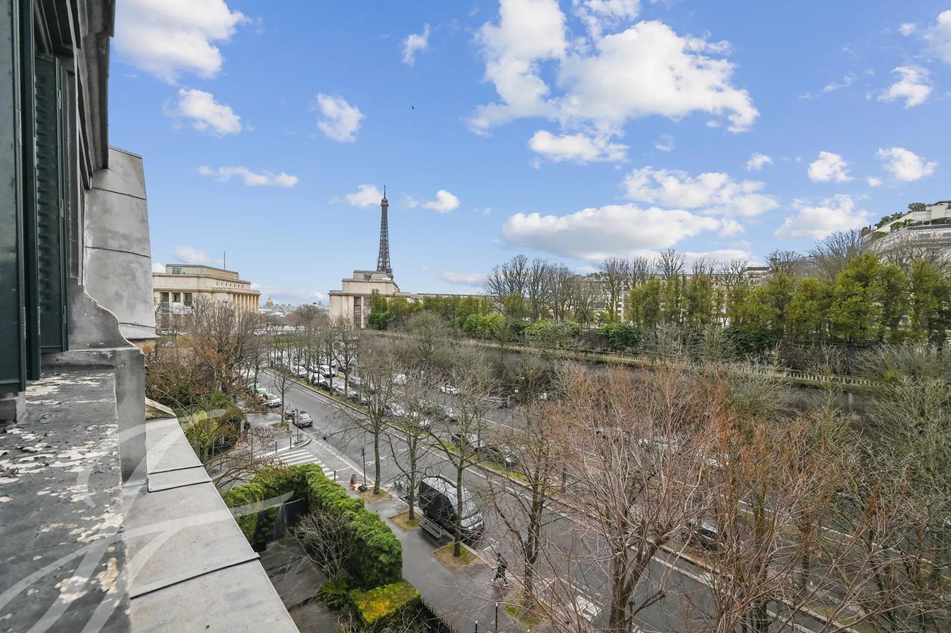 This bright and impeccably maintained apartment offers a view of the Eiffel Tower.
