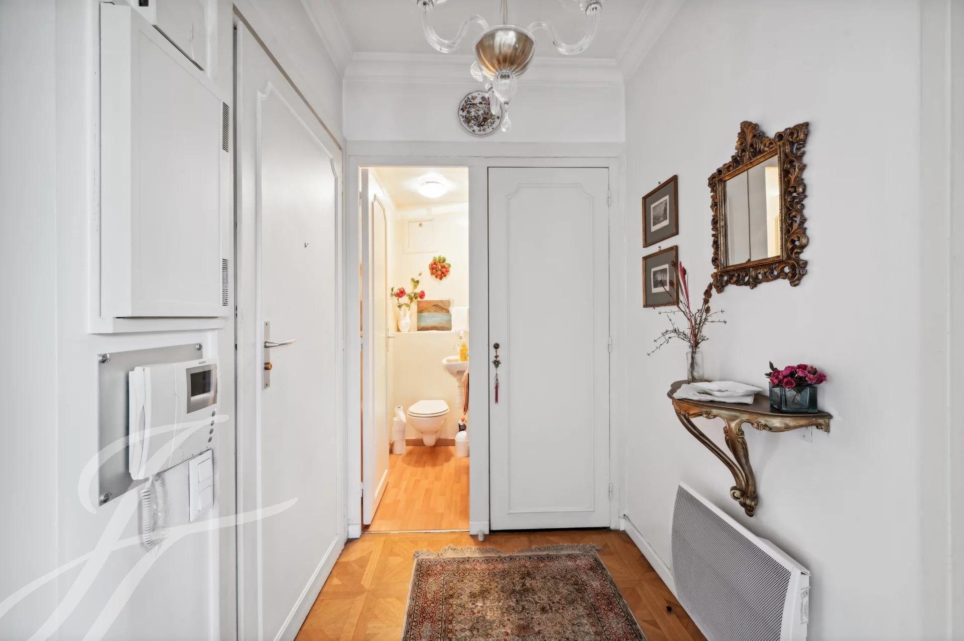 In the immediate vicinity of Trocadéro, a furnished apartment spanning 70.32m² is situated on the fourth floor of a prestigious building with an elevator, comprising: