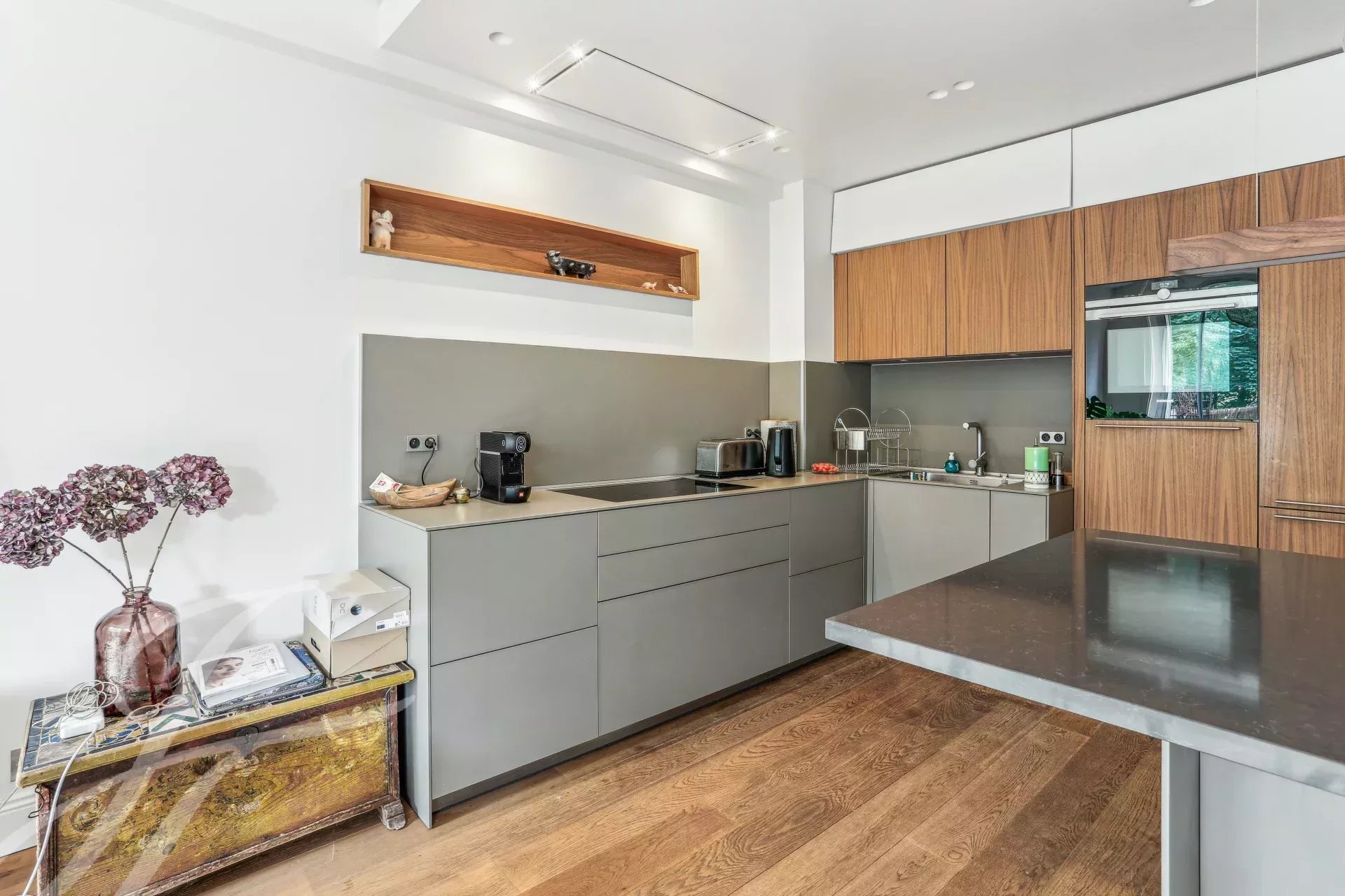 Close to the OECD and all the excellent shops on Rue Blanche, in a secure building with 24/7 security and concierge service, this fully furnished, cross-through apartment on the second floor—with two balconies, including a dining balcony equipped with a table, chairs, and a sun lounger, perfect for enjoying breakfast in the sunshine—is composed of: