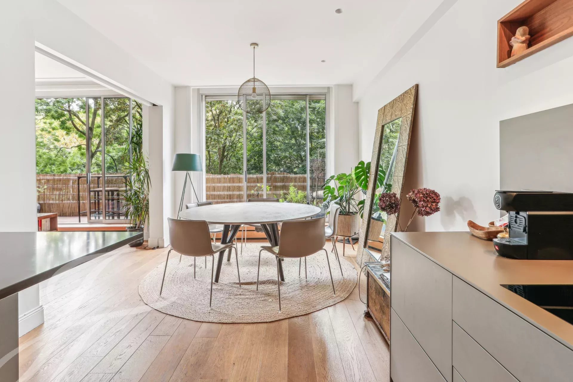 - a large, unoverlooked living room with open kitchen and view of the greenery,