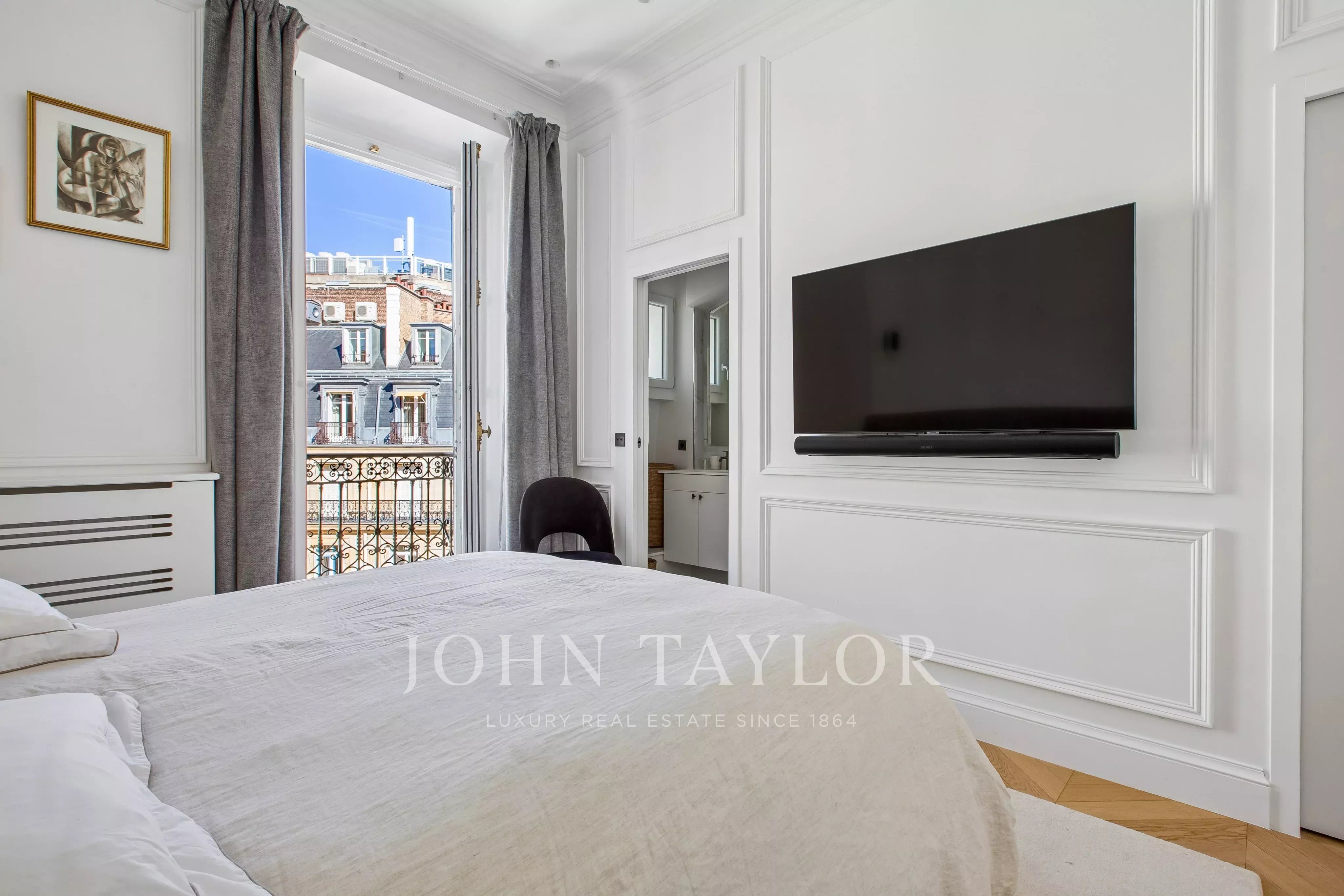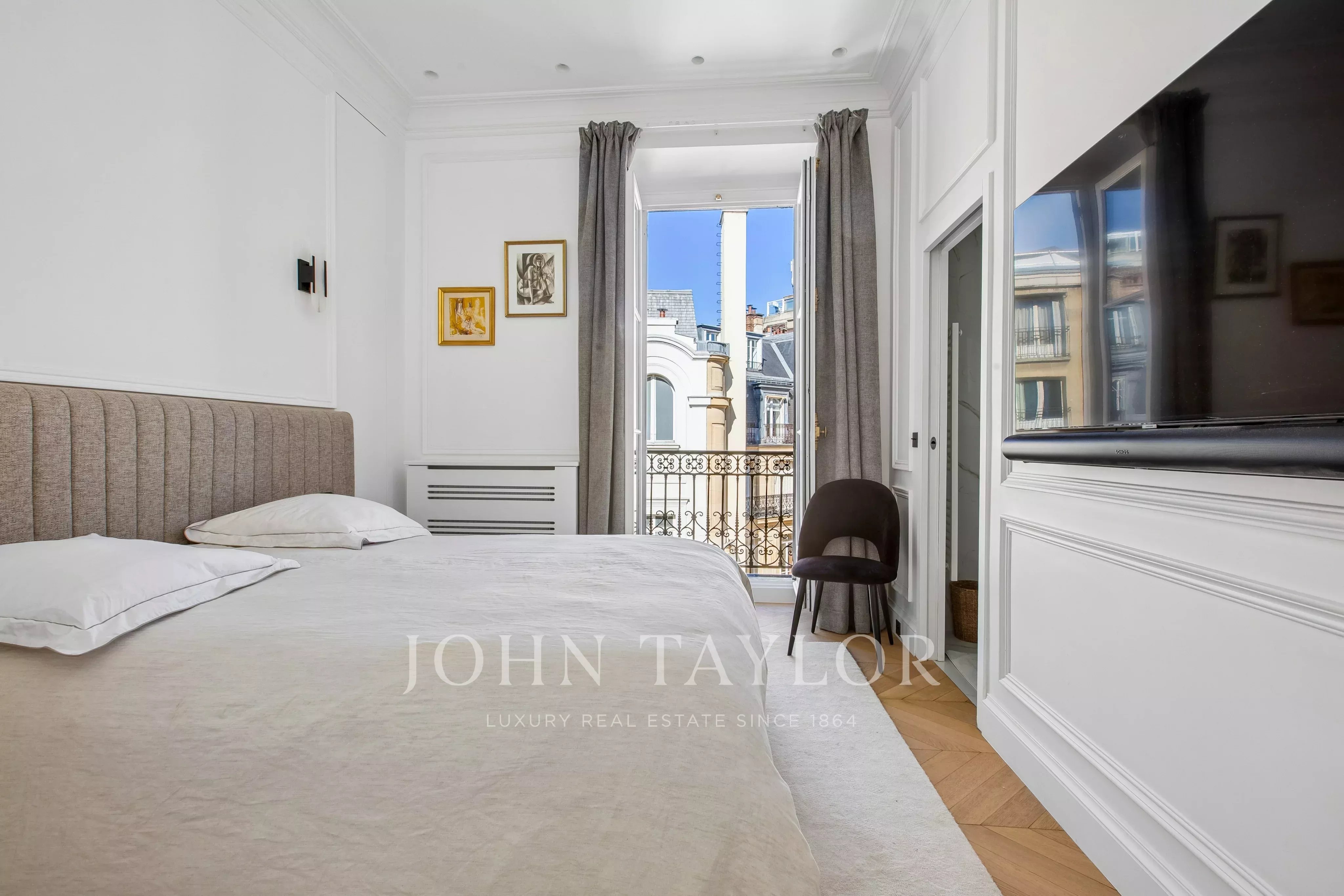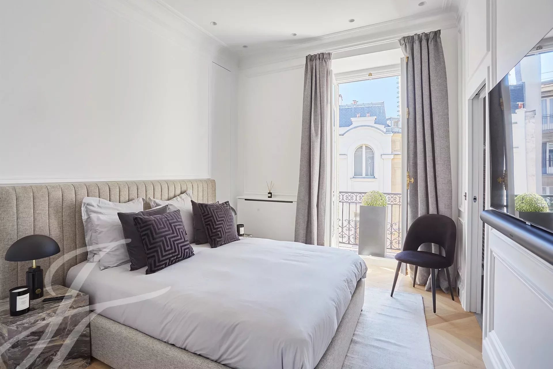 Organized like a hotel suite and located in absolute calm, this through apartment, with beautiful volumes, has been luxuriously renovated with top-of-the-range amenities.