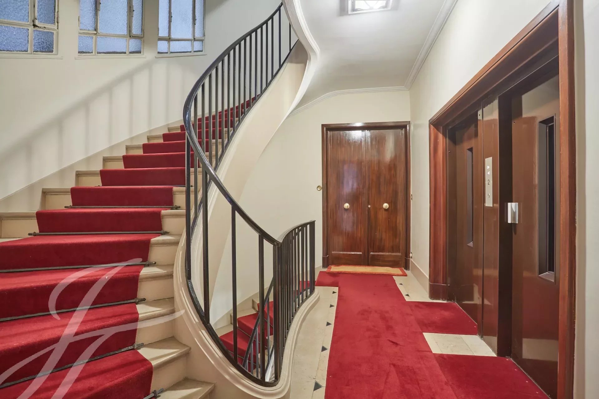 Close to the famous Avenue Montaigne, on the second floor of a 1920 building with janitor, this unfurnished apartment comprises: