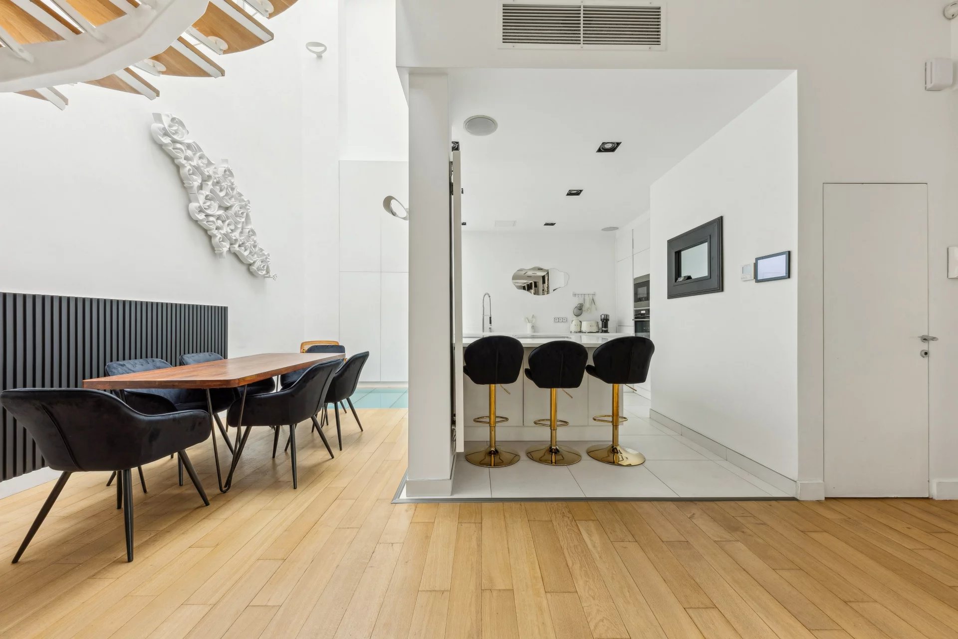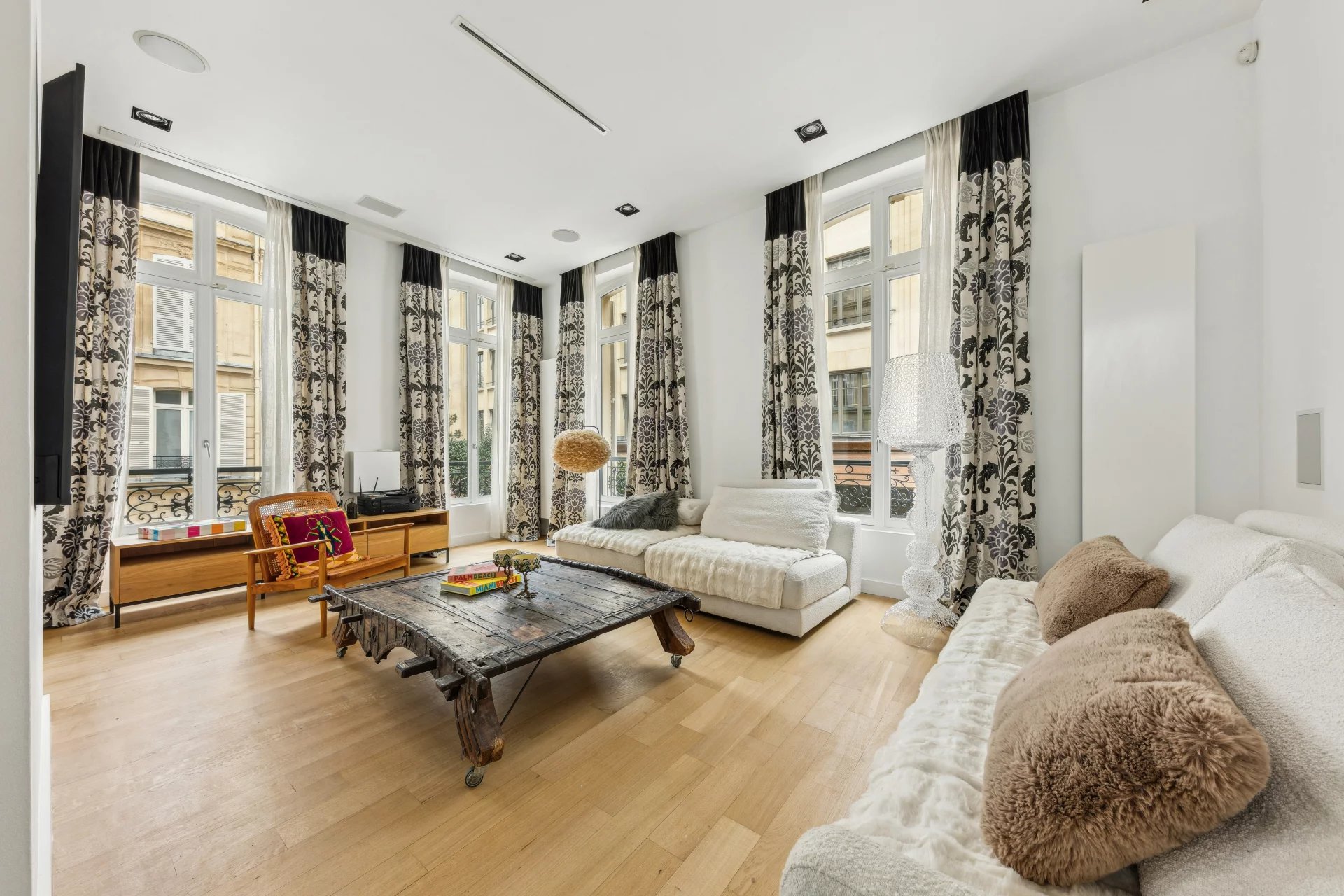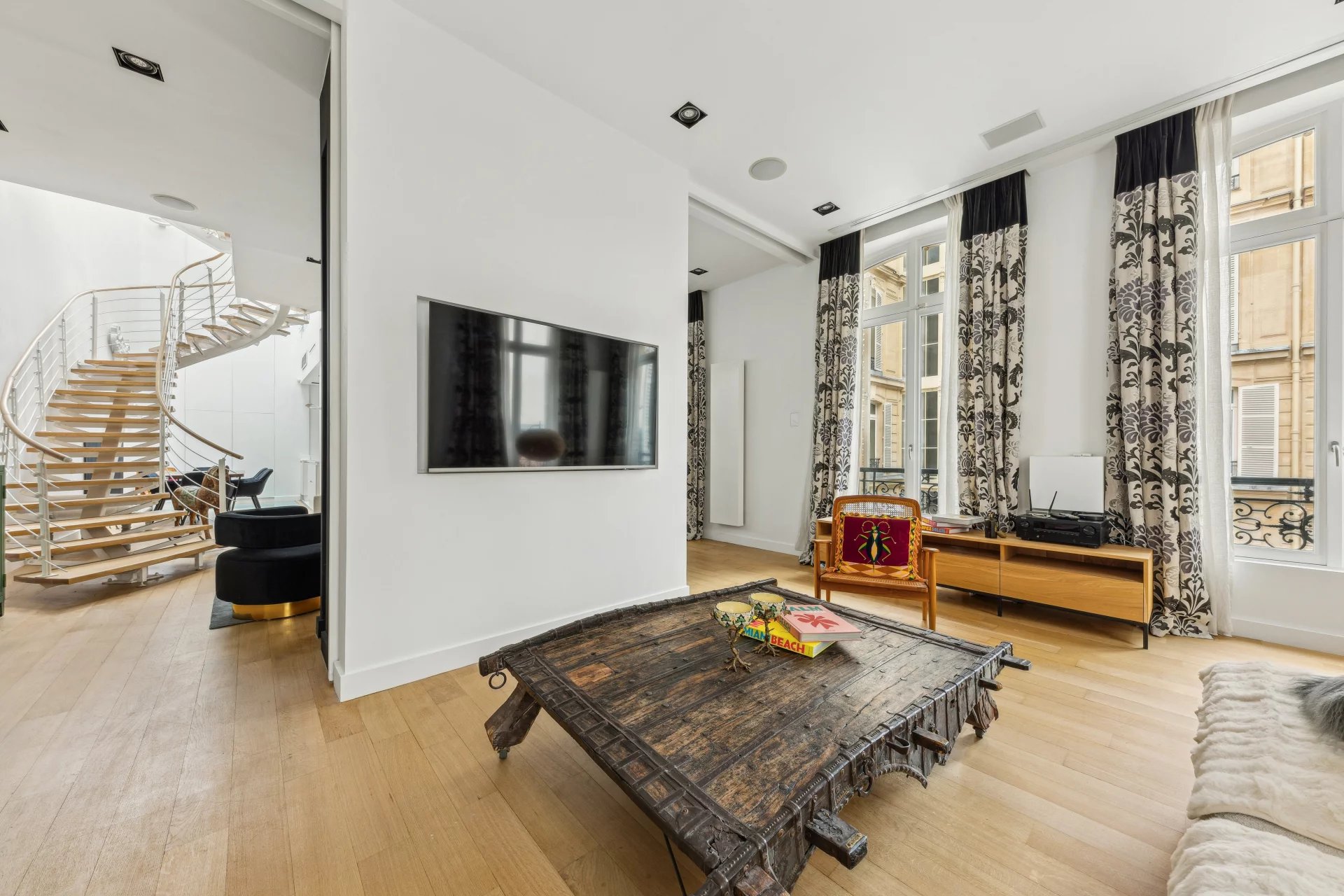 Ideally located in the heart of the Golden Triangle, this sumptuously furnished duplex apartment in a former town house has been fully renovated and equipped with a home automation system: