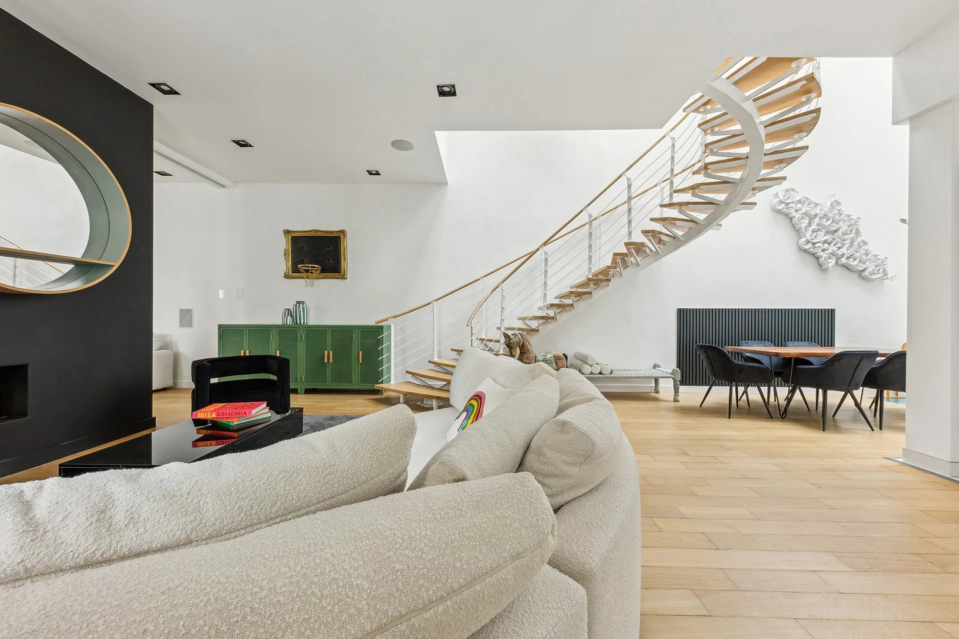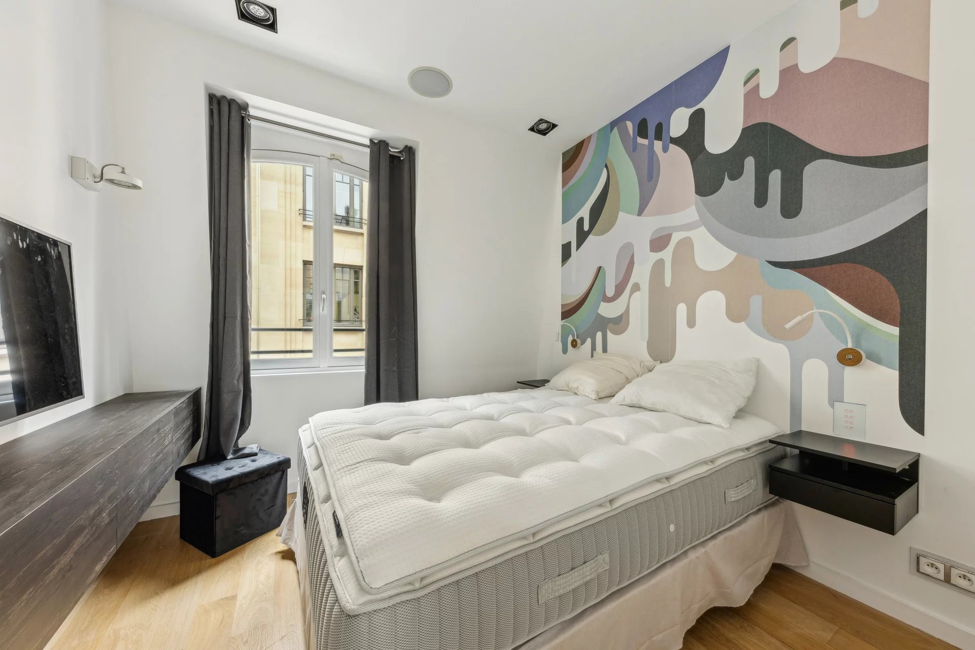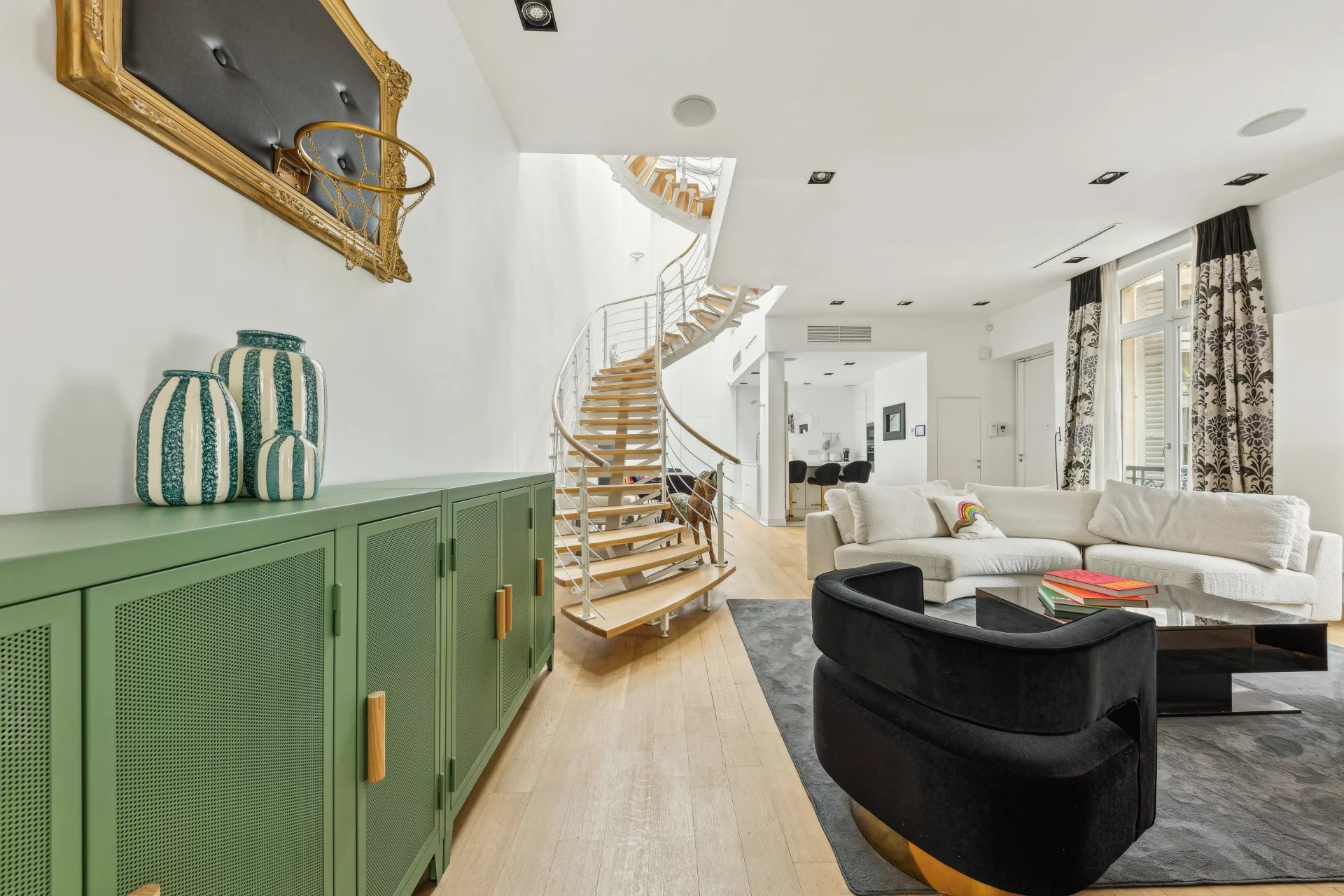 Ideally located in the heart of the Golden Triangle, this sumptuously furnished duplex apartment in a former town house has been fully renovated and equipped with a home automation system: