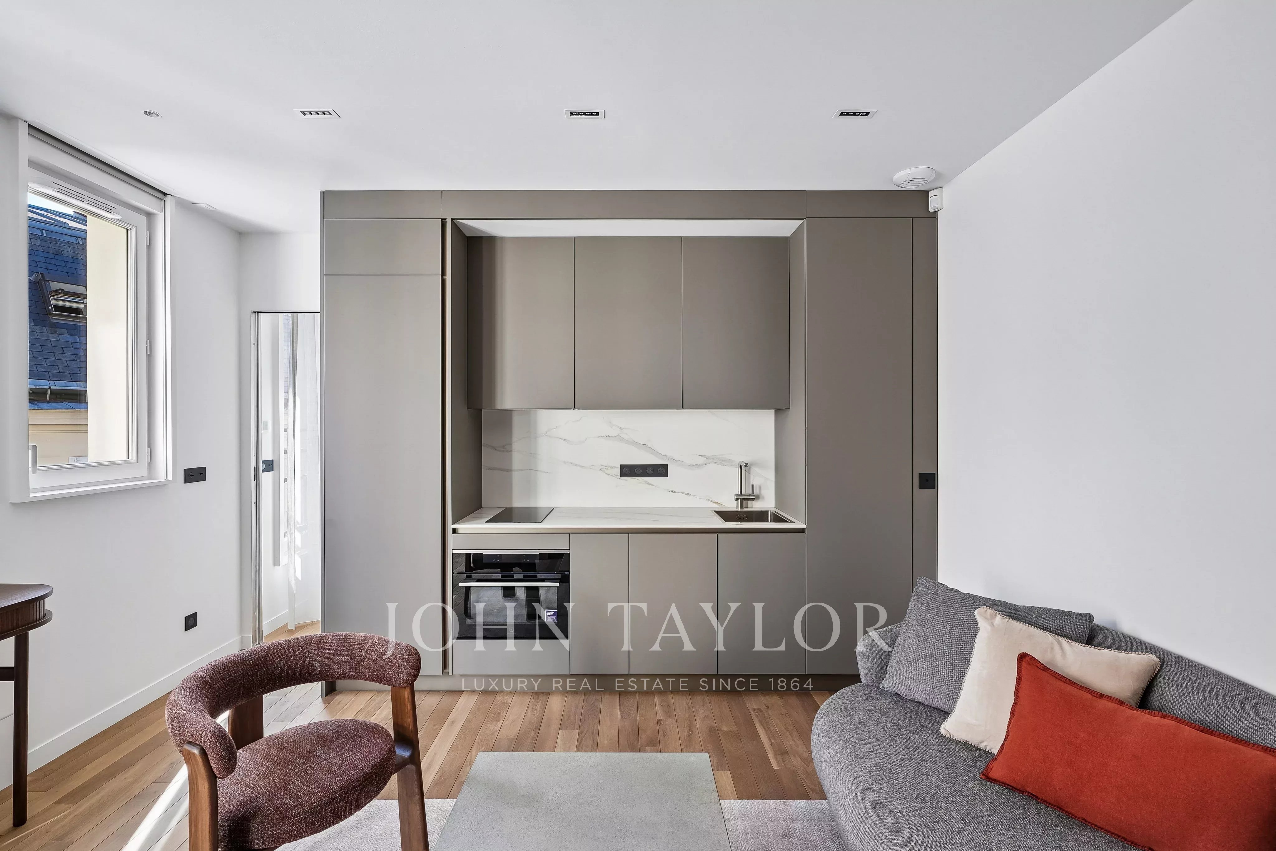 Located in the heart of the prestigious 8th arrondissement of Paris, in close proximity to numerous shops and Parc Monceau, in a building that has undergone a complete renovation (designed for low energy consumption), this furnished apartment on the 5th floor consists of: