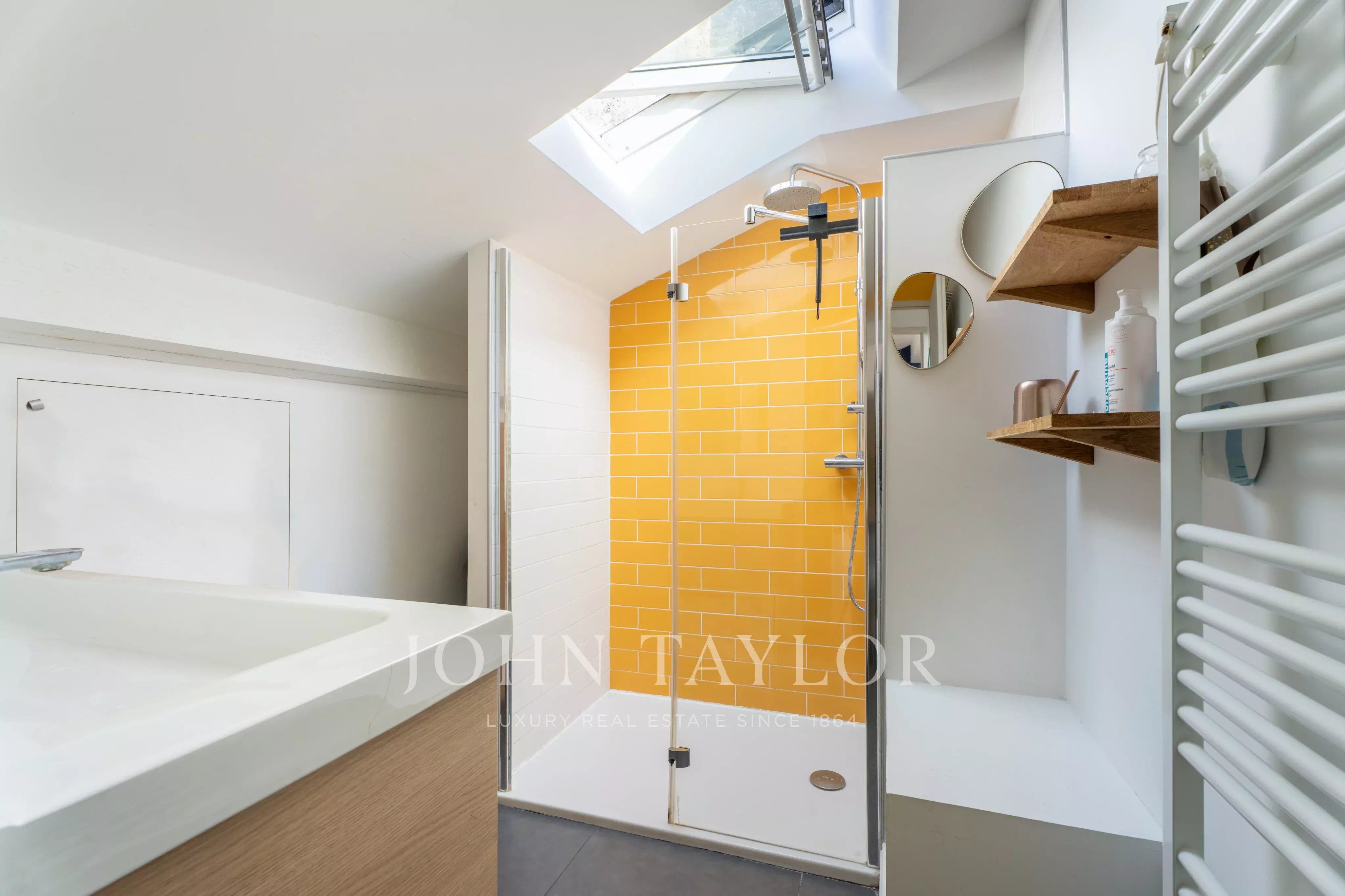 In the garden level, you will find a beautiful master suite with direct access to the small garden, an office that can also serve as a bedroom, a bathroom with shower and WC, as well as a laundry room.