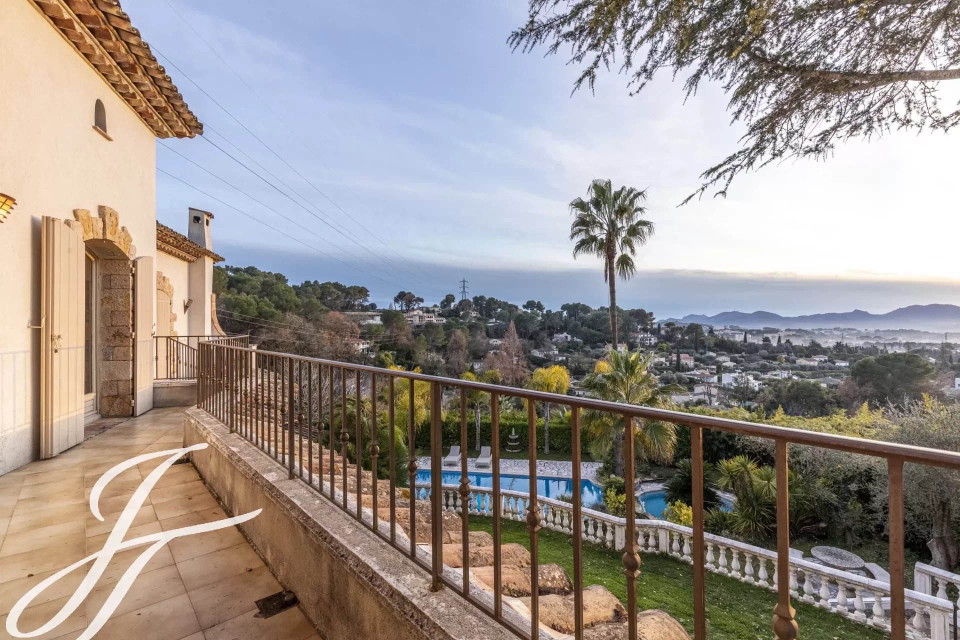 This cozy 280 m² Provençal-style villa enjoys a perfect location just 5 minutes from the charming village of Mougins, a short drive from Cannes, and within close proximity to tennis courts and golf courses.