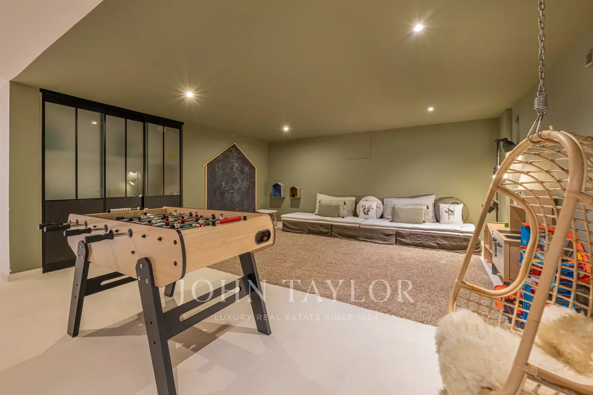 Located in a private, gated community, just minutes from the charming old village of Mougins, this magnificent villa of approx. 415 sqm offers elegance, comfort, and modern luxury. Nestled within a flat landscaped garden with a heated swimming pool and a pétanque court, this property is the perfect family home.