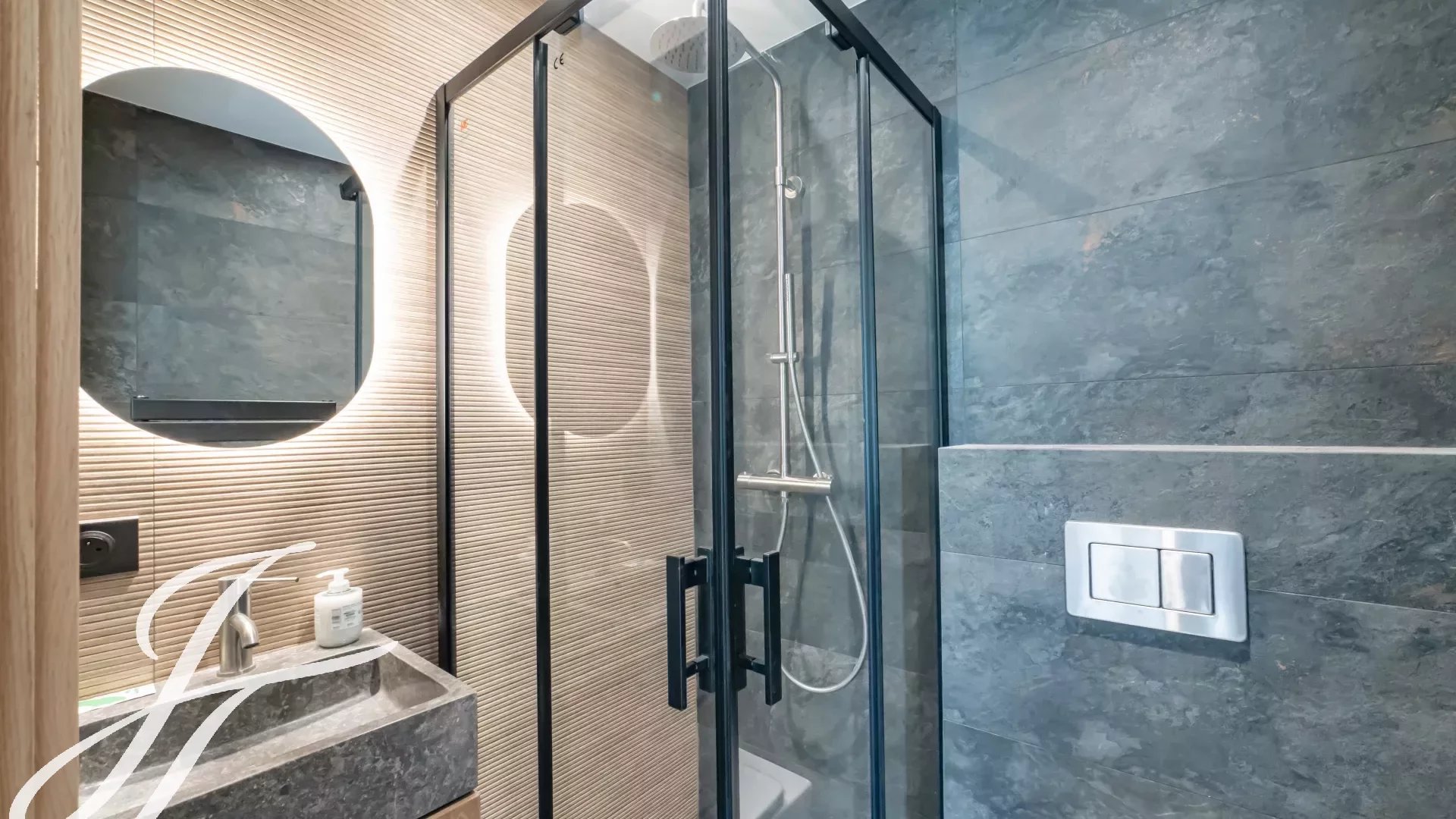 The soul of this home lies in the choice of noble, timeless materials: Burgundy stone, solid parquet flooring and walls sublimated by limewash paint. Every detail has been designed to create a harmonious living environment, where comfort and aesthetics meet in elegance.