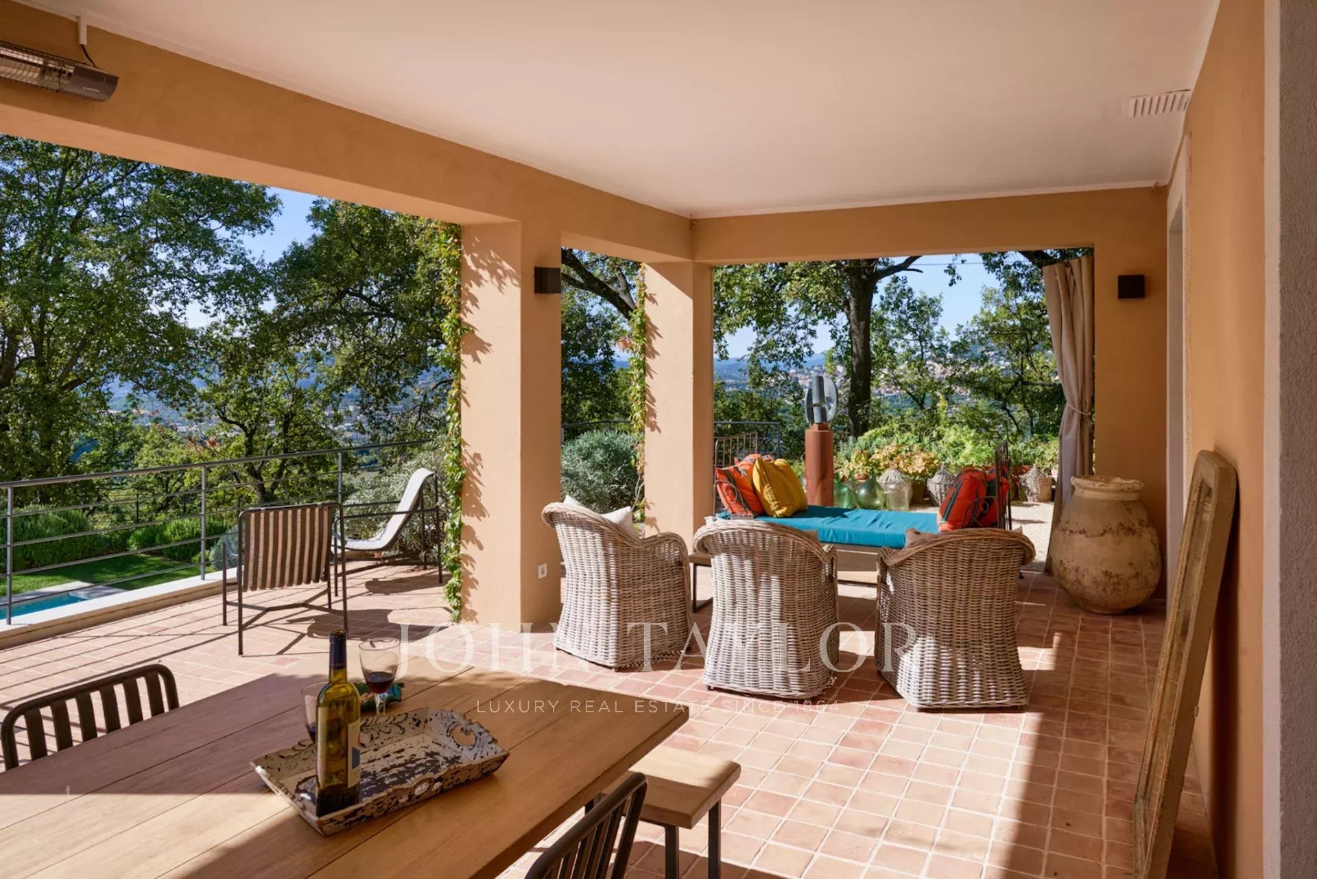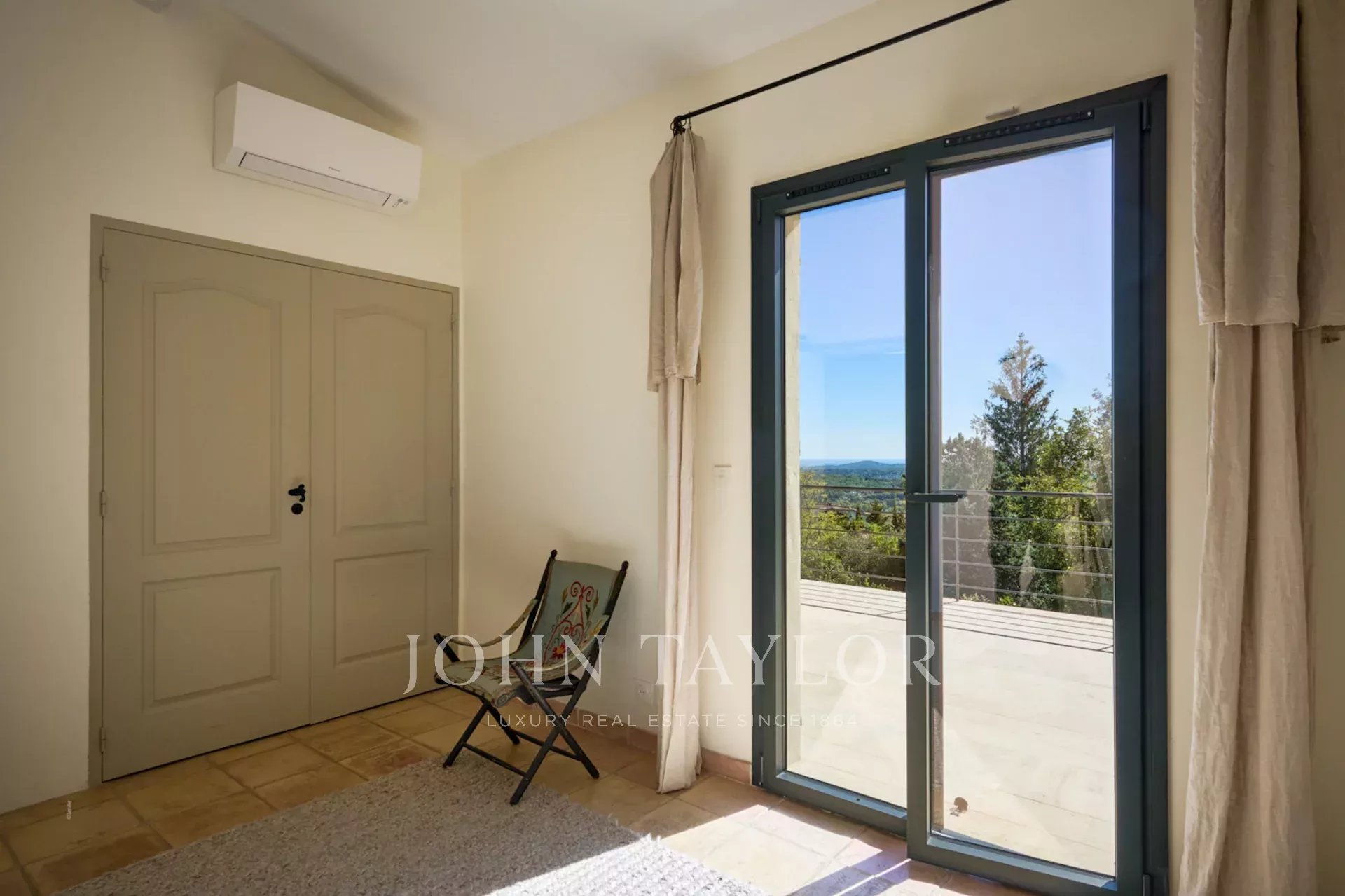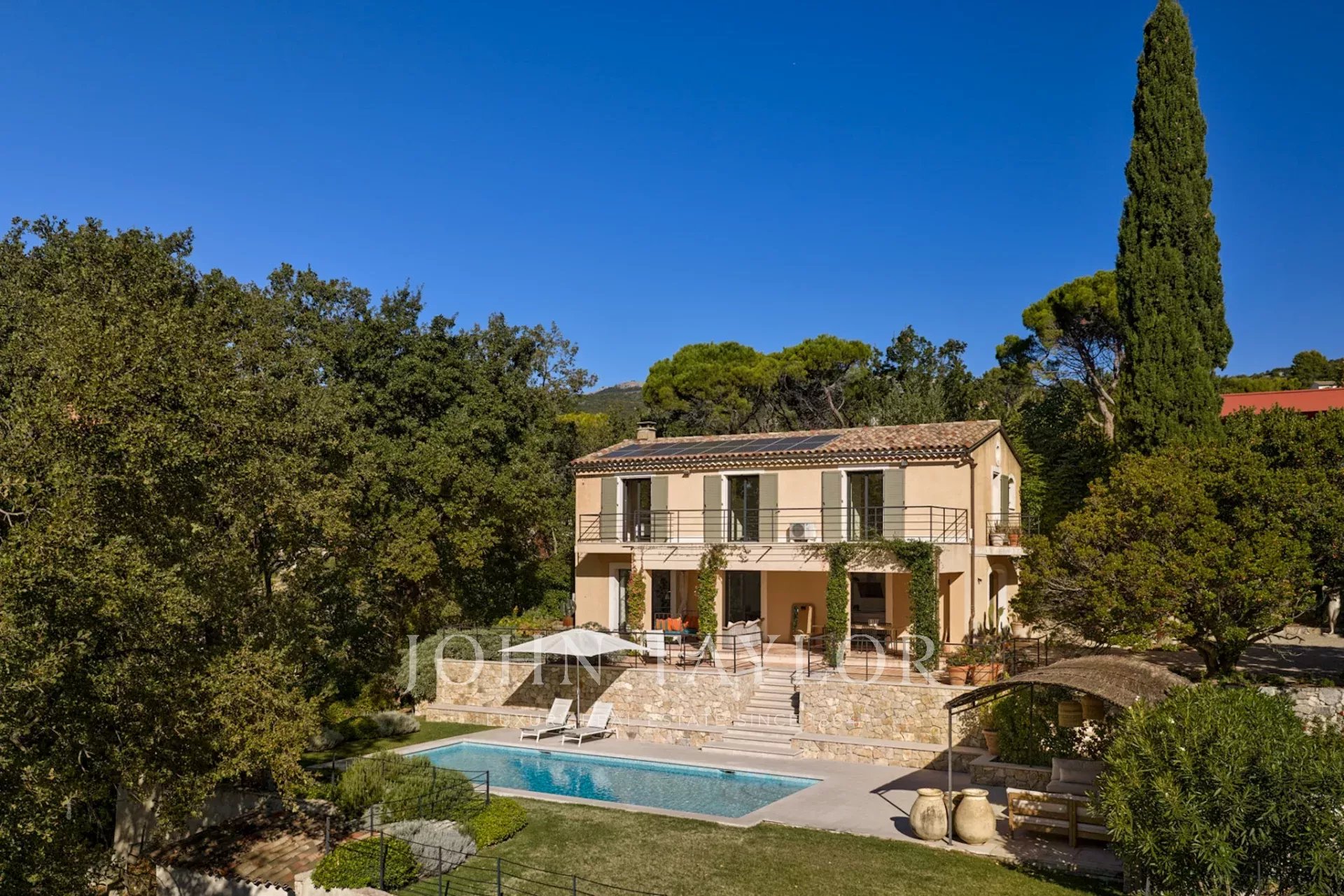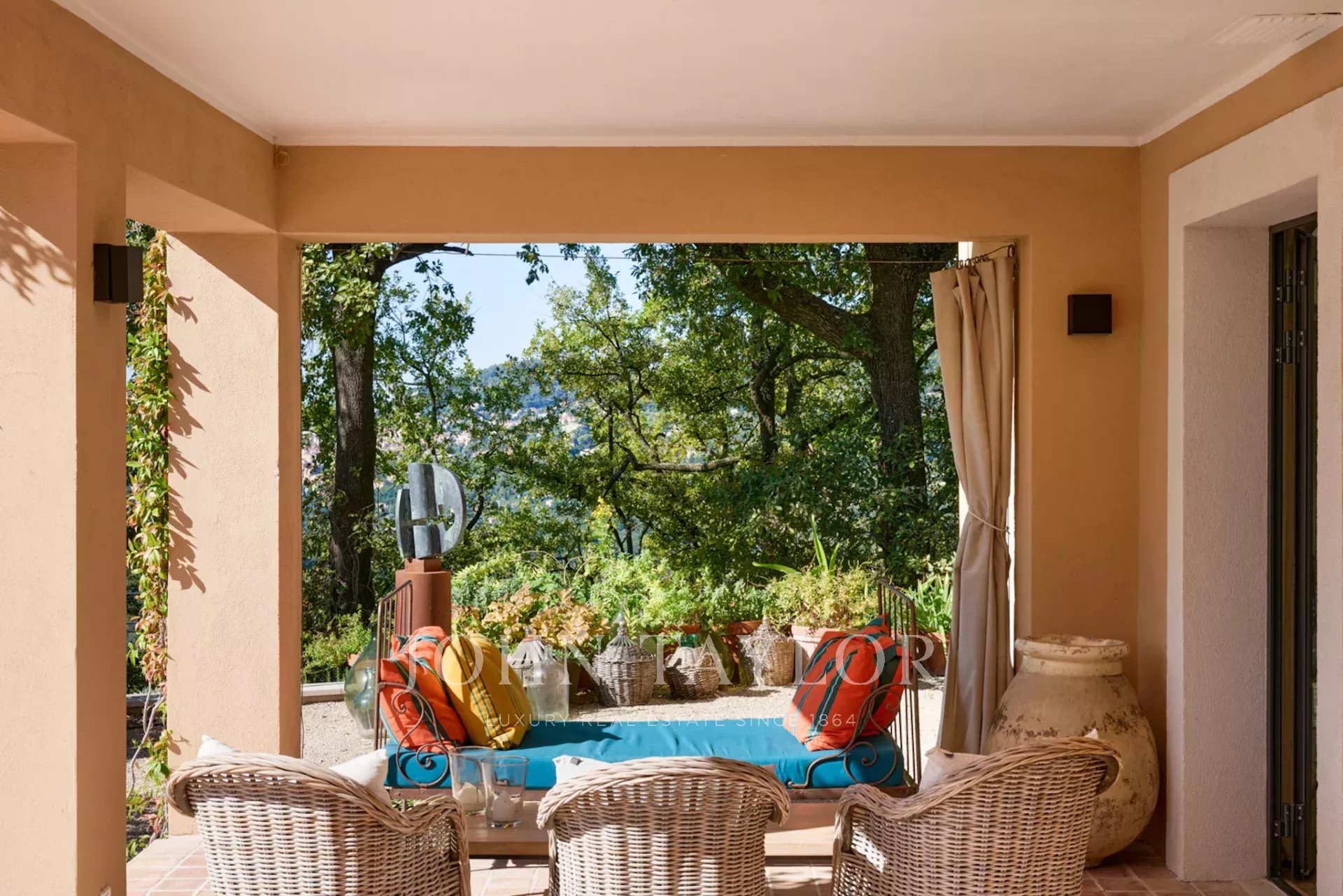 Beautifully renovated bastide in a dominant position with views as far as the sea, in Châteauneuf-Grasse, facing south.