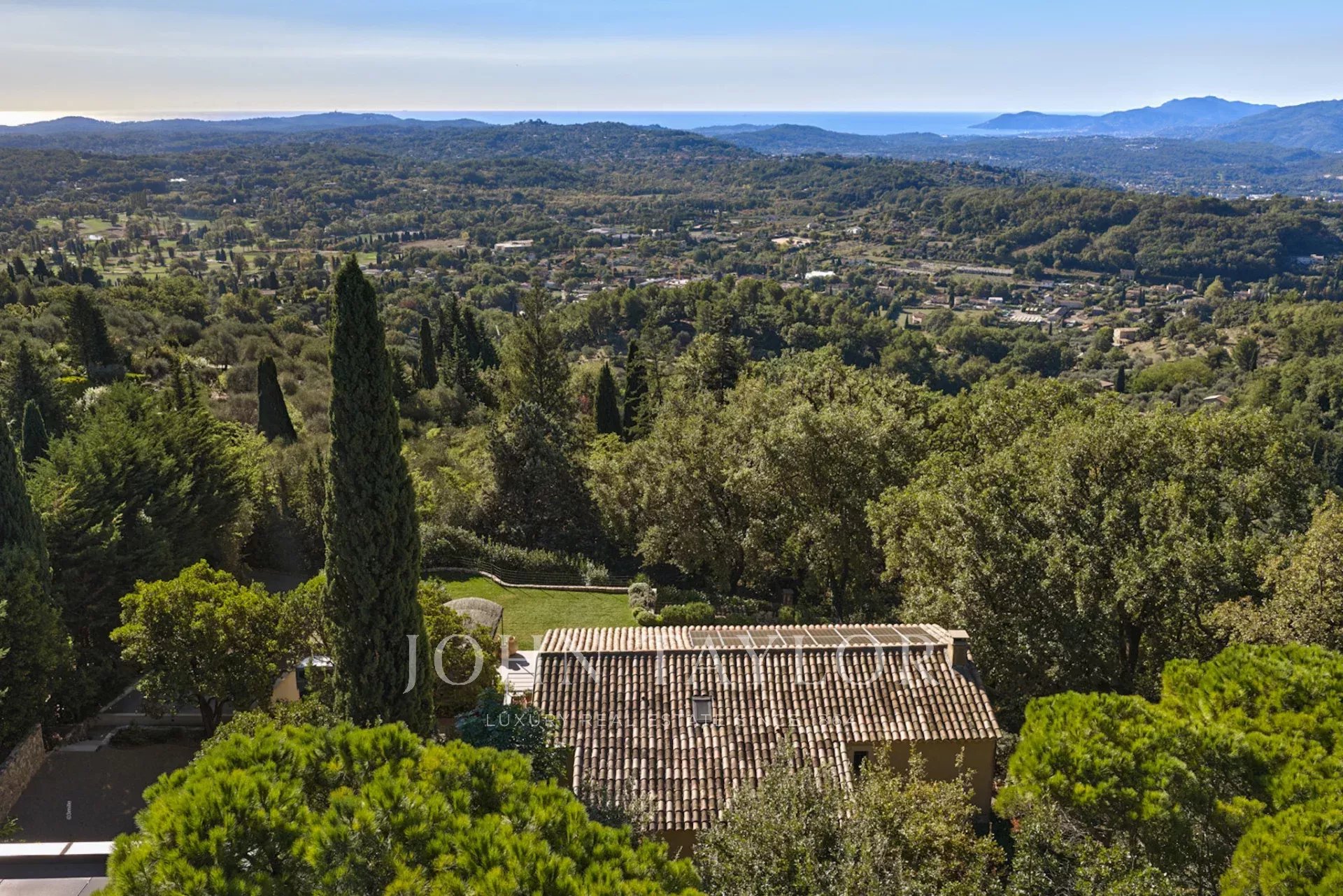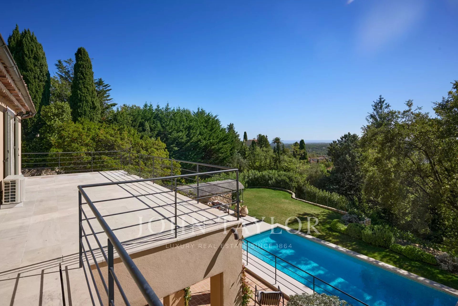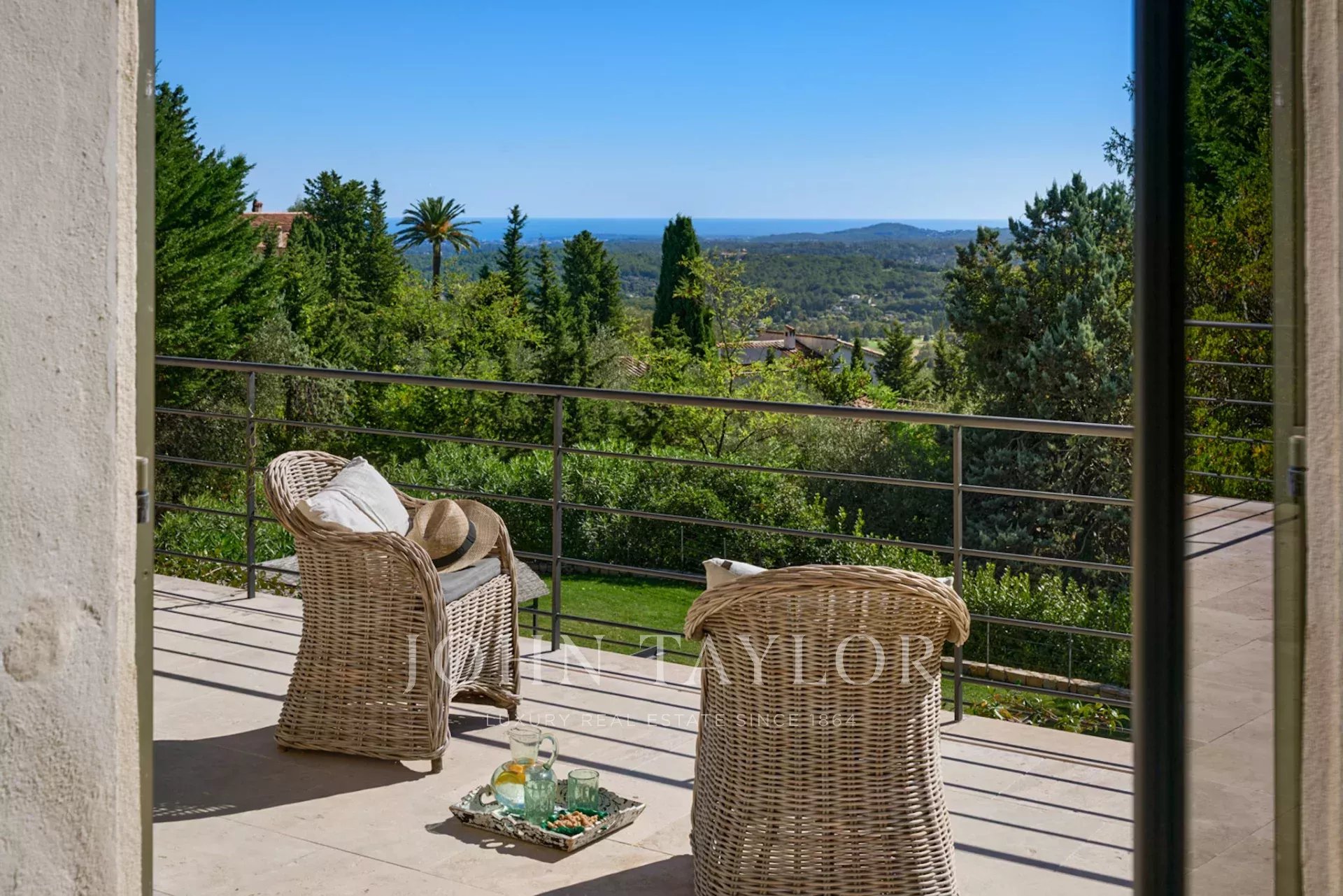 Beautifully renovated bastide in a dominant position with views as far as the sea, in Châteauneuf-Grasse, facing south.