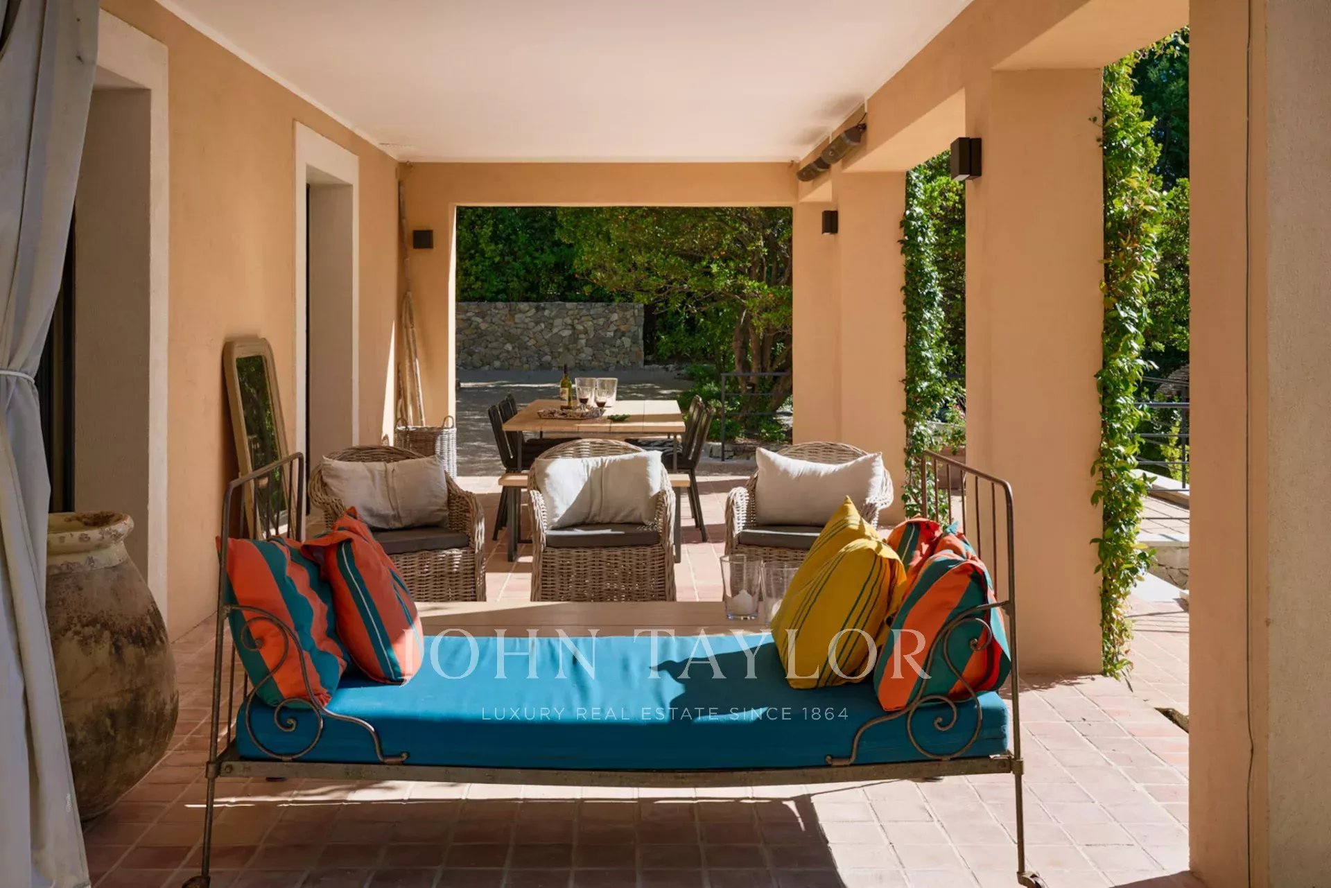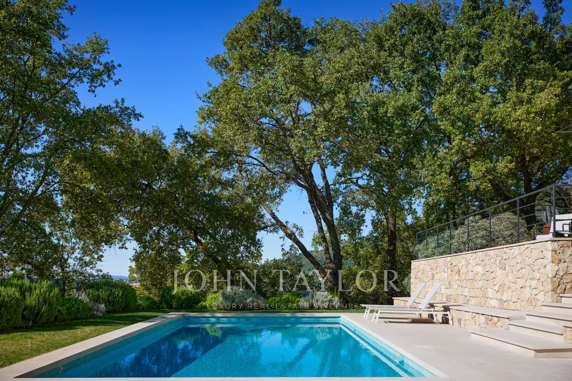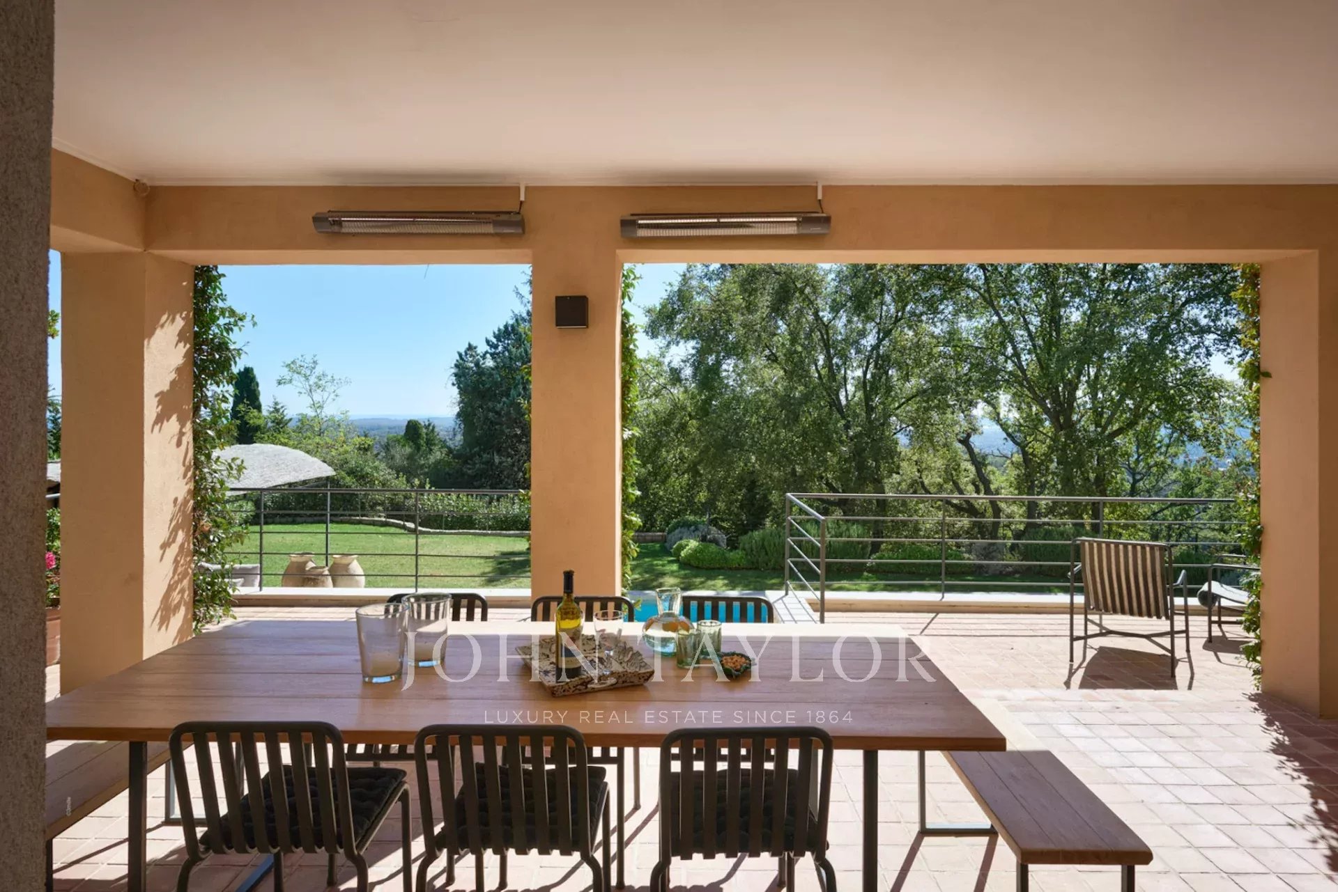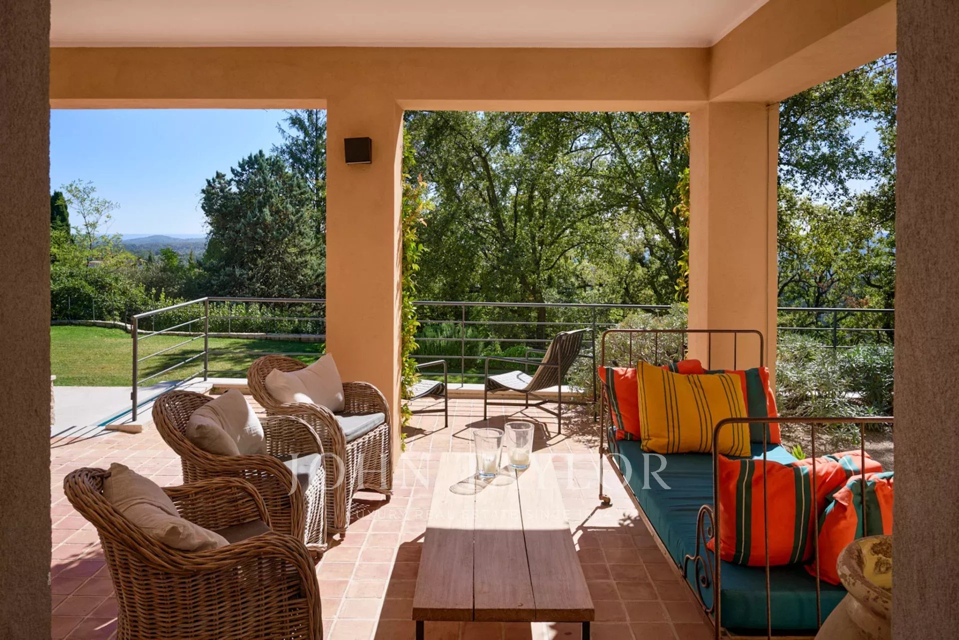 Beautifully renovated bastide in a dominant position with views as far as the sea, in Châteauneuf-Grasse, facing south.