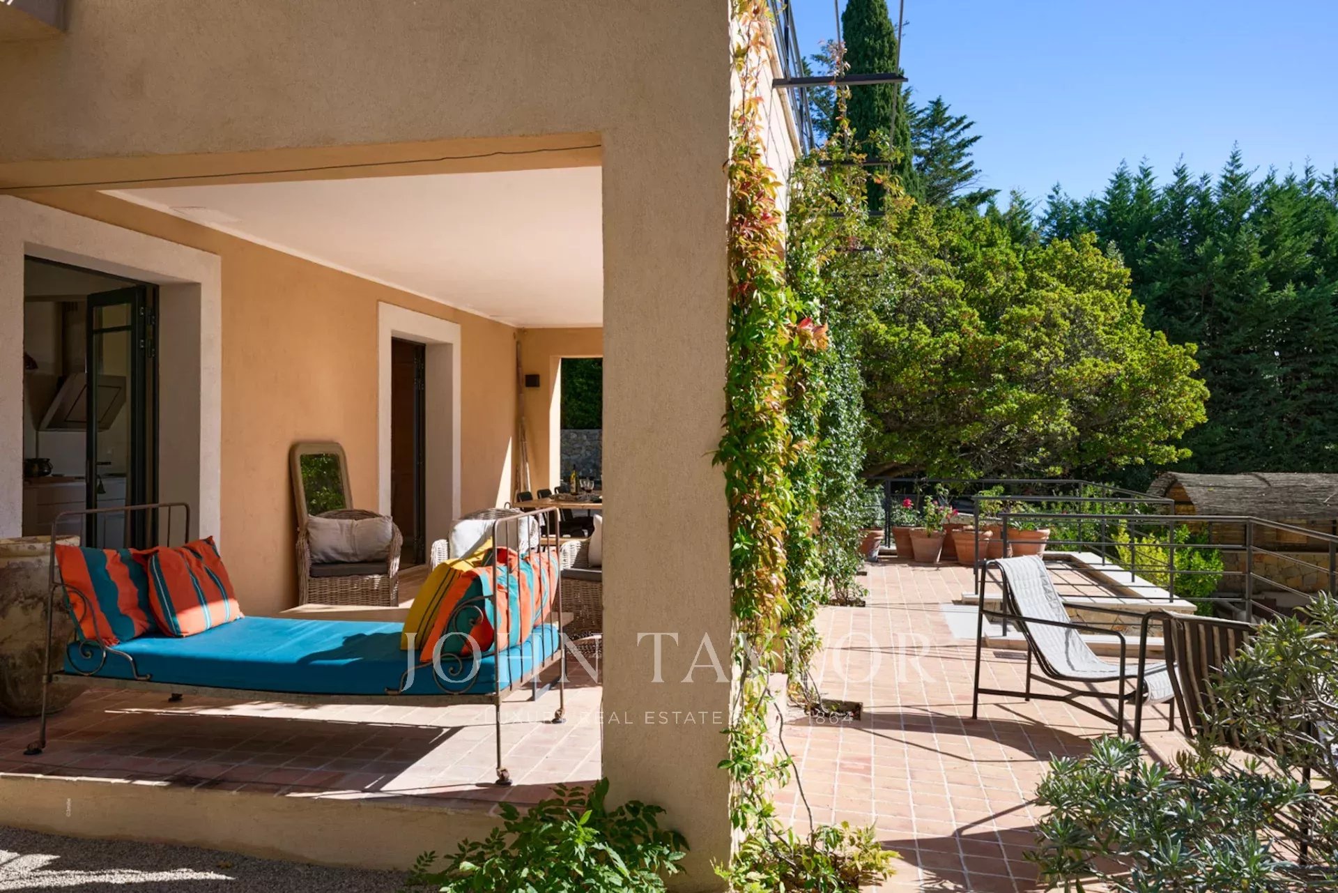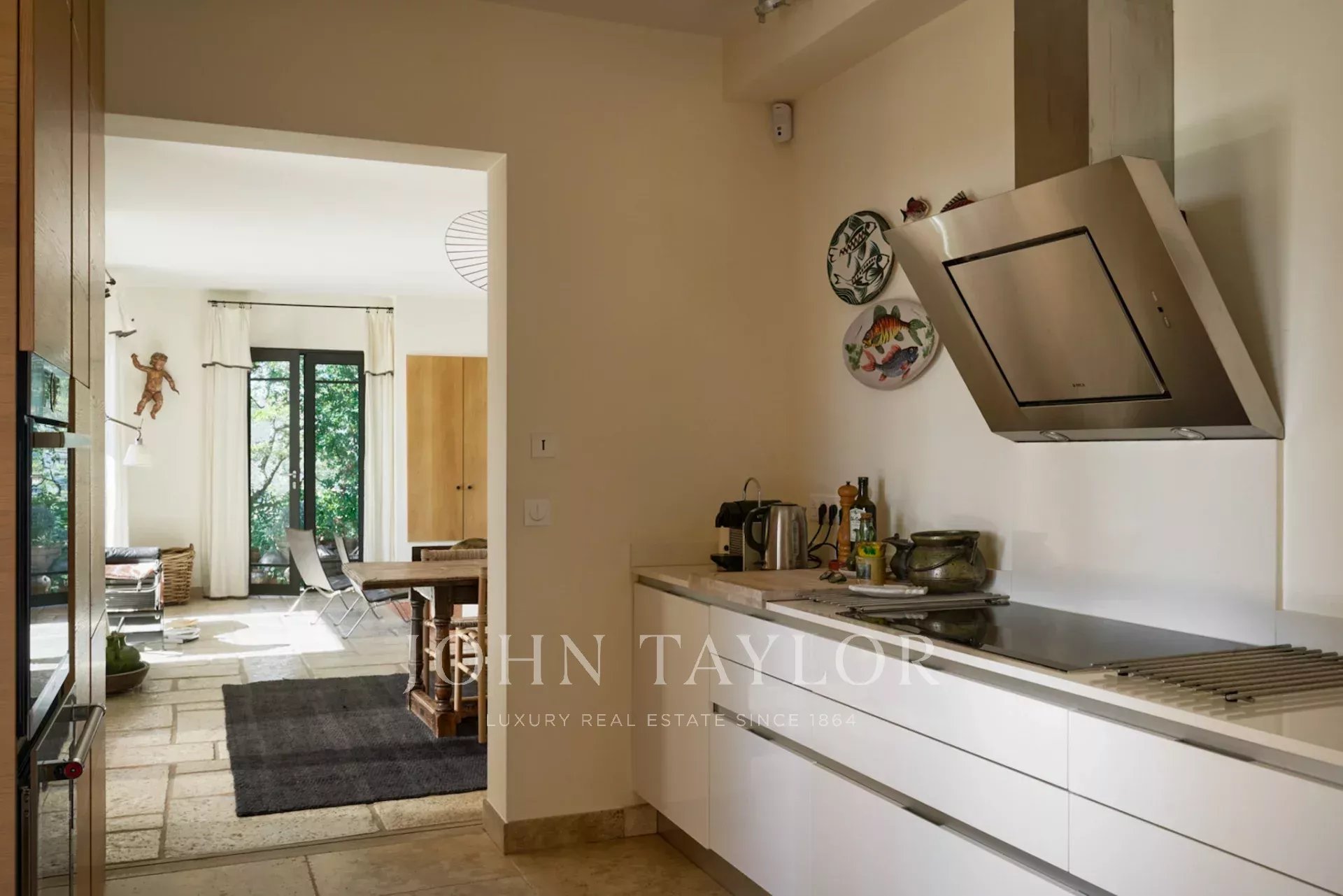 Beautiful modern kitchen opening onto south-facing terrace