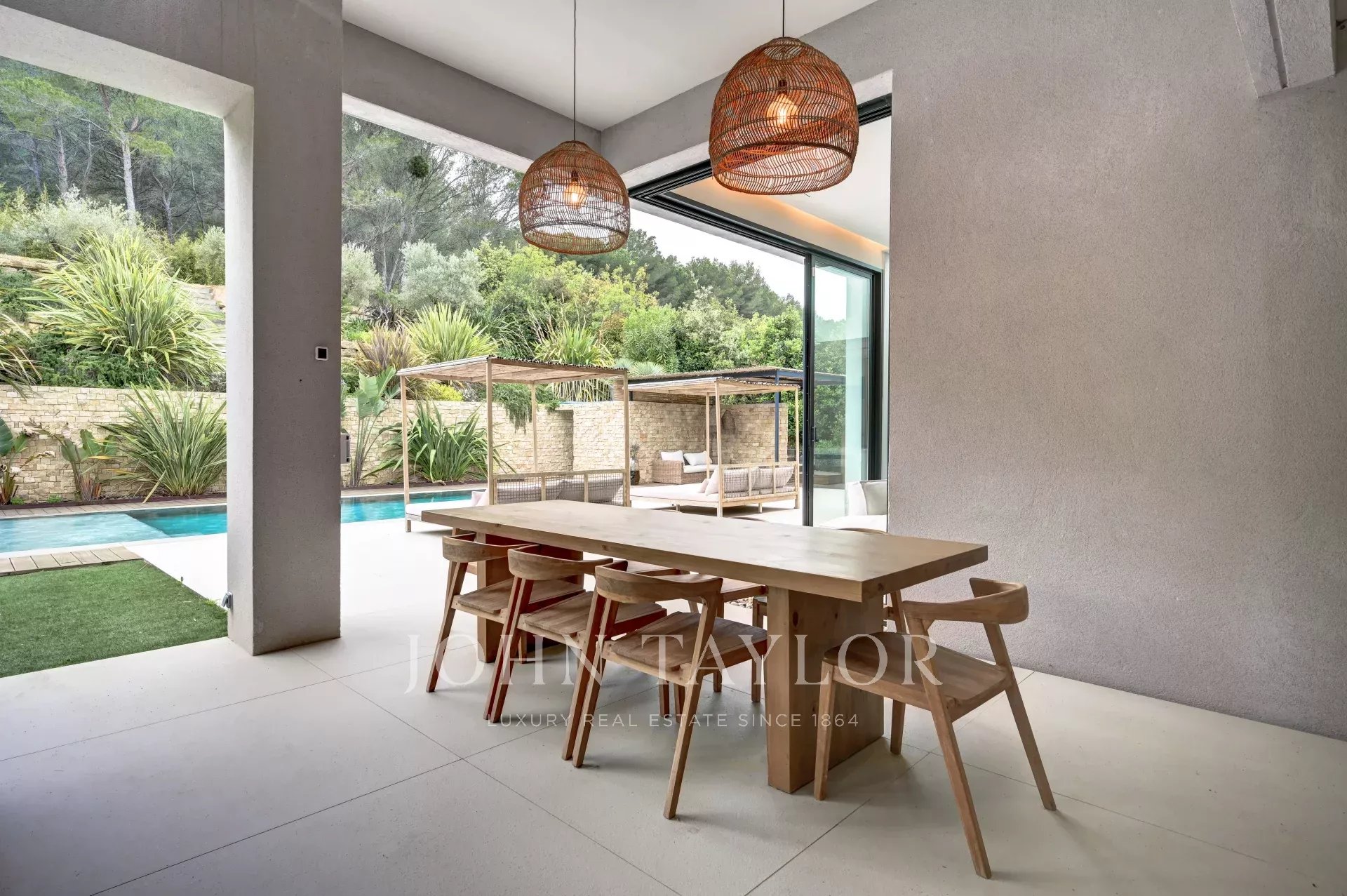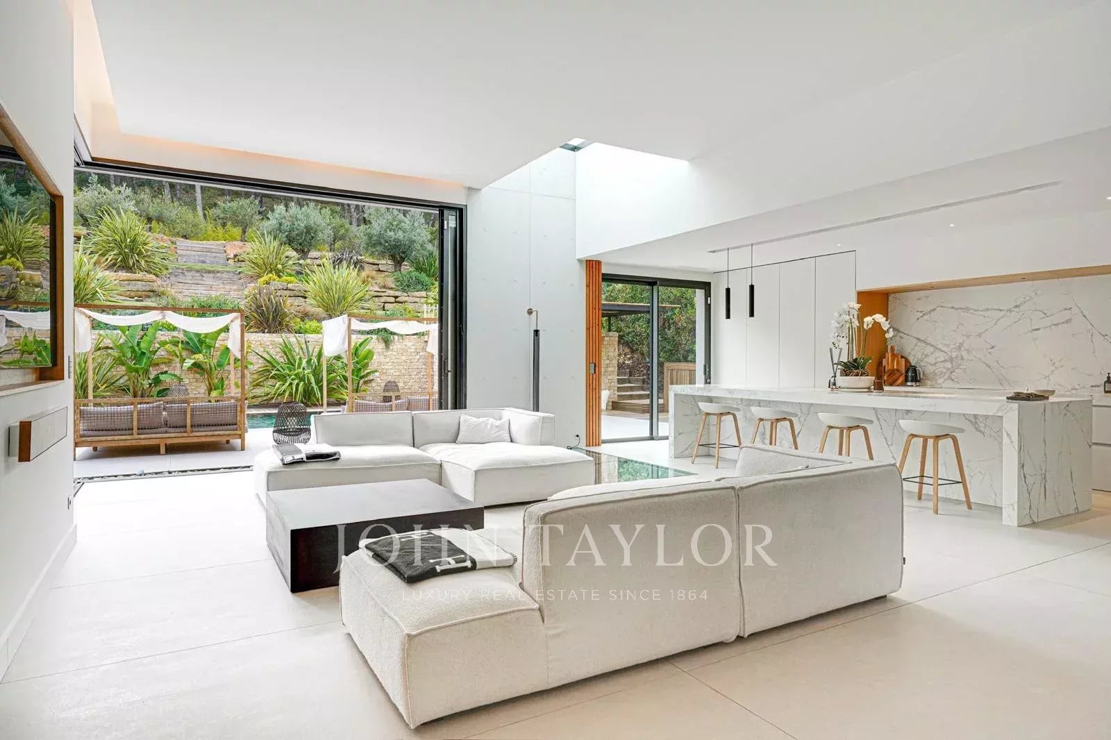 The exteriors invite you to enjoy the art of Provencal living: an infinity pool, landscaped pool house and large terraces create the ideal setting for relaxation and socializing.