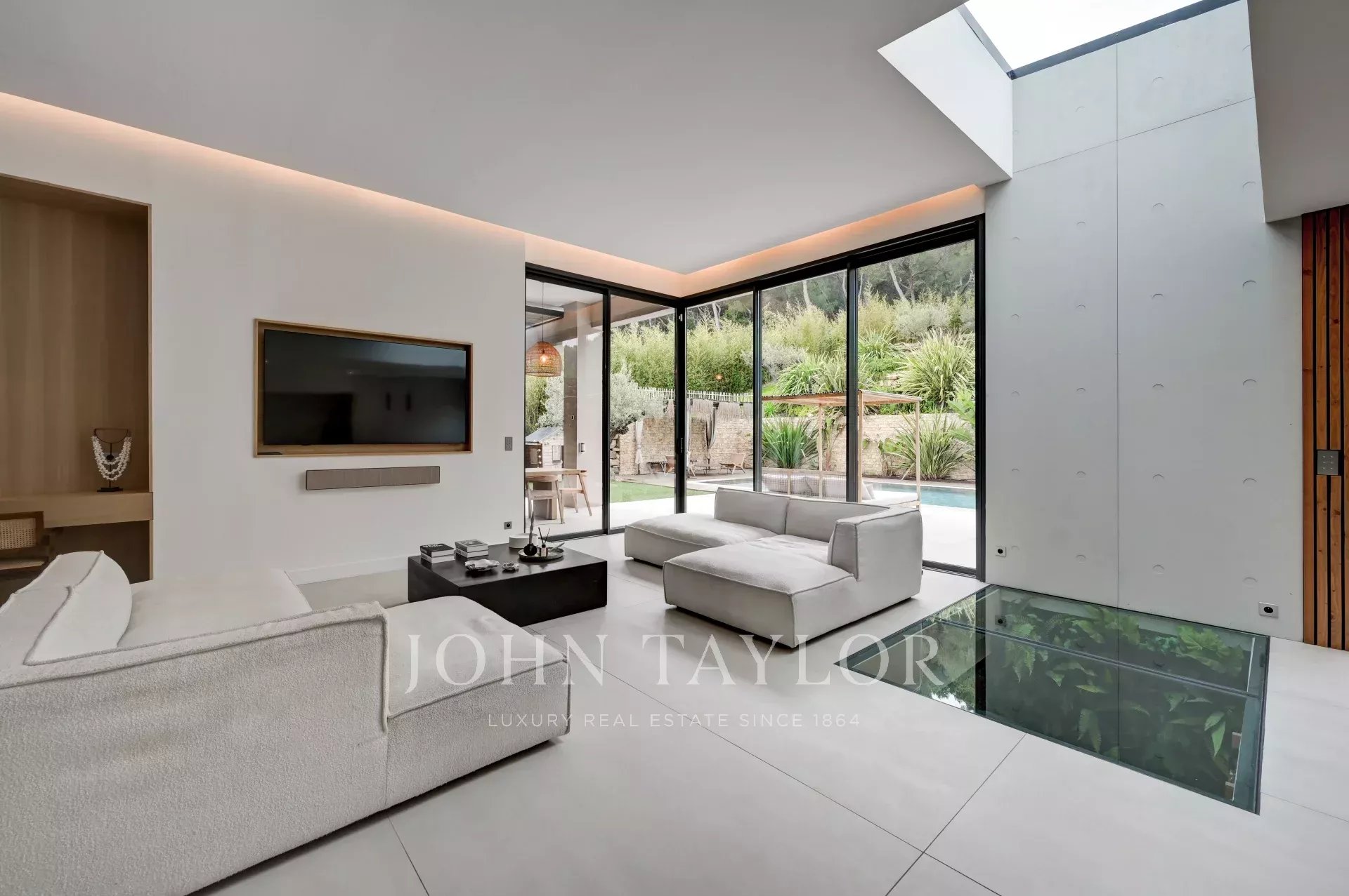 As you enter, an elegant hall with glass wine cellar sets the tone for a property with top-of-the-range features. The villa offers generous volumes bathed in light and fluid circulation between the living spaces.