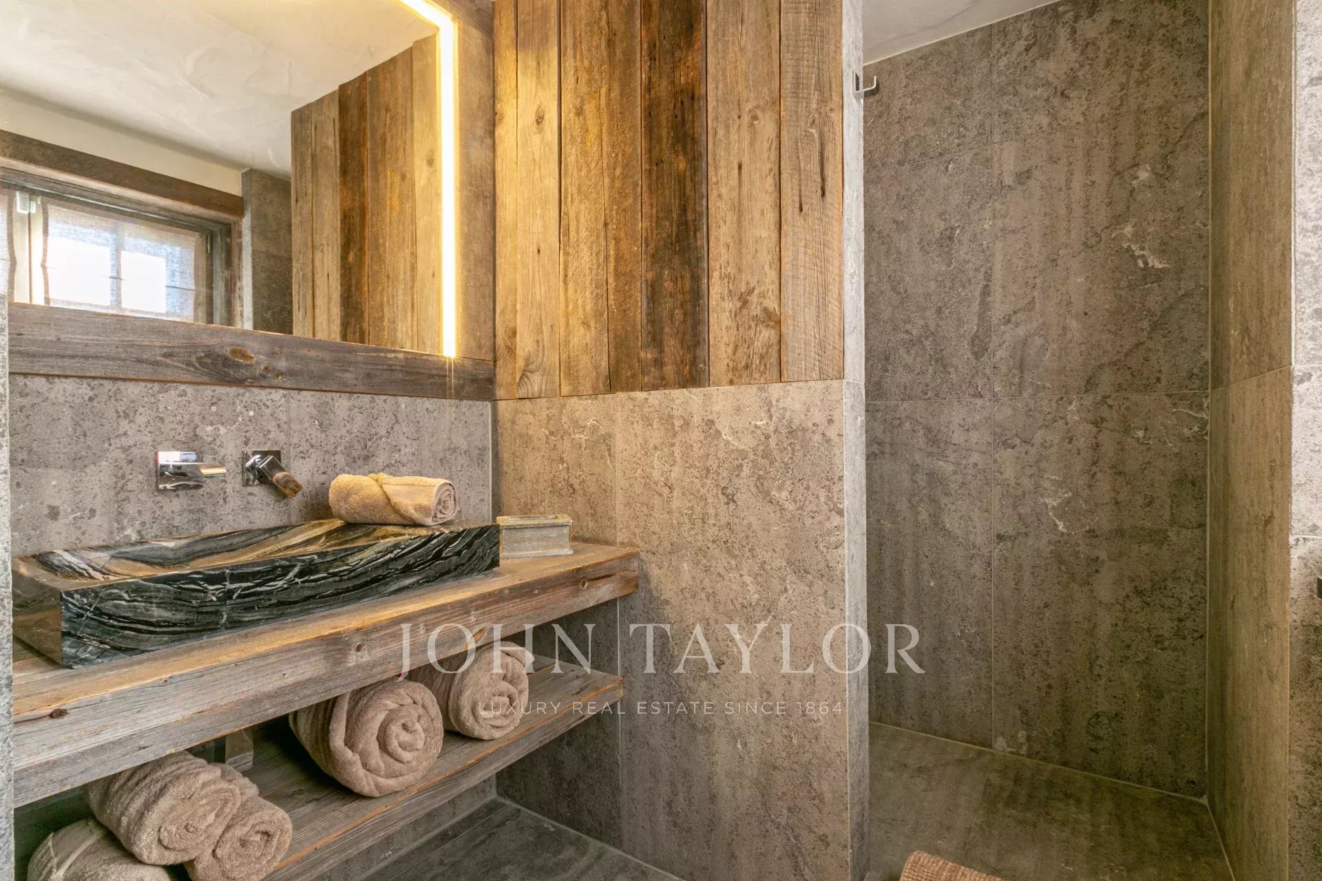 It offers 5 en suite bedrooms, open kitchen onto dining room, vast cathedral lounge with fireplace, superb summer terrace, jacuzzi, gym and relaxation area. Lift. Double garage (40 m2).Chalet sold furnished.