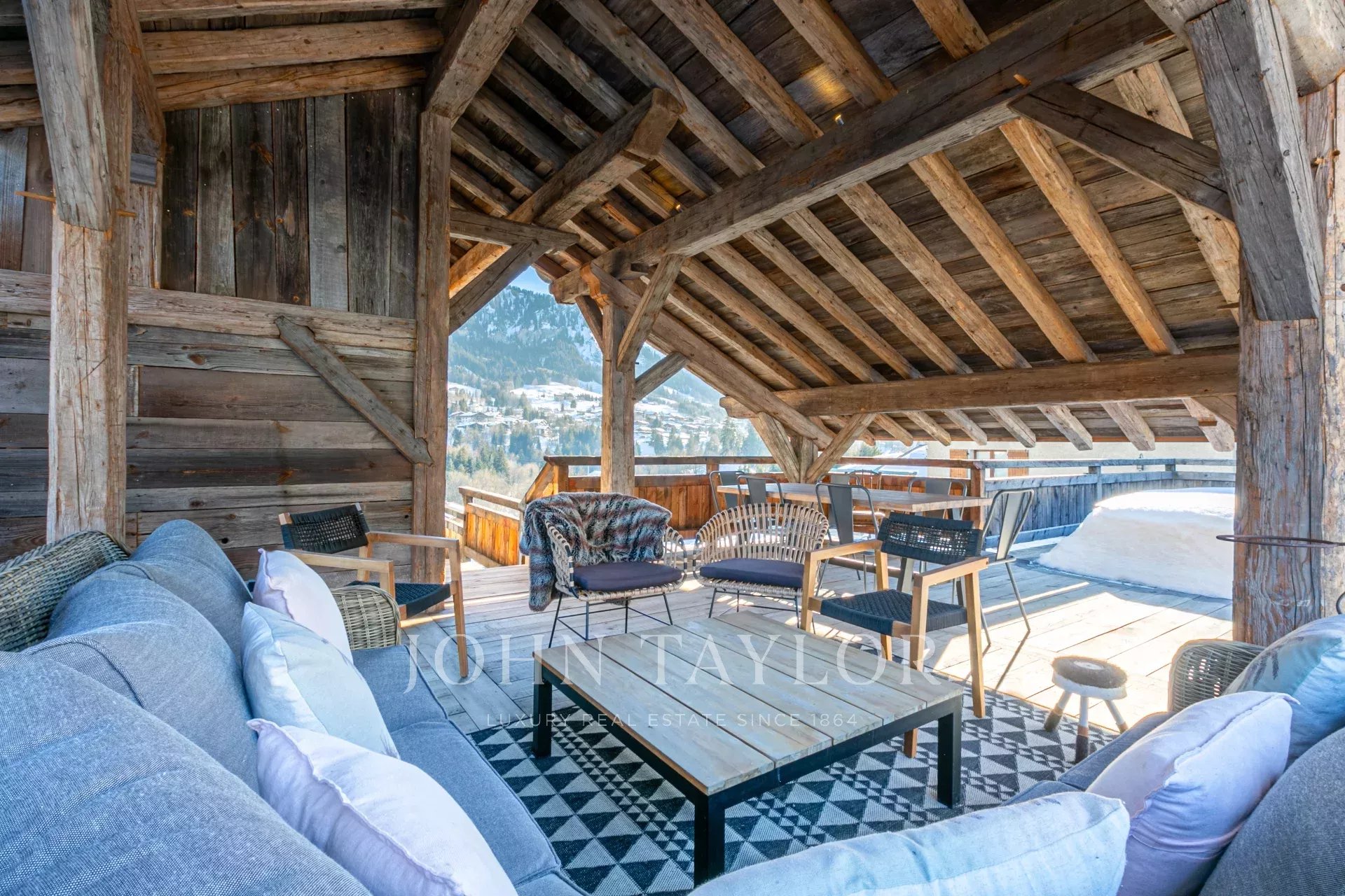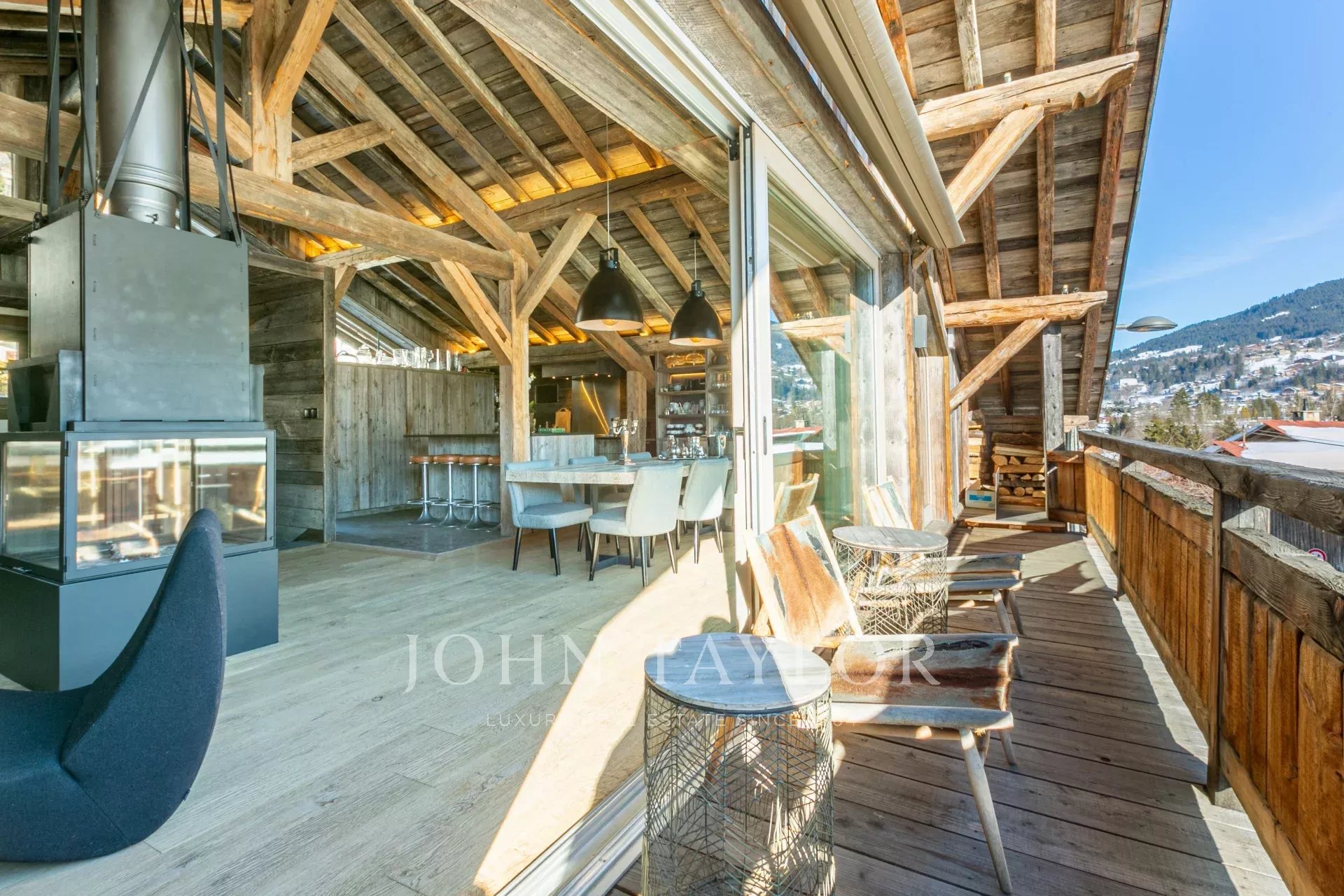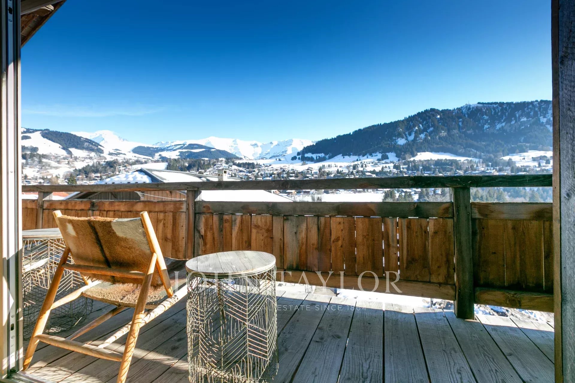 Recent chalet with 300 sqm of living space located in a quiet hamlet within walking distance of the centre of Megève, with panoramic views of Mont Blanc and the surrounding mountains.