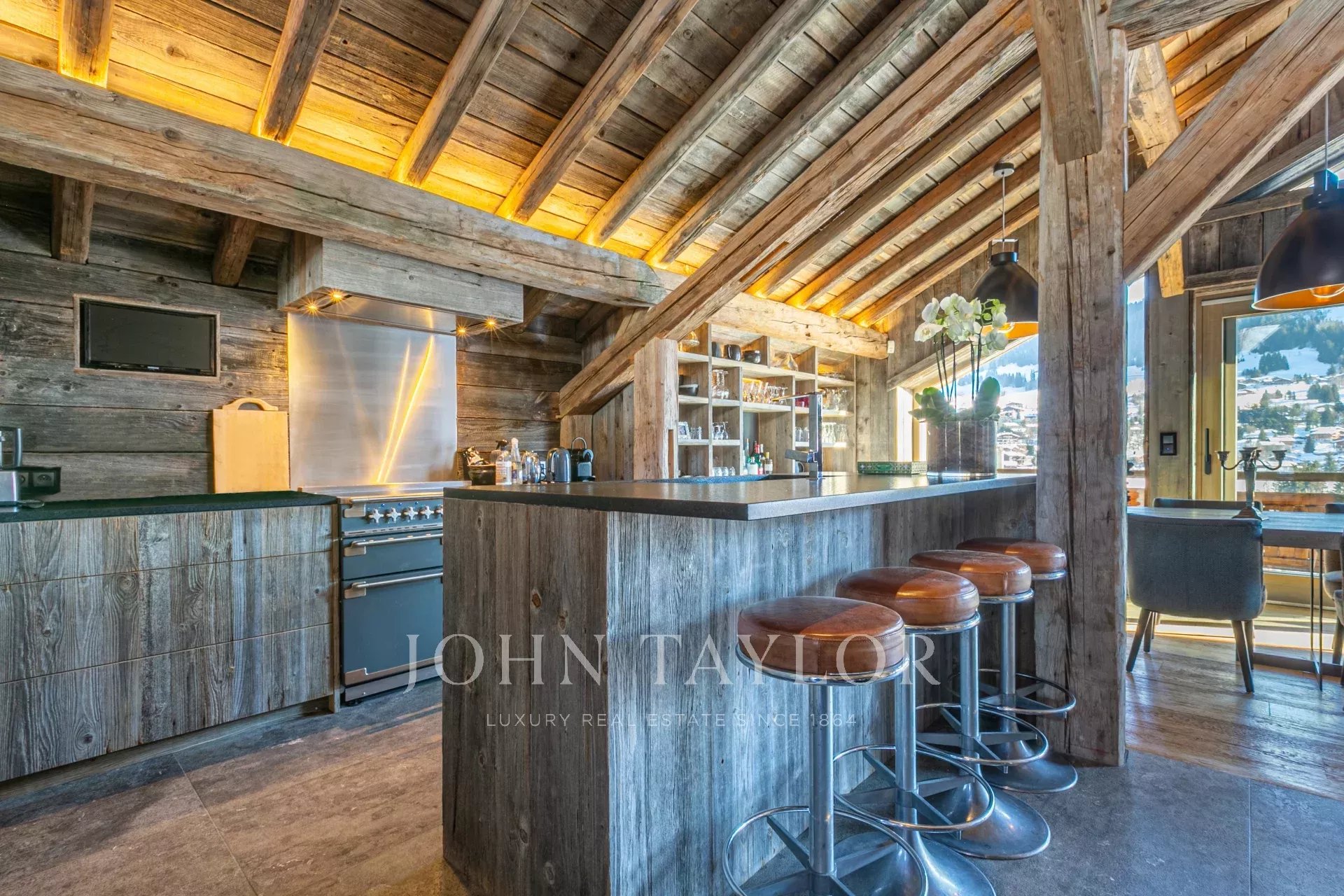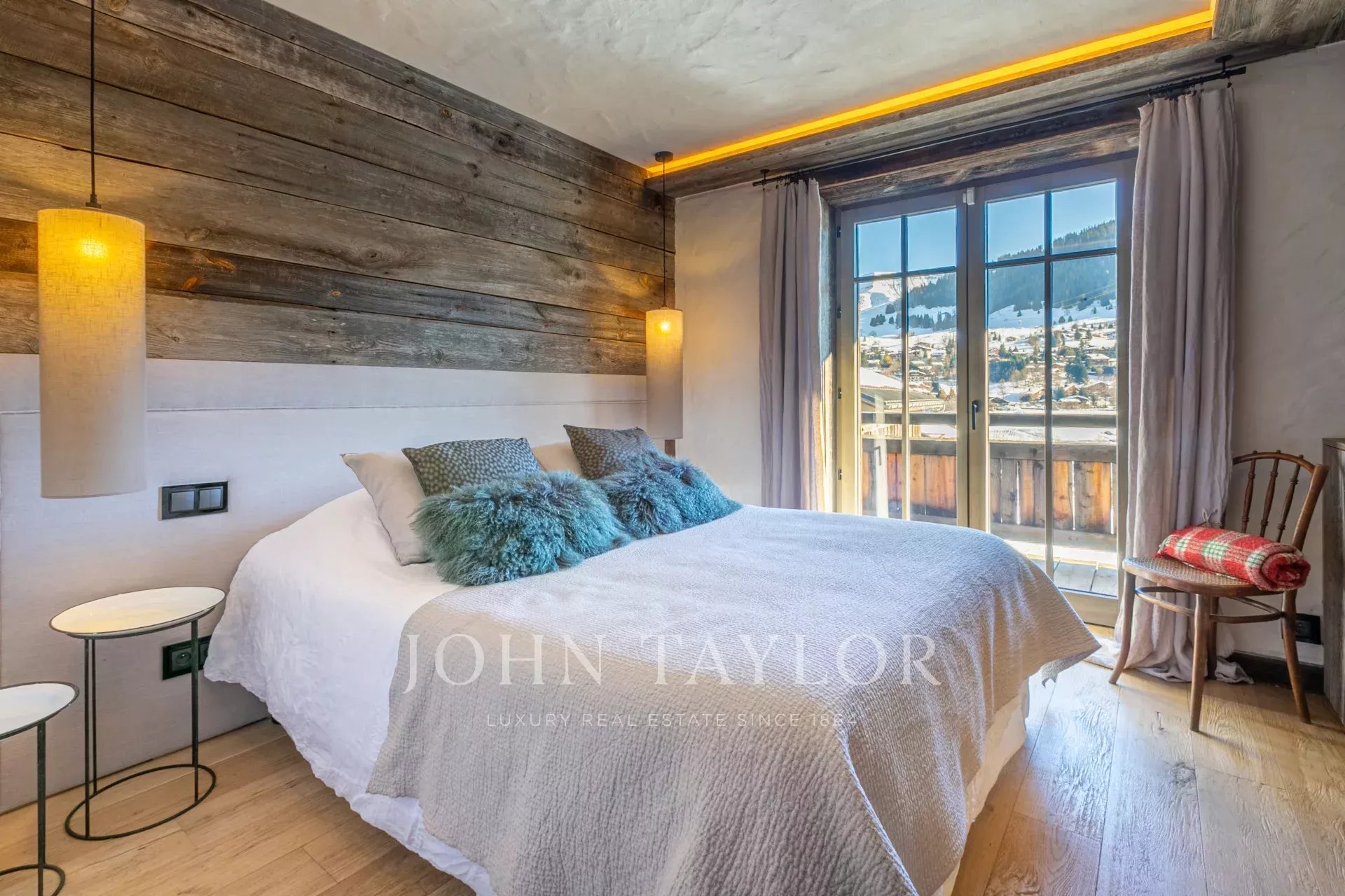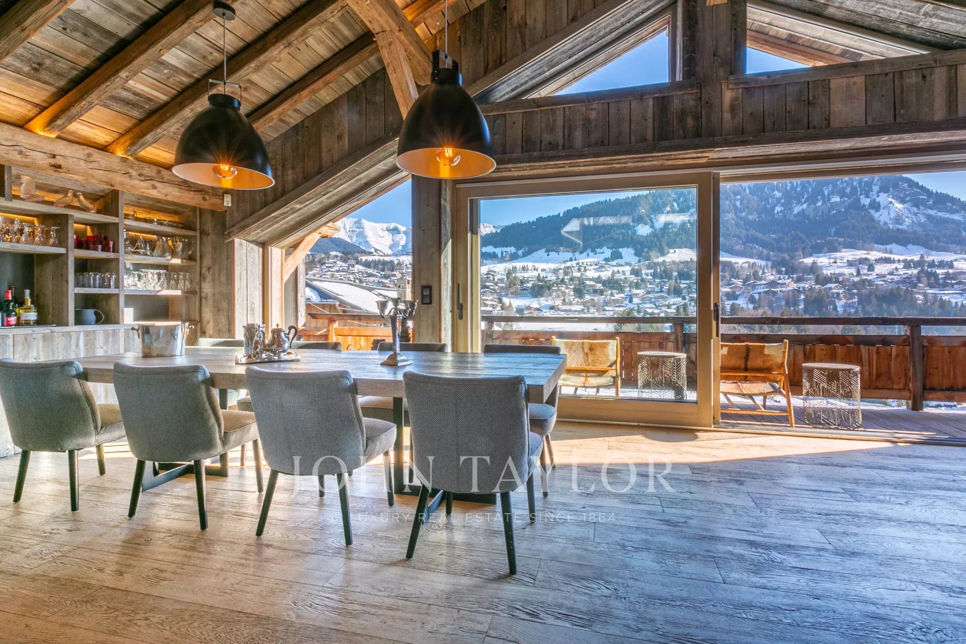 Recent chalet with 300 sqm of living space located in a quiet hamlet within walking distance of the centre of Megève, with panoramic views of Mont Blanc and the surrounding mountains.