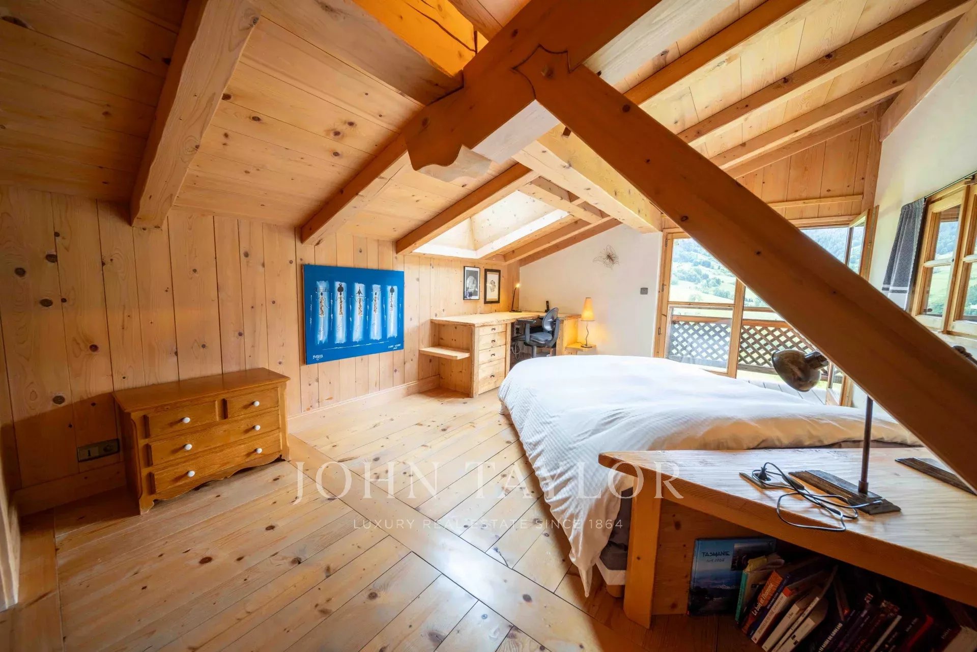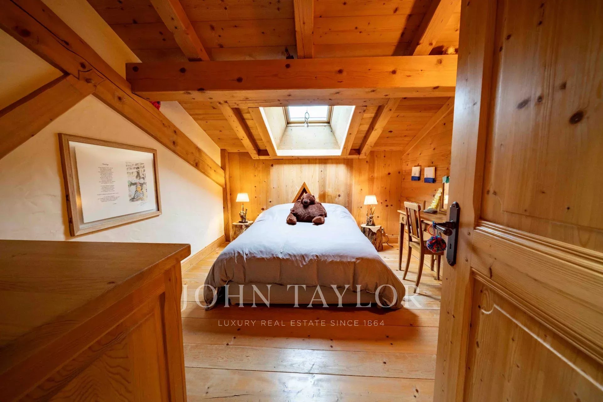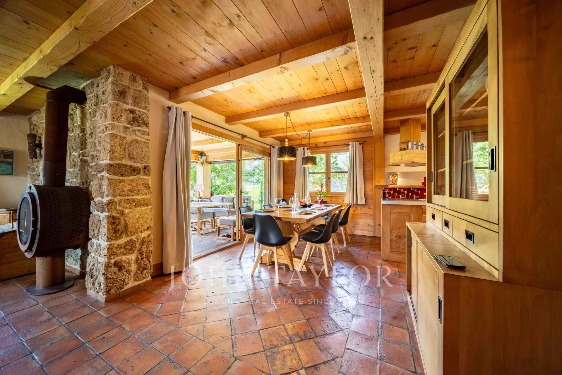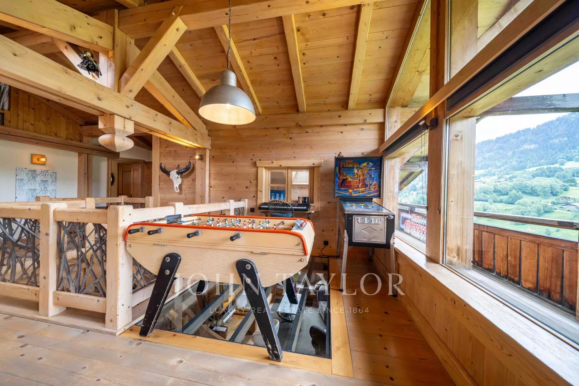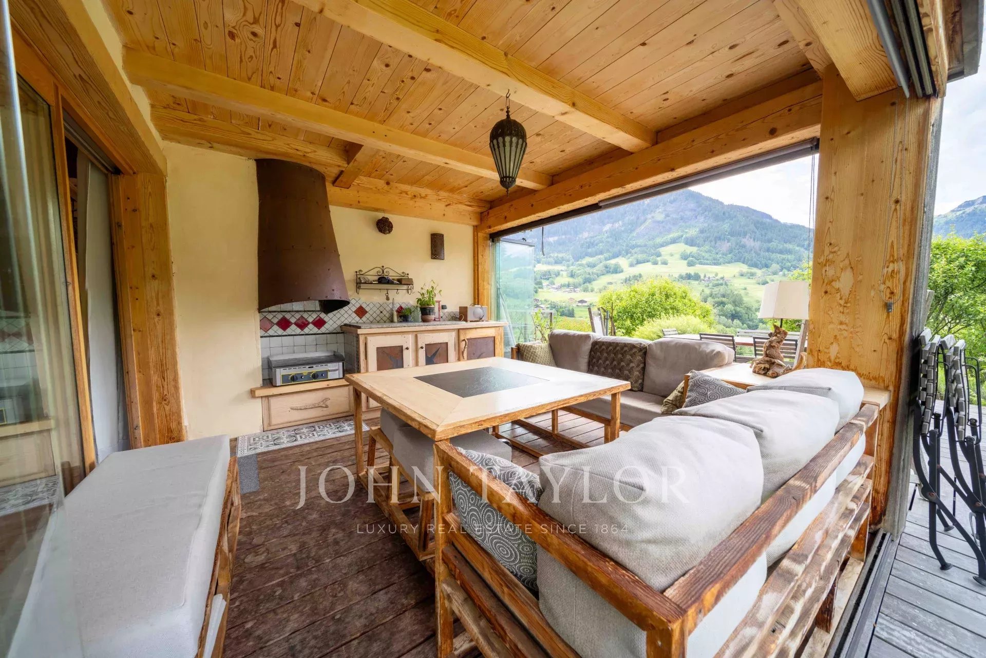 Located in Megève, nestled in an idyllic setting, Chalet built in 2003 with a total surface area of 311m2 set on 918m2 of land, comprising: Entrance hall with storage/cloakroom, guest WC, living room with fireplace, fitted & equipped kitchen with pantry opening onto dining room with access to veranda including summer kitchen and dining area (retractable glass veranda) leading onto a large, south-facing terrace with panoramic views of the surrounding mountains and Mont-Blanc. 4 bedrooms, 2 bathrooms, laundry area and a games/TV room. Attic converted into sleeping area.