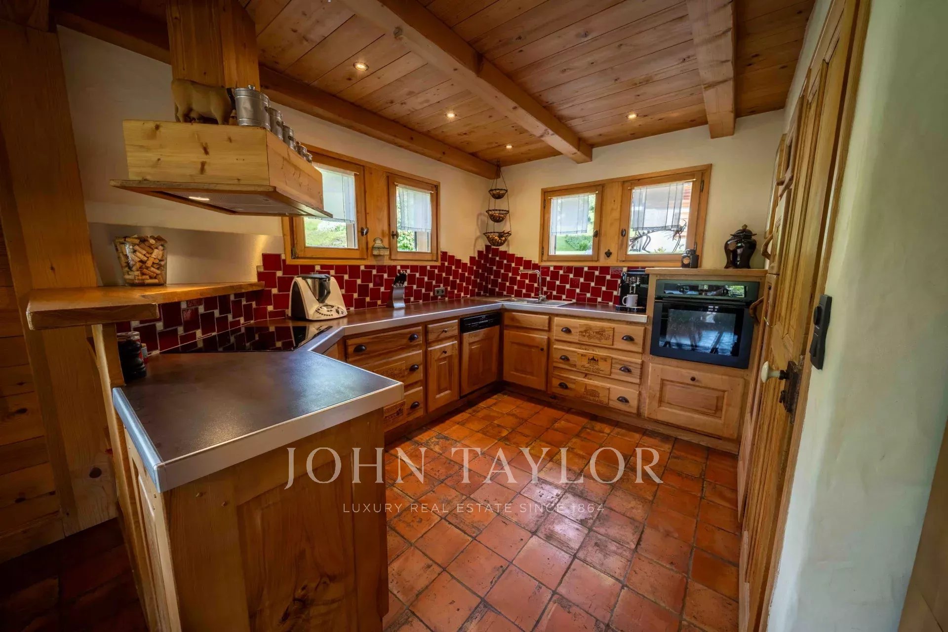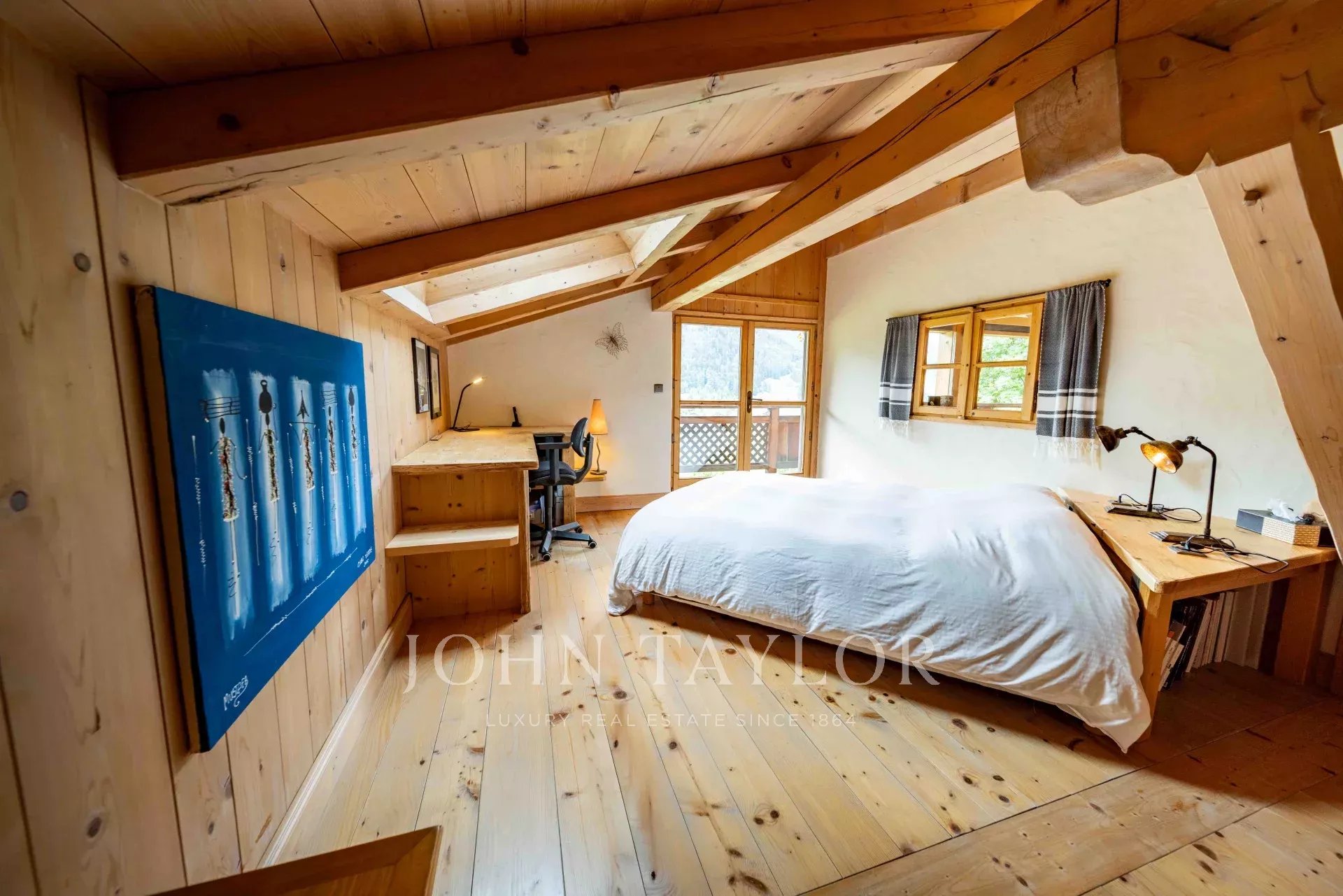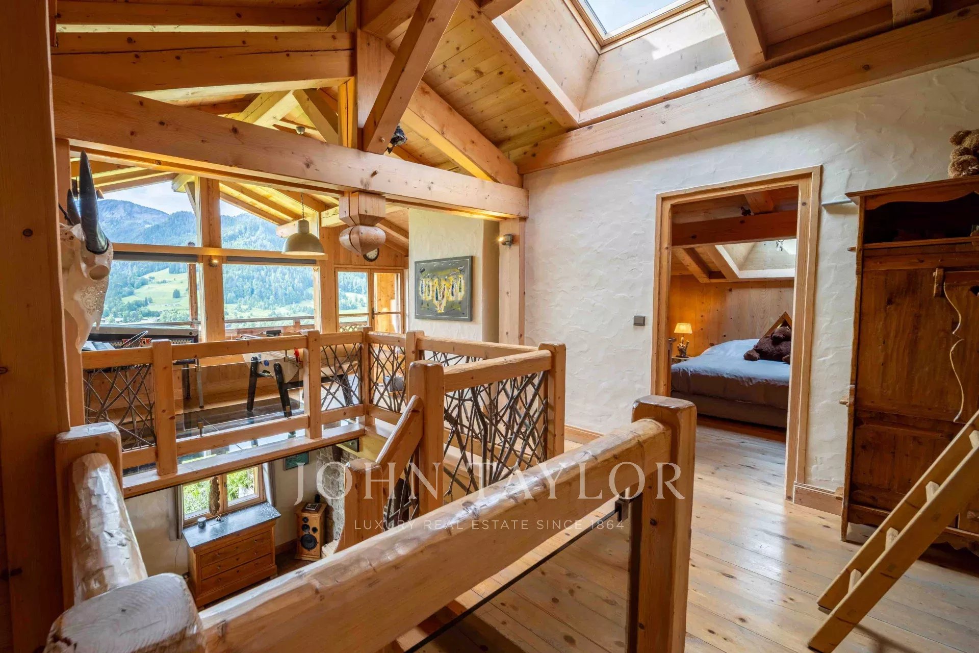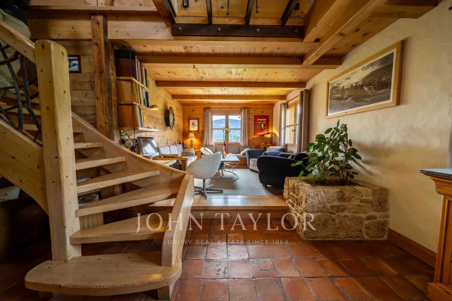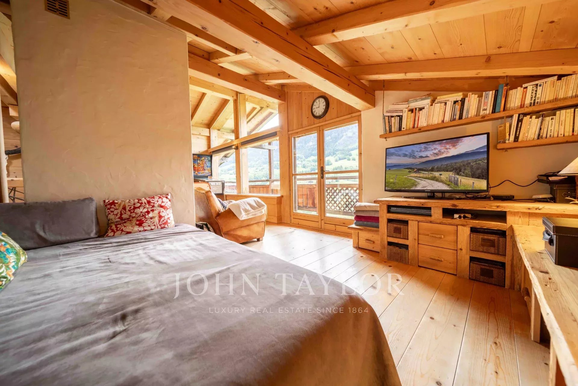 Located in Megève, nestled in an idyllic setting, Chalet built in 2003 with a total surface area of 311m2 set on 918m2 of land, comprising: Entrance hall with storage/cloakroom, guest WC, living room with fireplace, fitted & equipped kitchen with pantry opening onto dining room with access to veranda including summer kitchen and dining area (retractable glass veranda) leading onto a large, south-facing terrace with panoramic views of the surrounding mountains and Mont-Blanc. 4 bedrooms, 2 bathrooms, laundry area and a games/TV room. Attic converted into sleeping area.