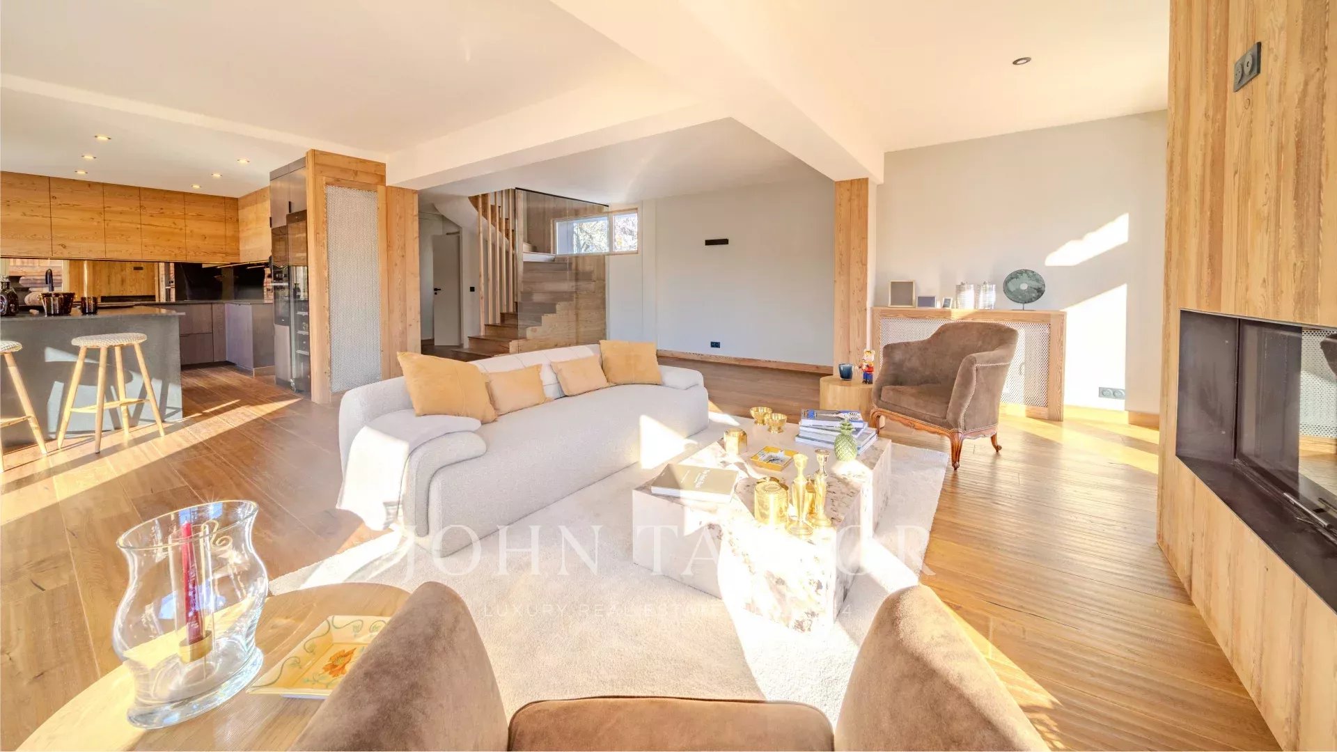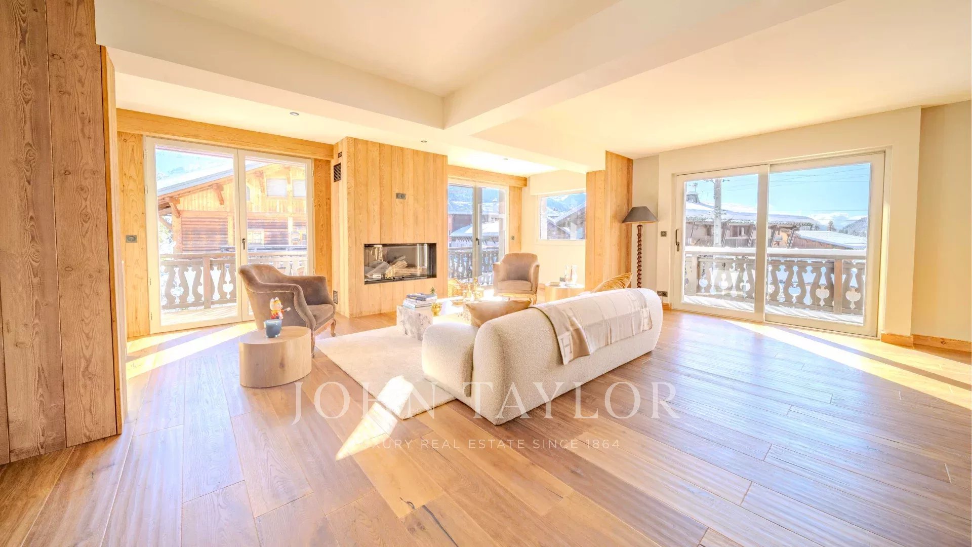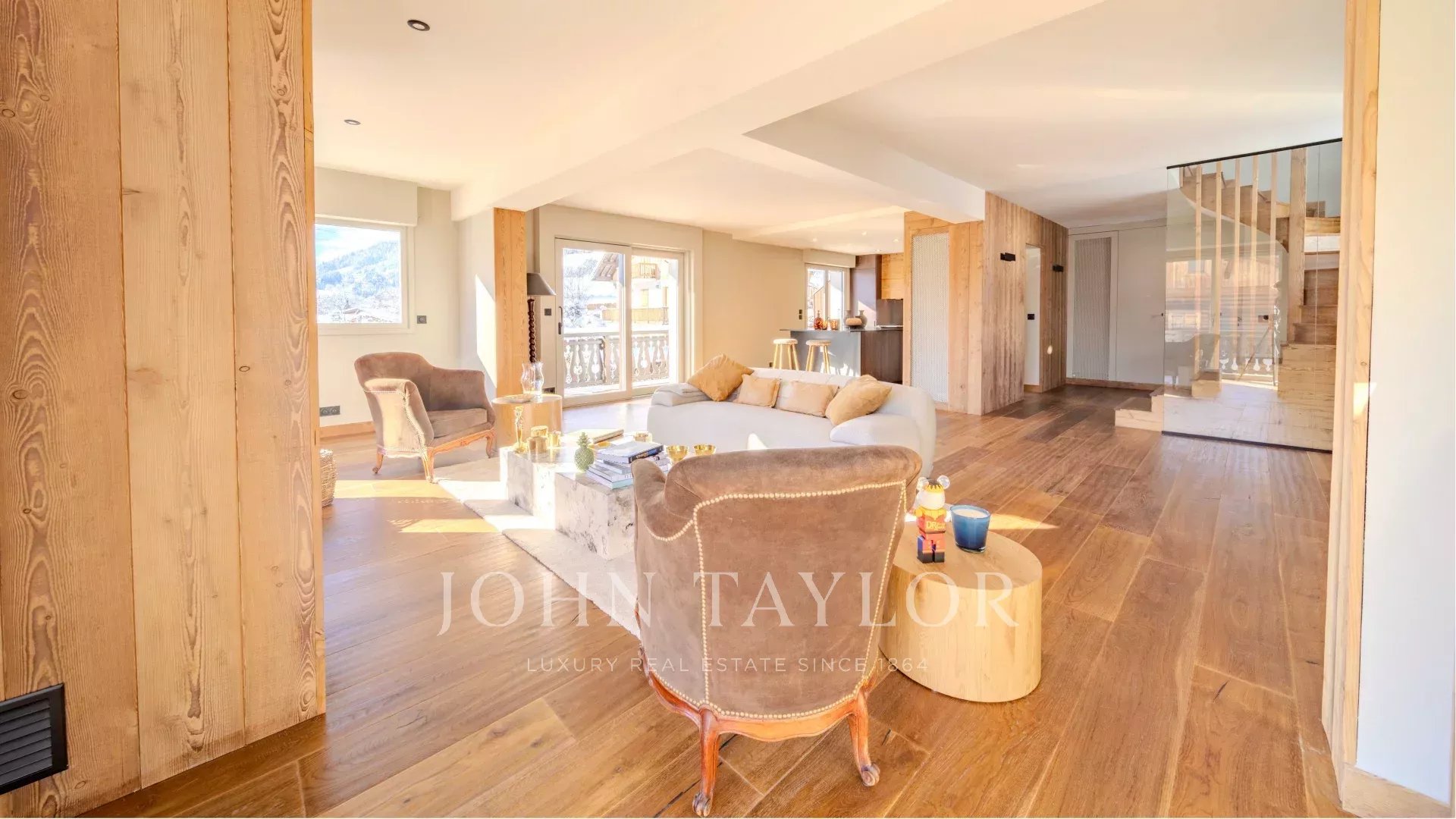 Fully renovated semi-detached chalet with a total surface area of approximately 215 m² (living area : 212,19 m²), ideally located near the centre of Megève and the Jaillet ski slopes.
