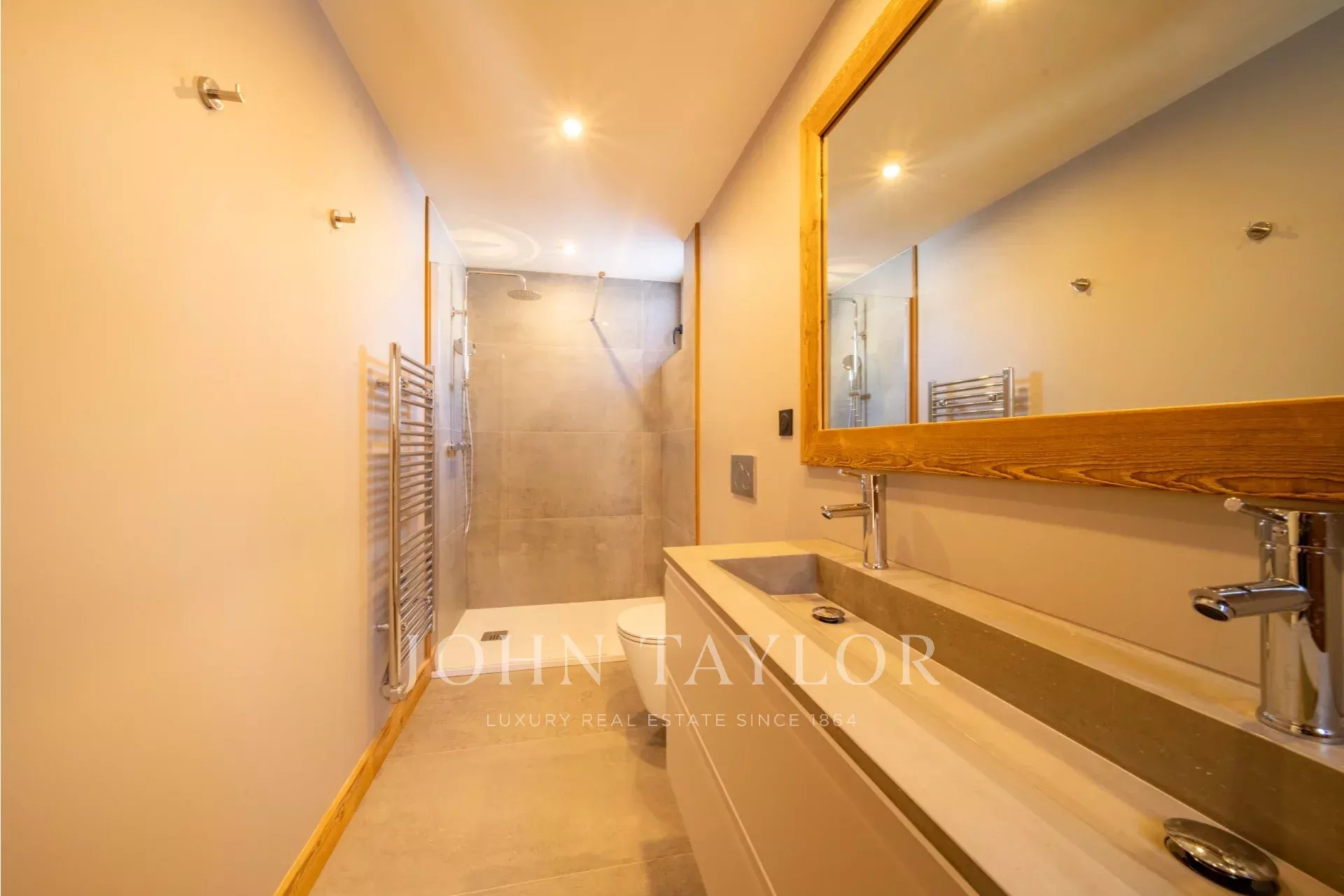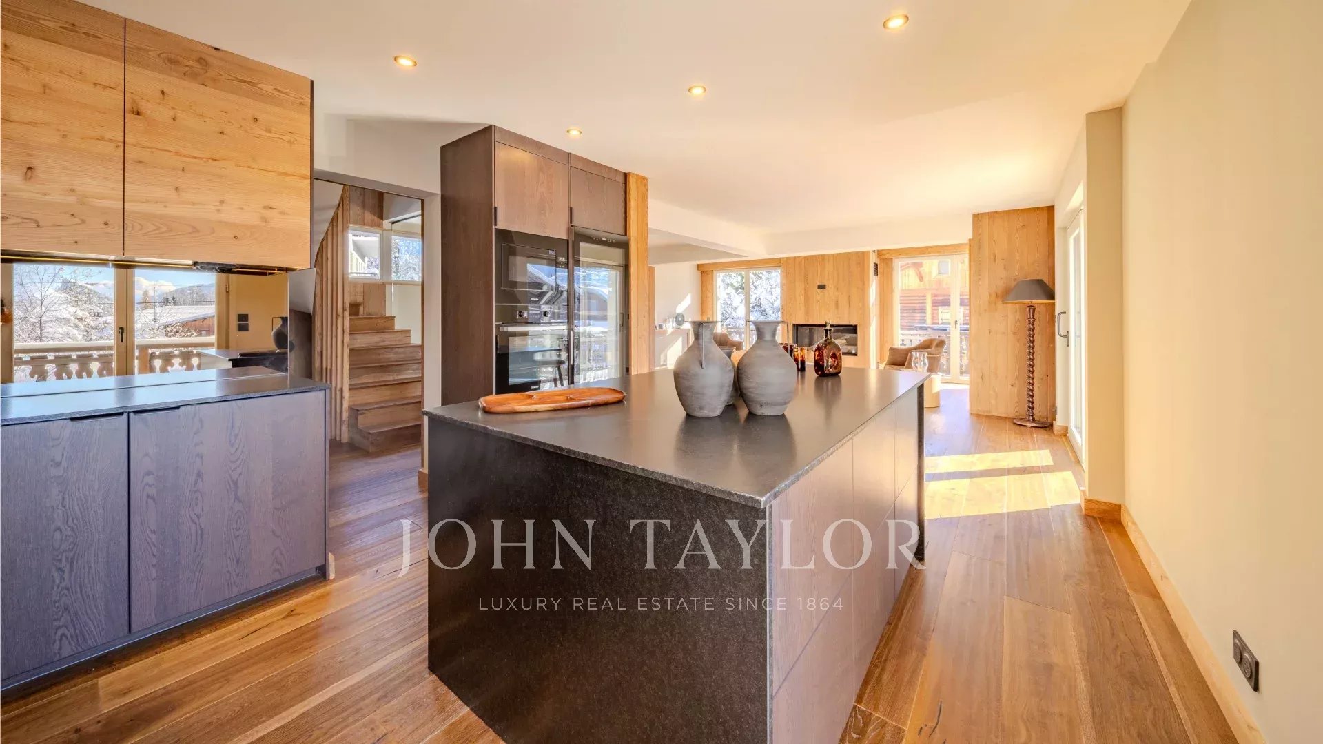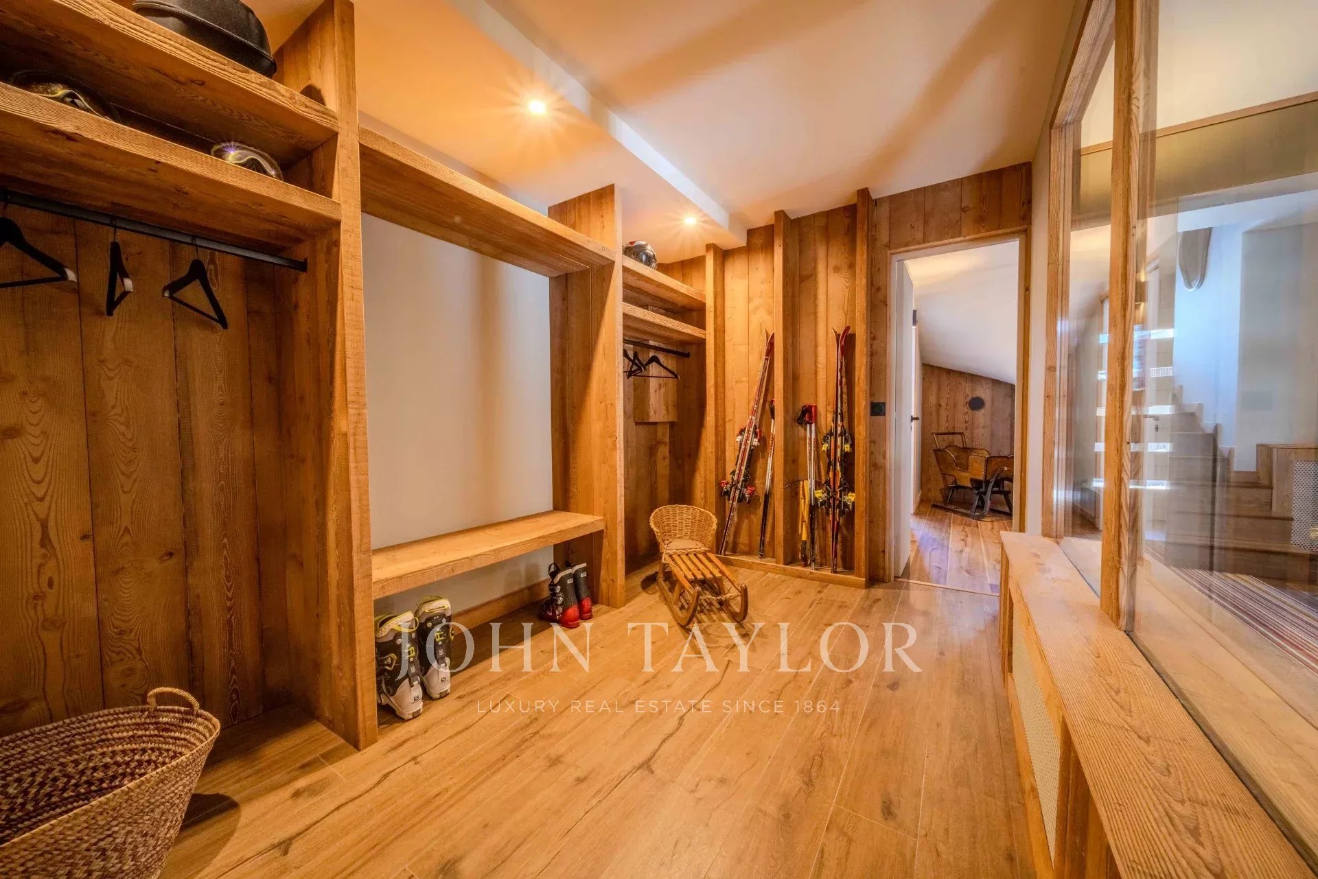 Fully renovated semi-detached chalet with a total surface area of approximately 215 m² (living area : 212,19 m²), ideally located near the centre of Megève and the Jaillet ski slopes.