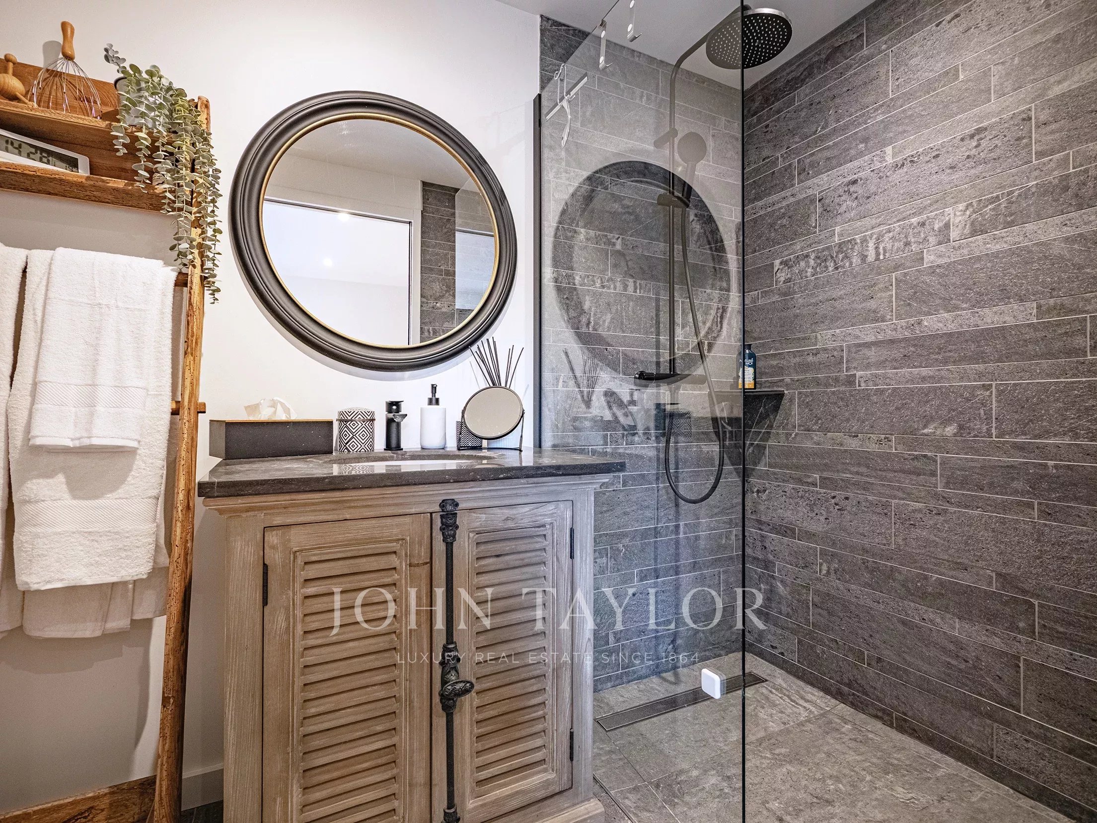 The upper floor comprises a fitted and equipped kitchen opening onto a living room/lounge with fireplace leading onto a beautiful terrace.