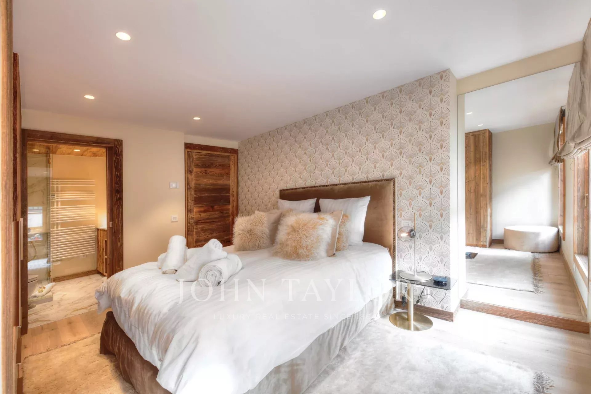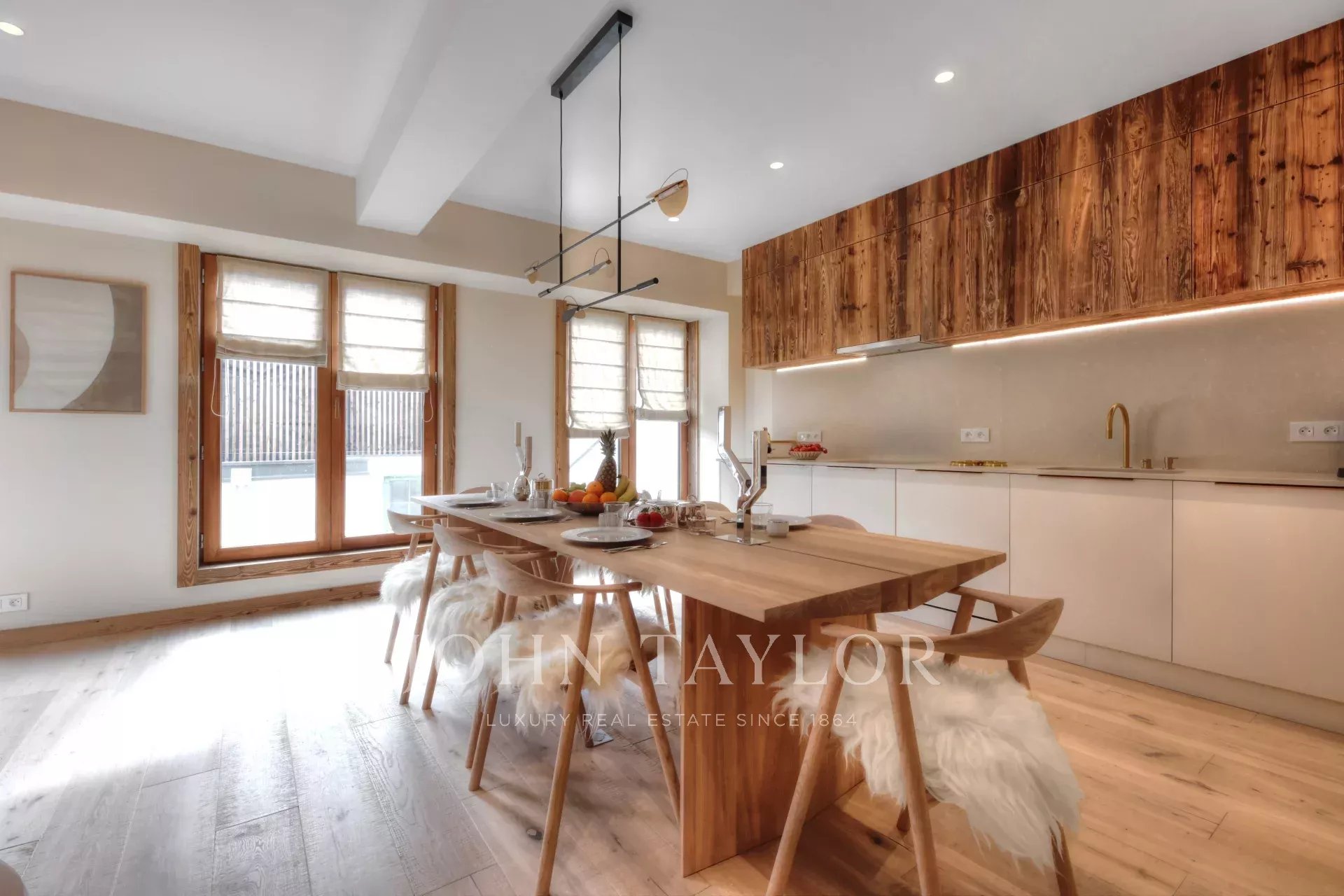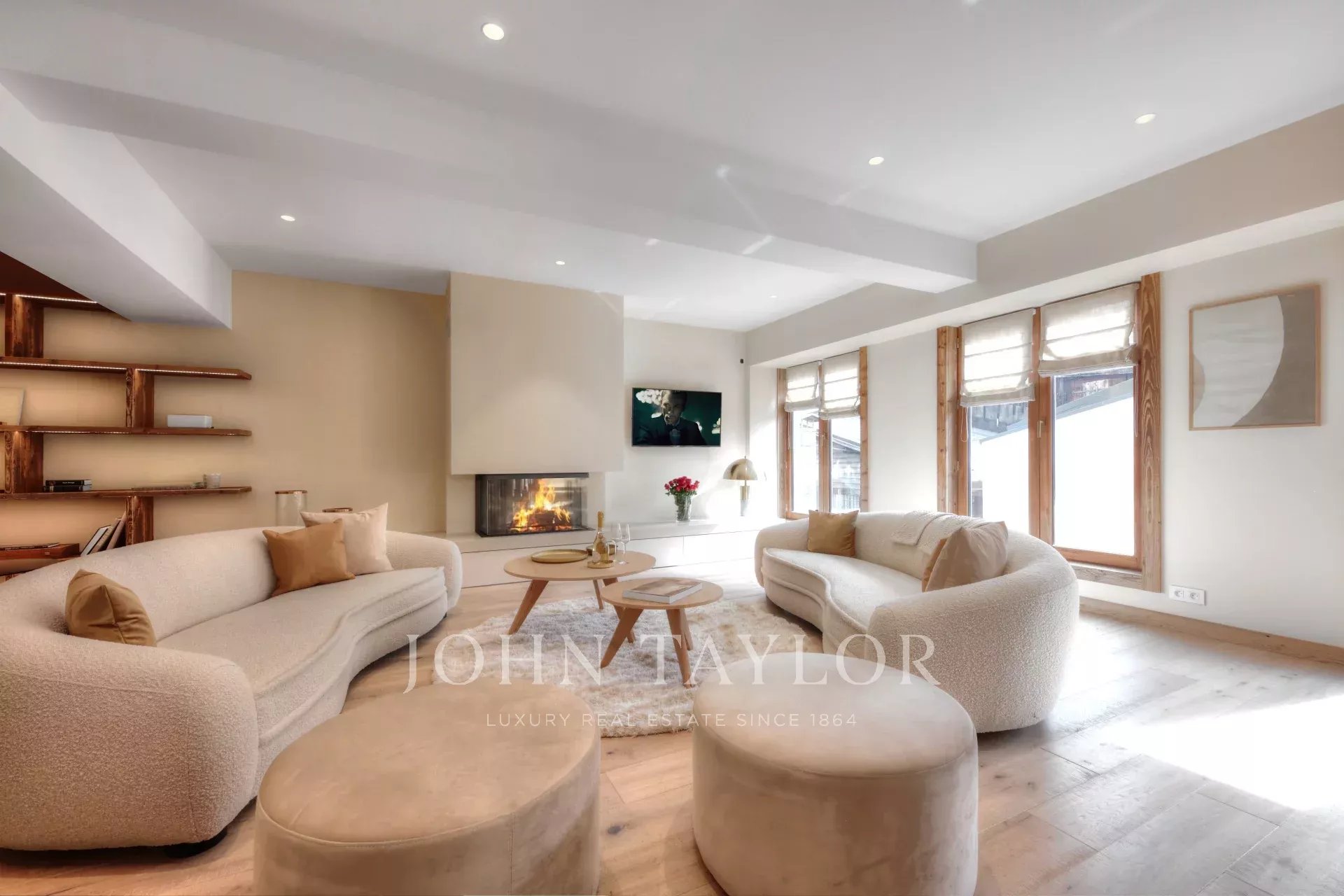 Duplex apartment fully furnished and equipped with a total area of about 118 m2 benefiting from an exceptional location in the heart of the village of Megève, near the shops and the departure of the Chamois cable car. Located on the 1st floor with elevator, it offers a modern and warm interior including a fully equipped kitchen open on a living room with fireplace, 3 bedrooms en suite, balcony, a guest toilet, a ski room.