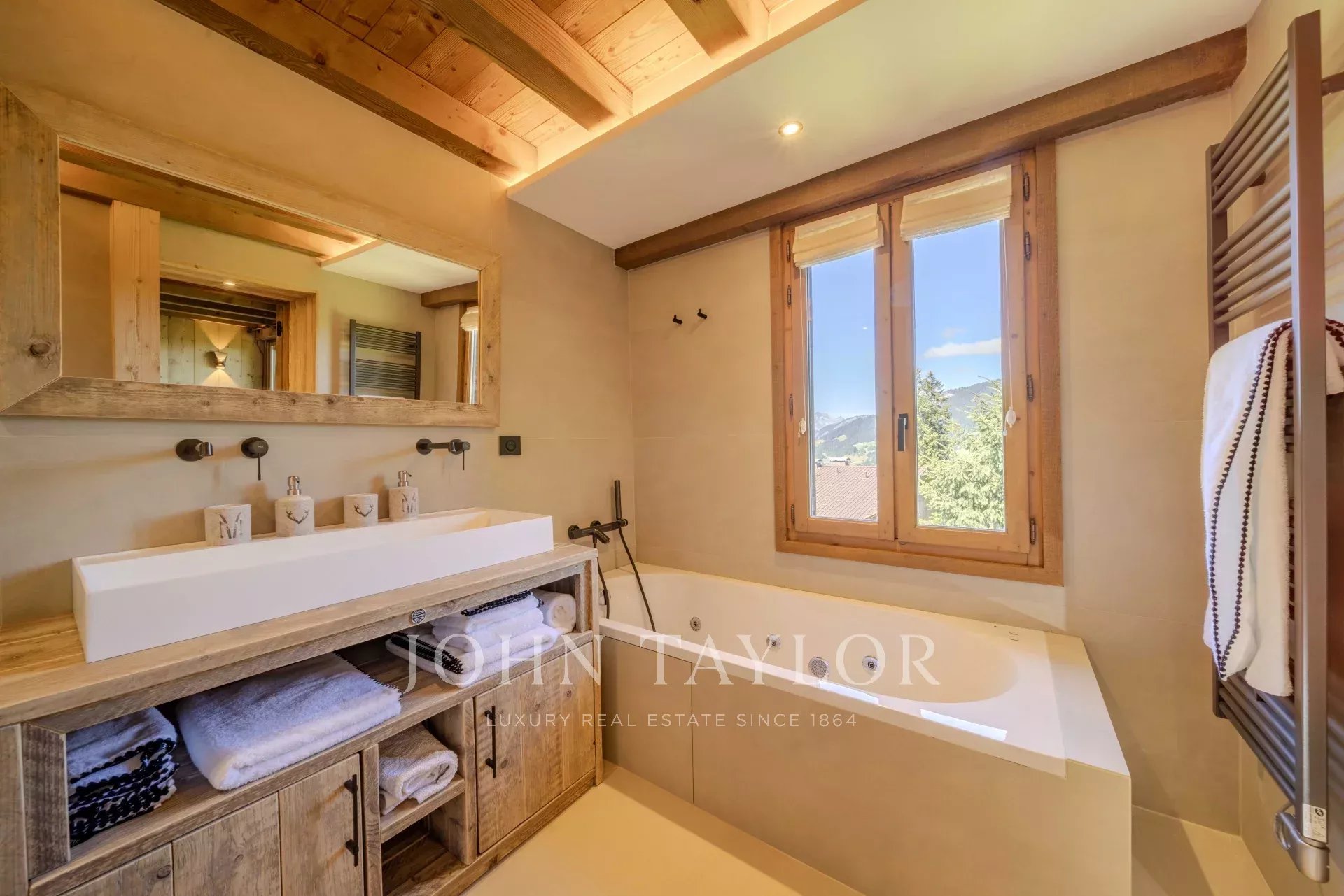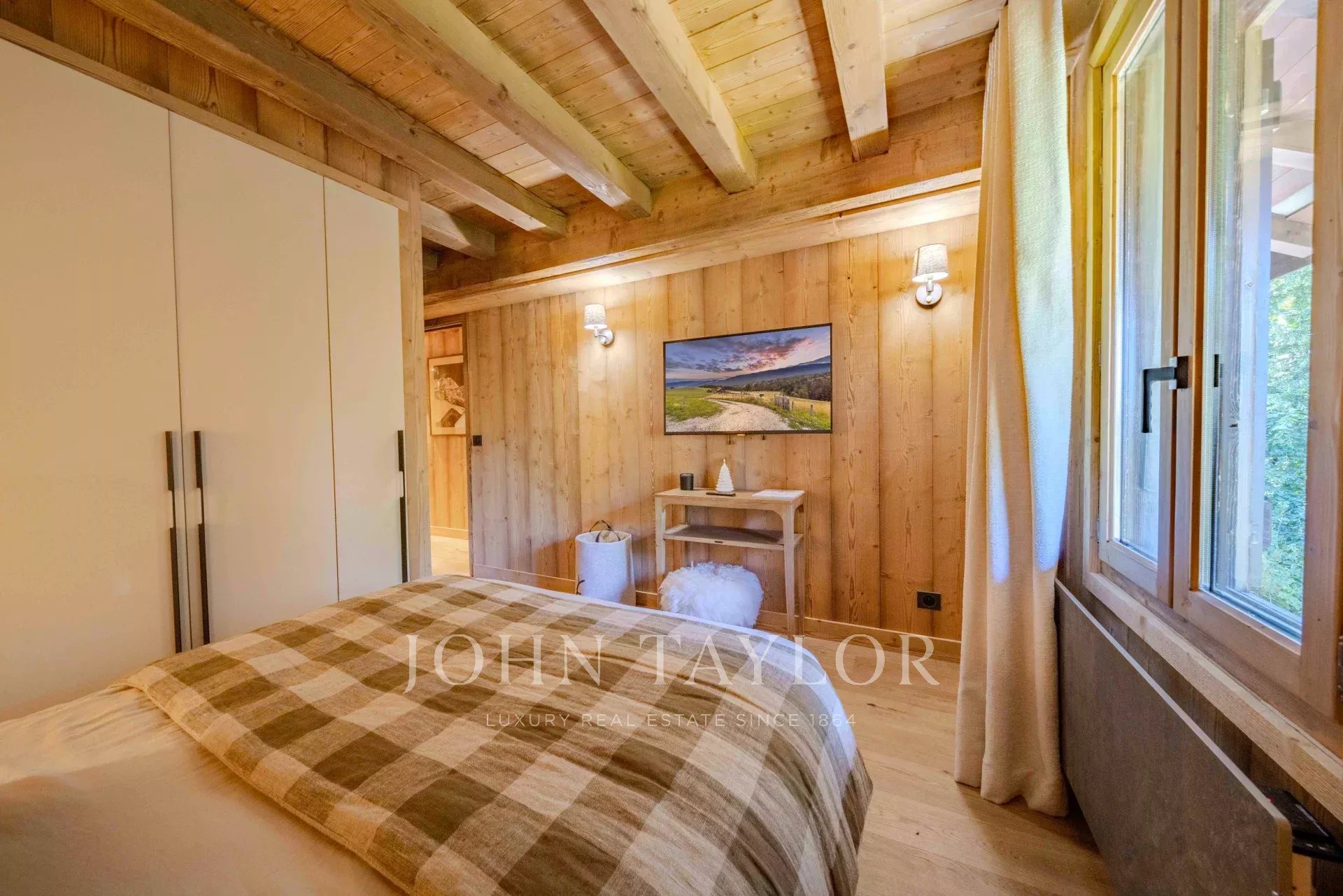 It offers comfort as well as an elegant and warm atmosphere: five en-suite bedrooms, an open-plan kitchen leading onto a spacious living room under-roof with fireplace and terrace.